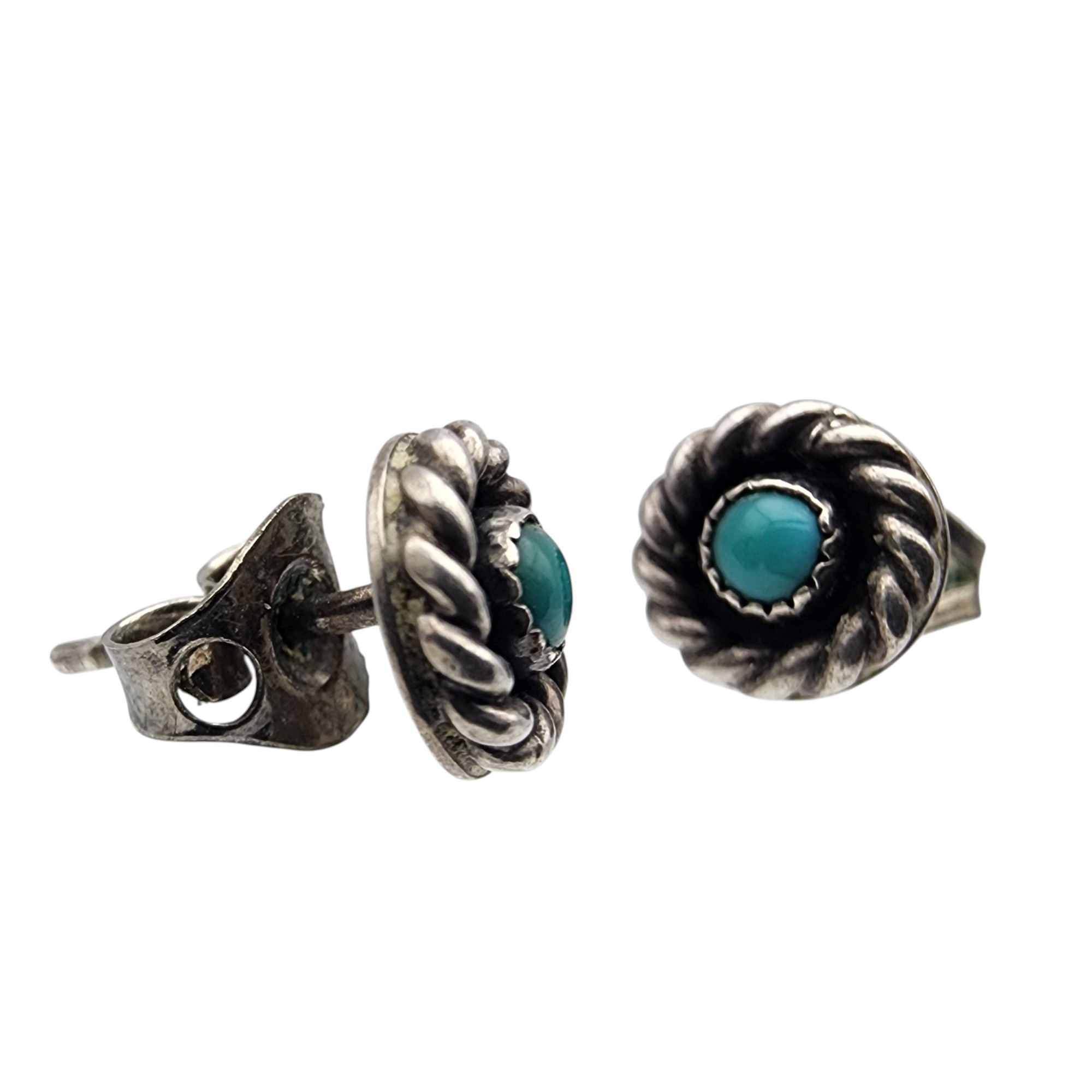 Vintage Navajo Sterling Turquoise Stud Earrings, 1.1g