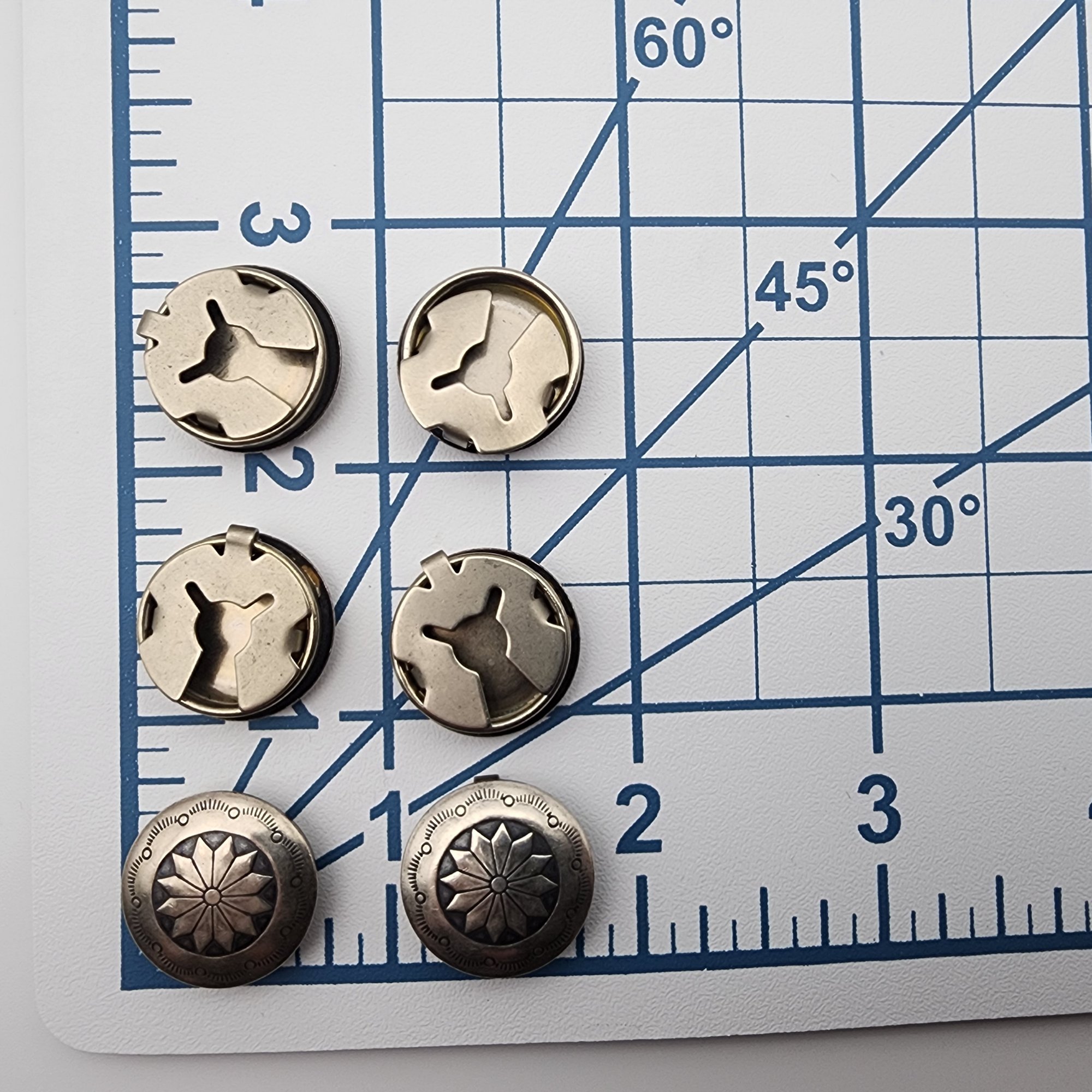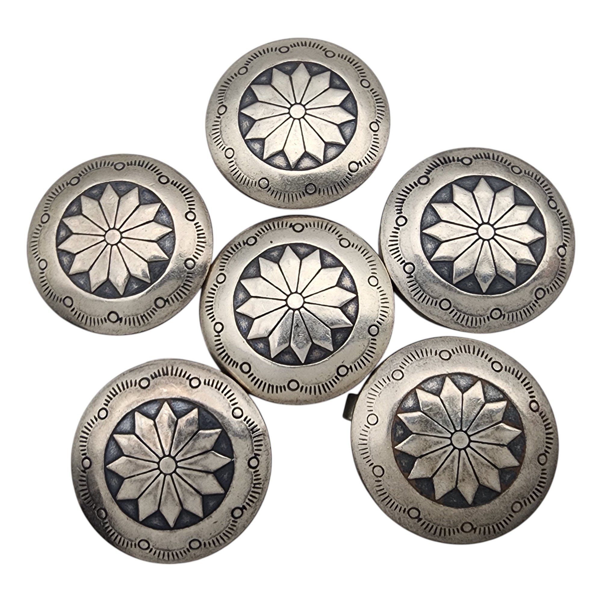 Navajo Sterling Stamped Button Covers, 22.4g, one of the button covers backing is misaligned – still snaps together, see photos
