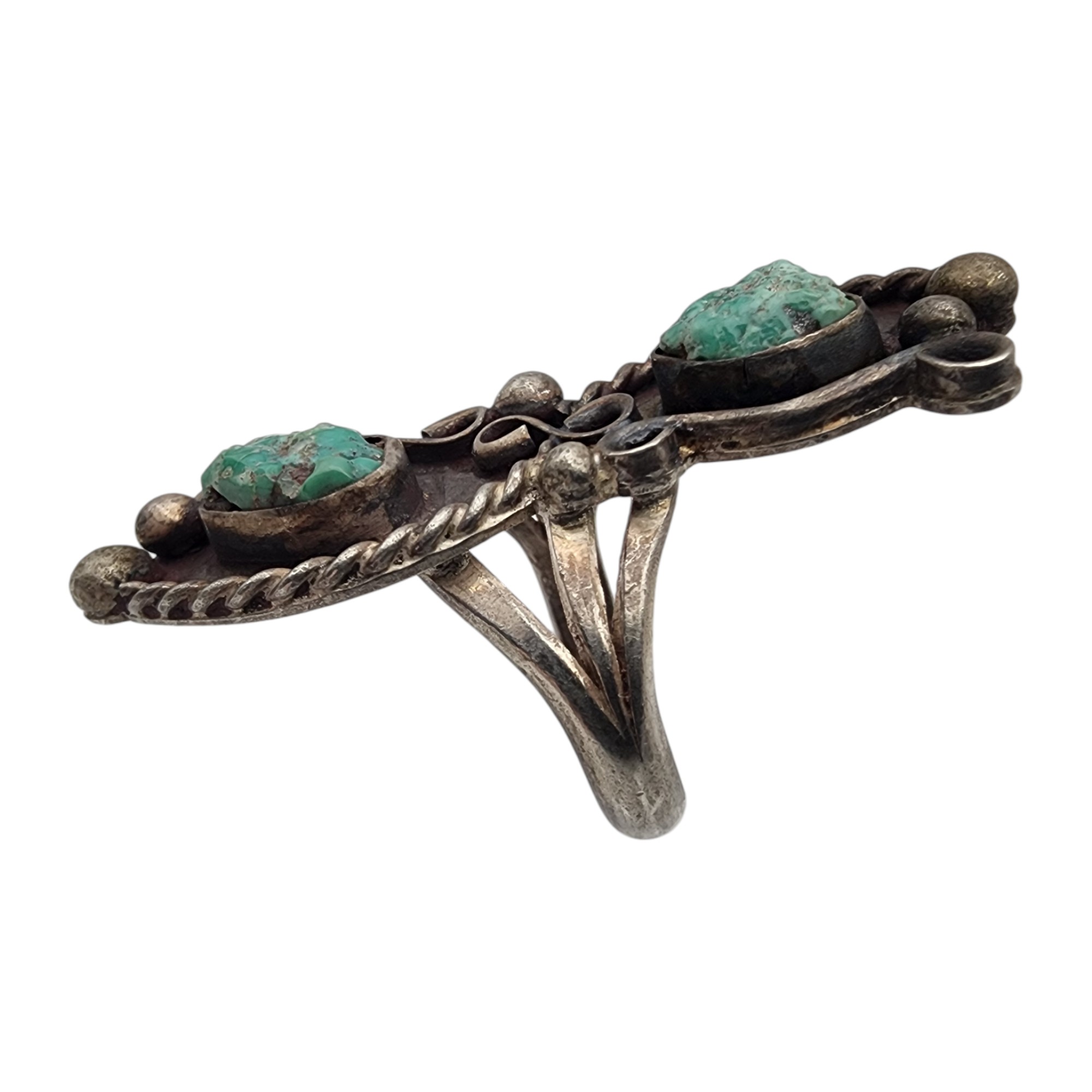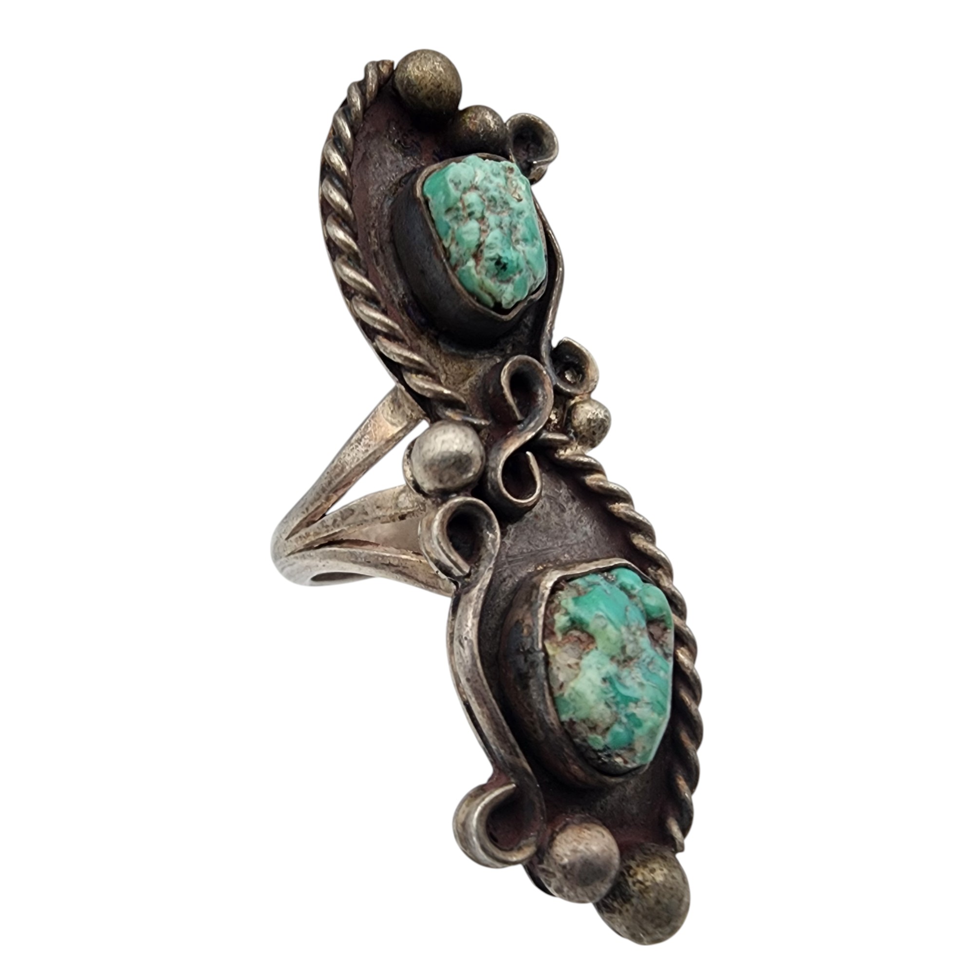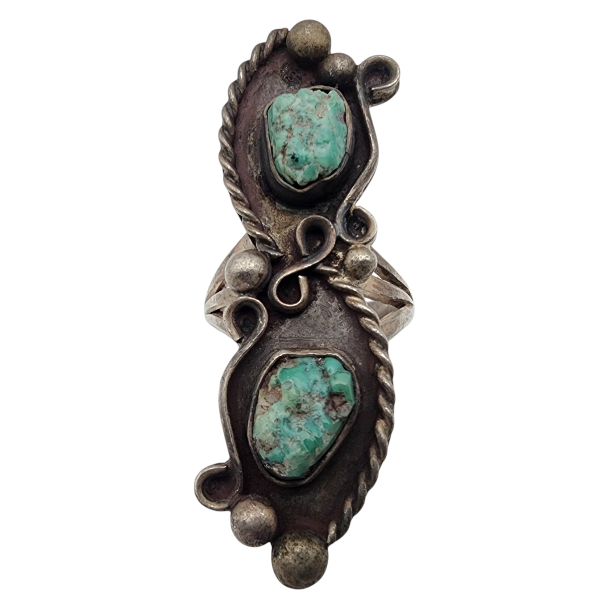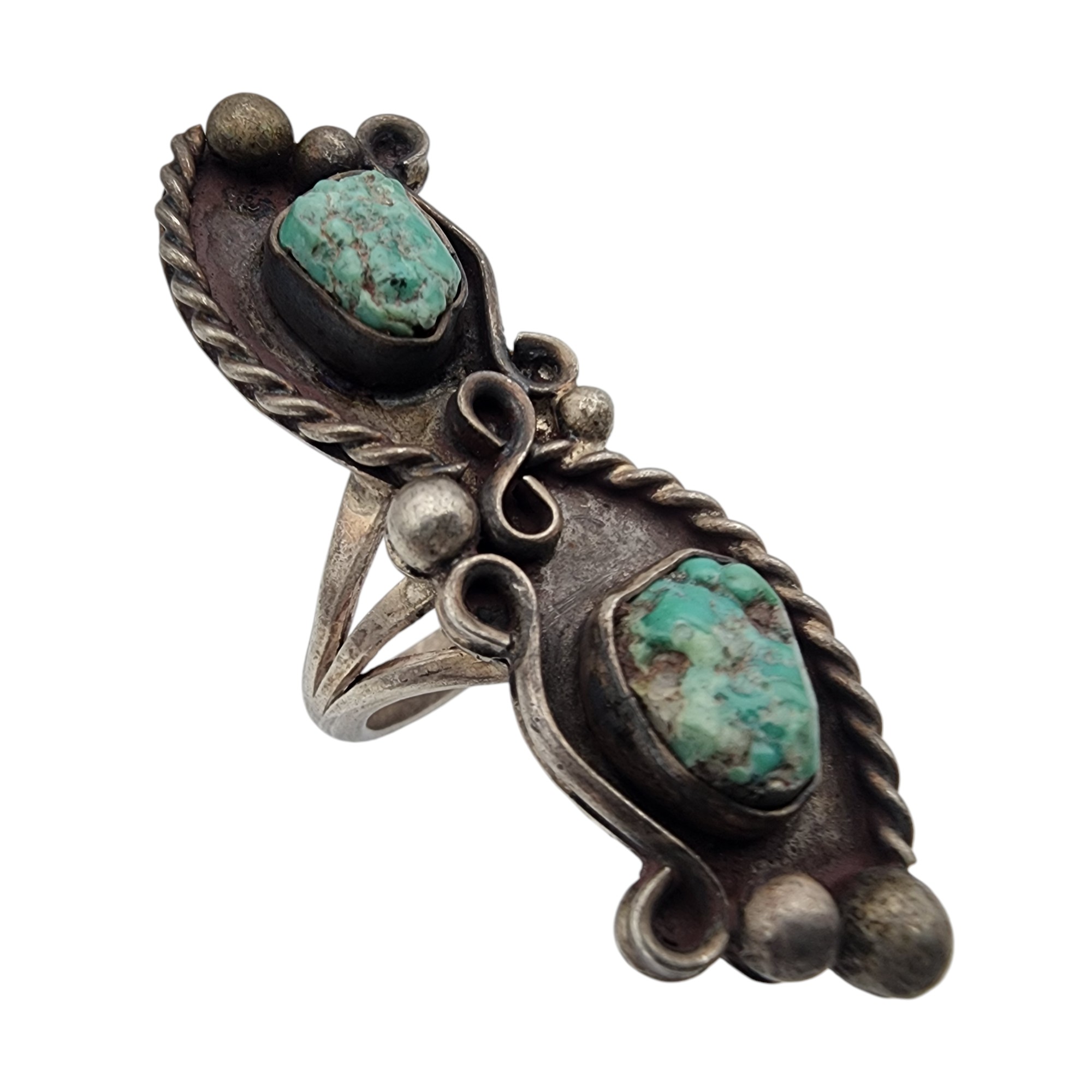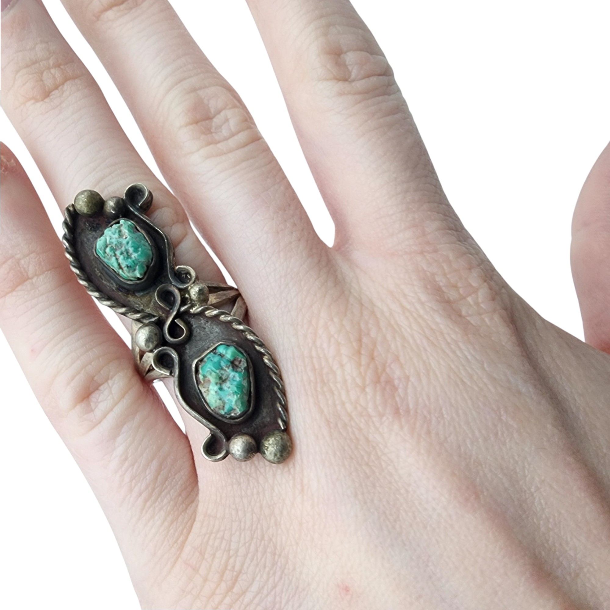 Vintage Navajo Sterling Double Turquoise Ring Sz 6.5, 11.5g
