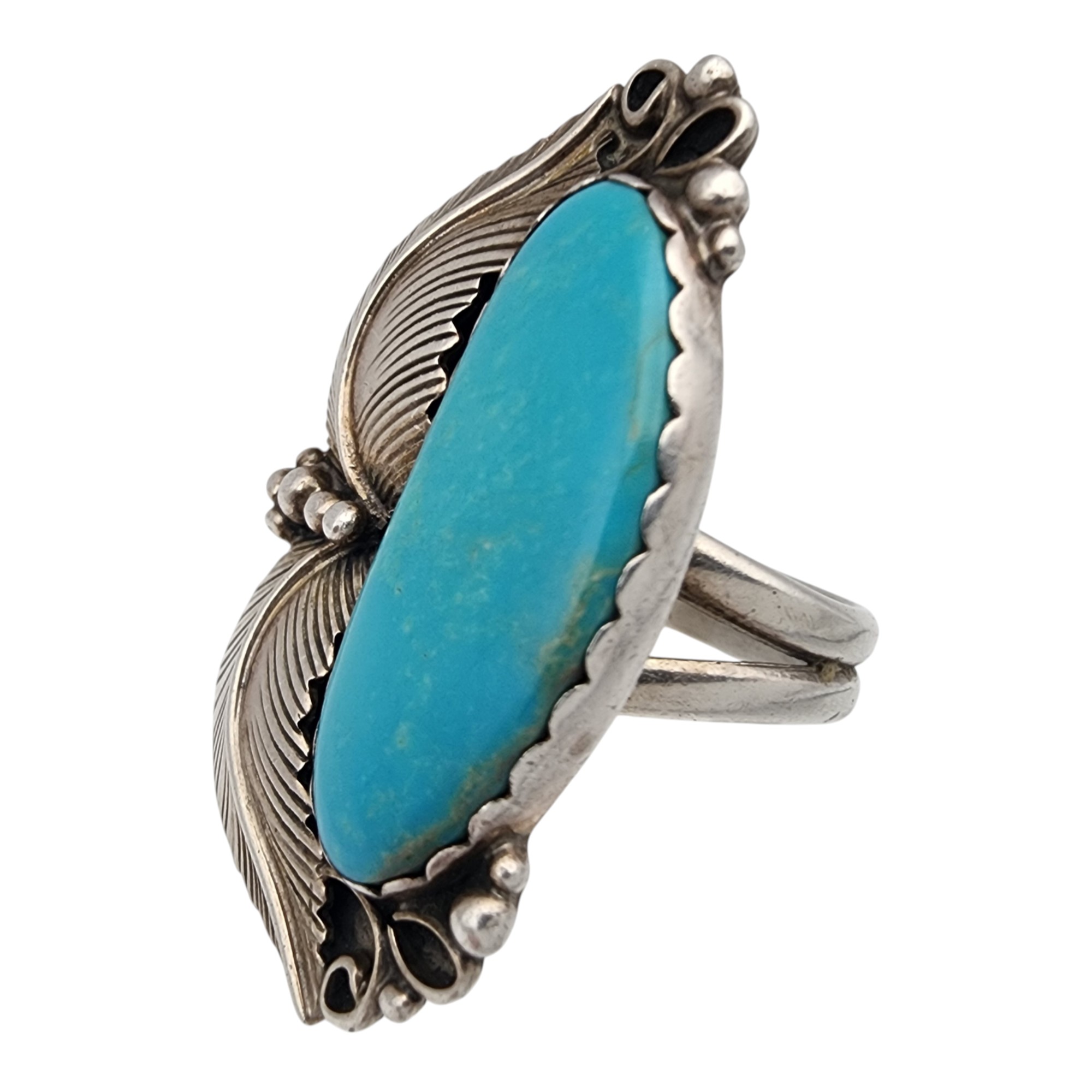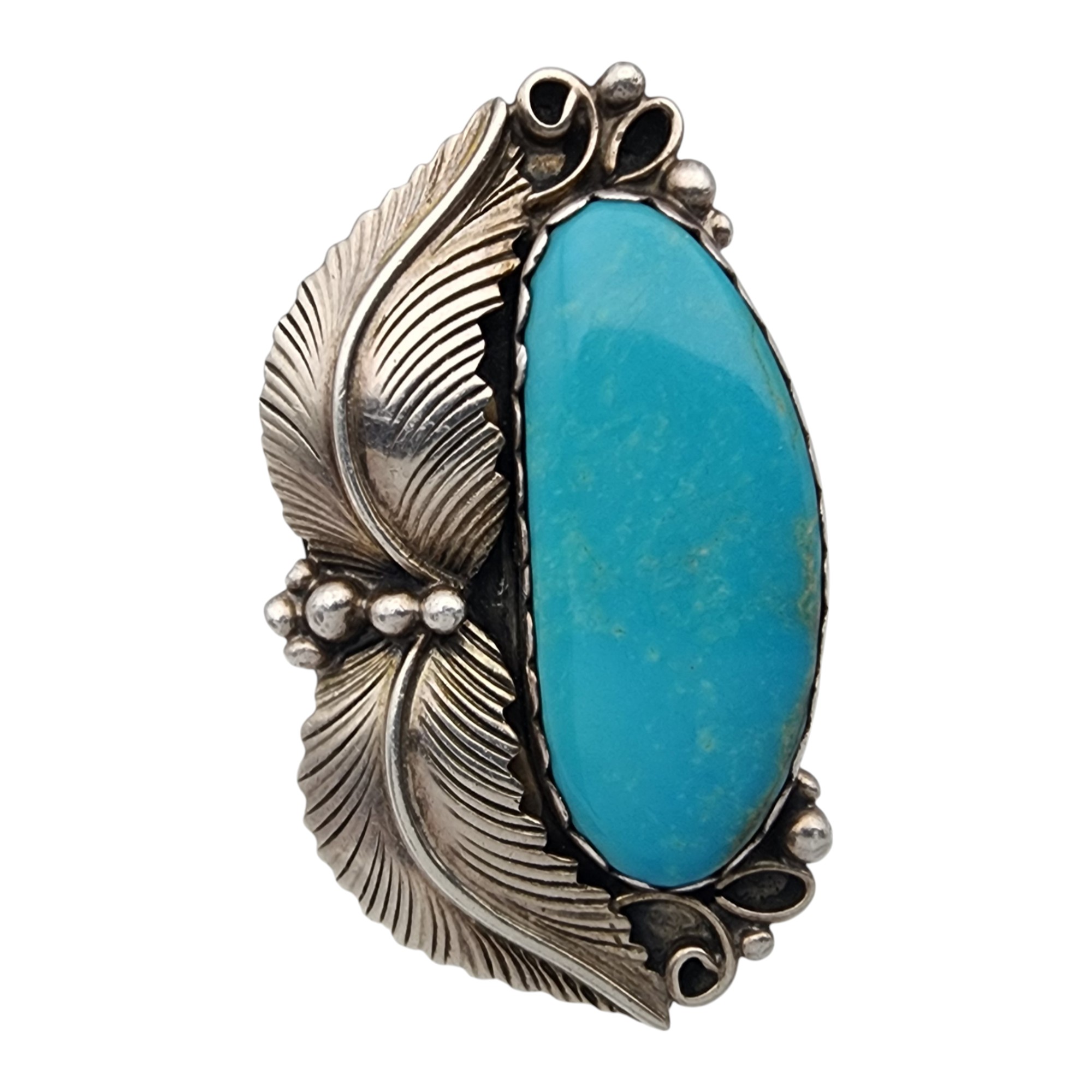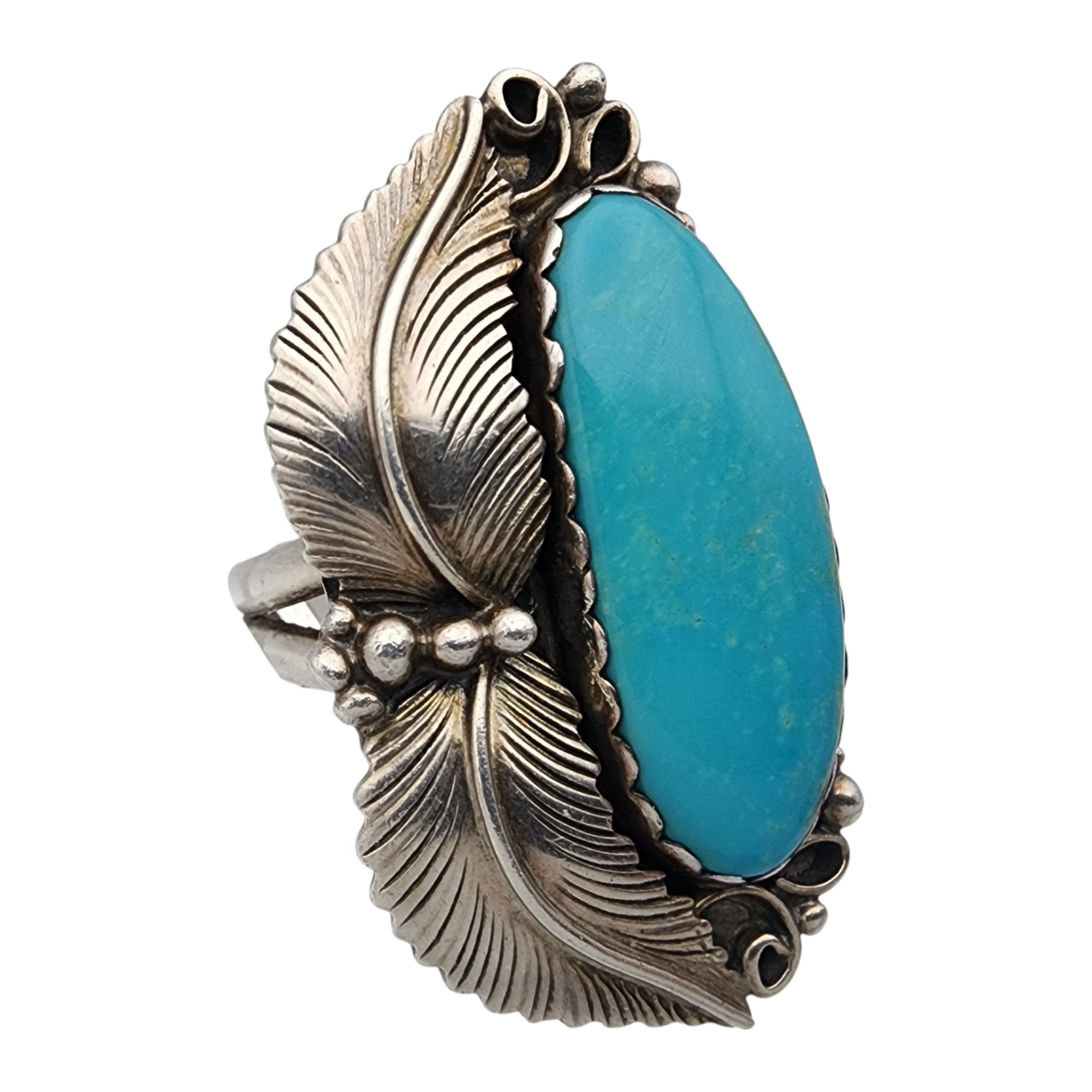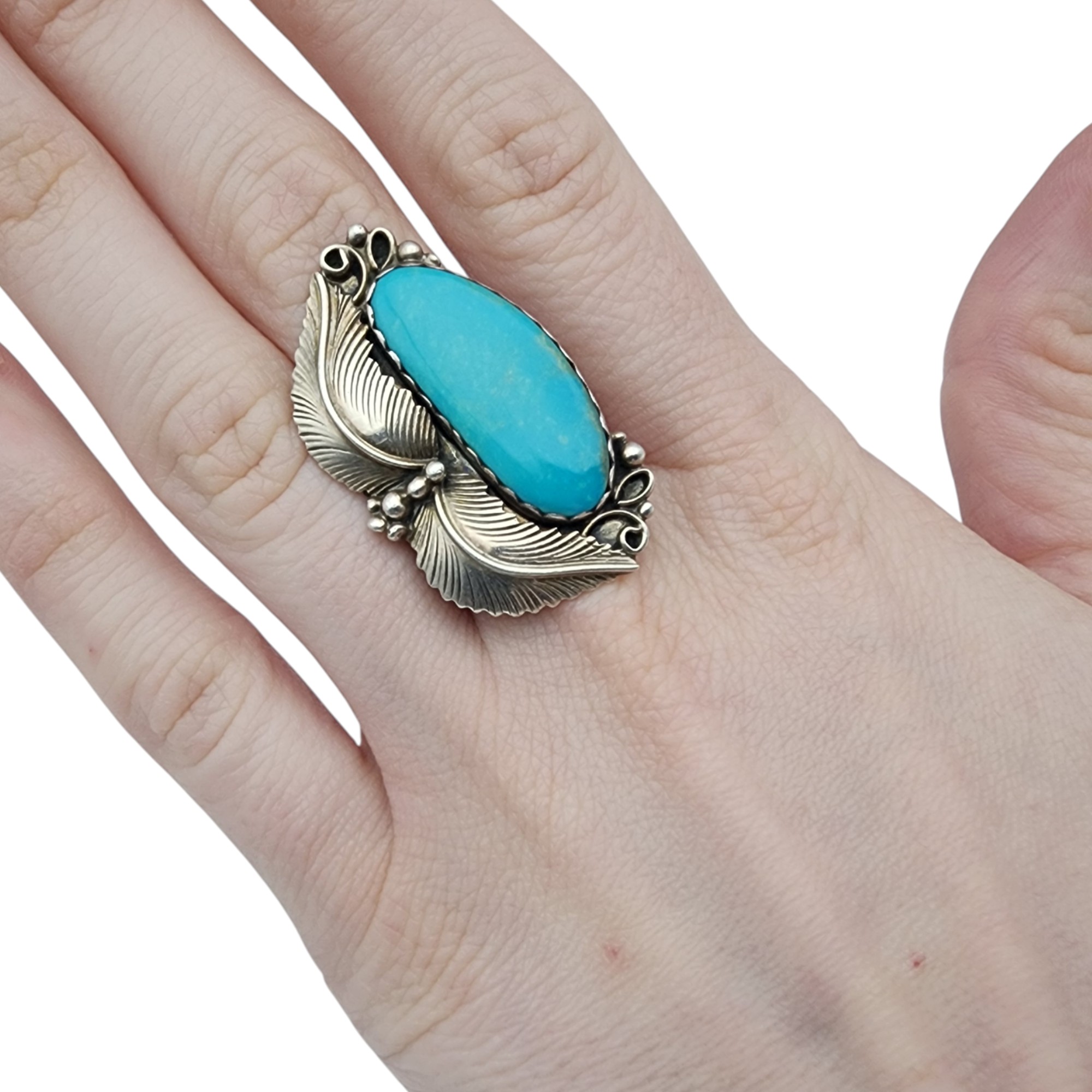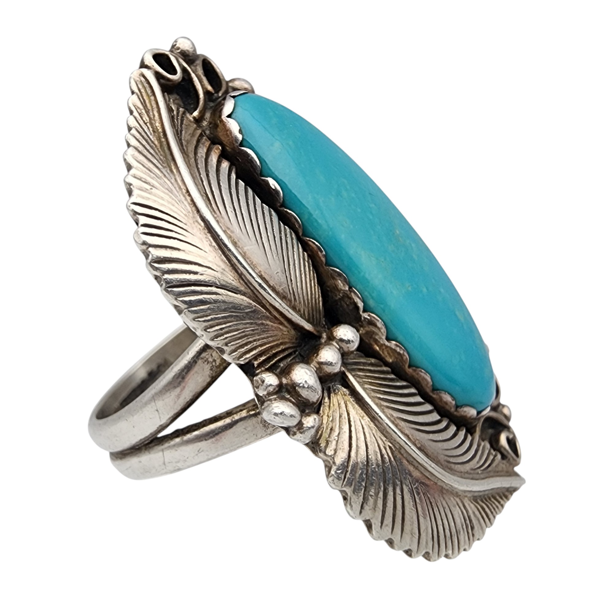 Signed VOA? (Unsure if Navajo or Southwestern) – Gorgeous, Large Sterling Turquoise Ring Sz 10, 10.9g