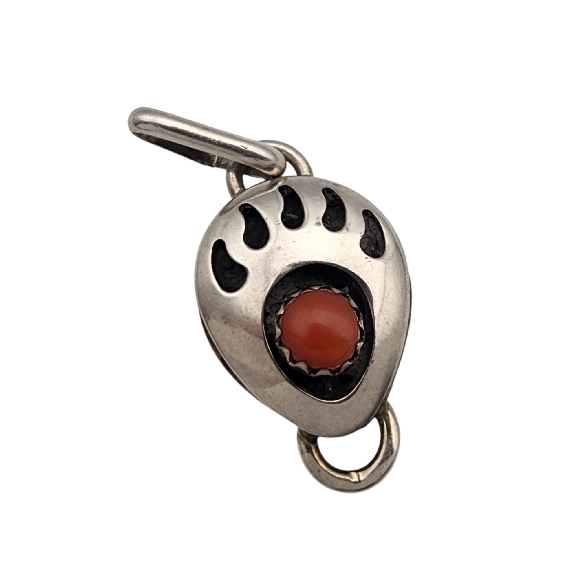 Navajo Sterling Coral Bear Paw Pendant, 1.3g
