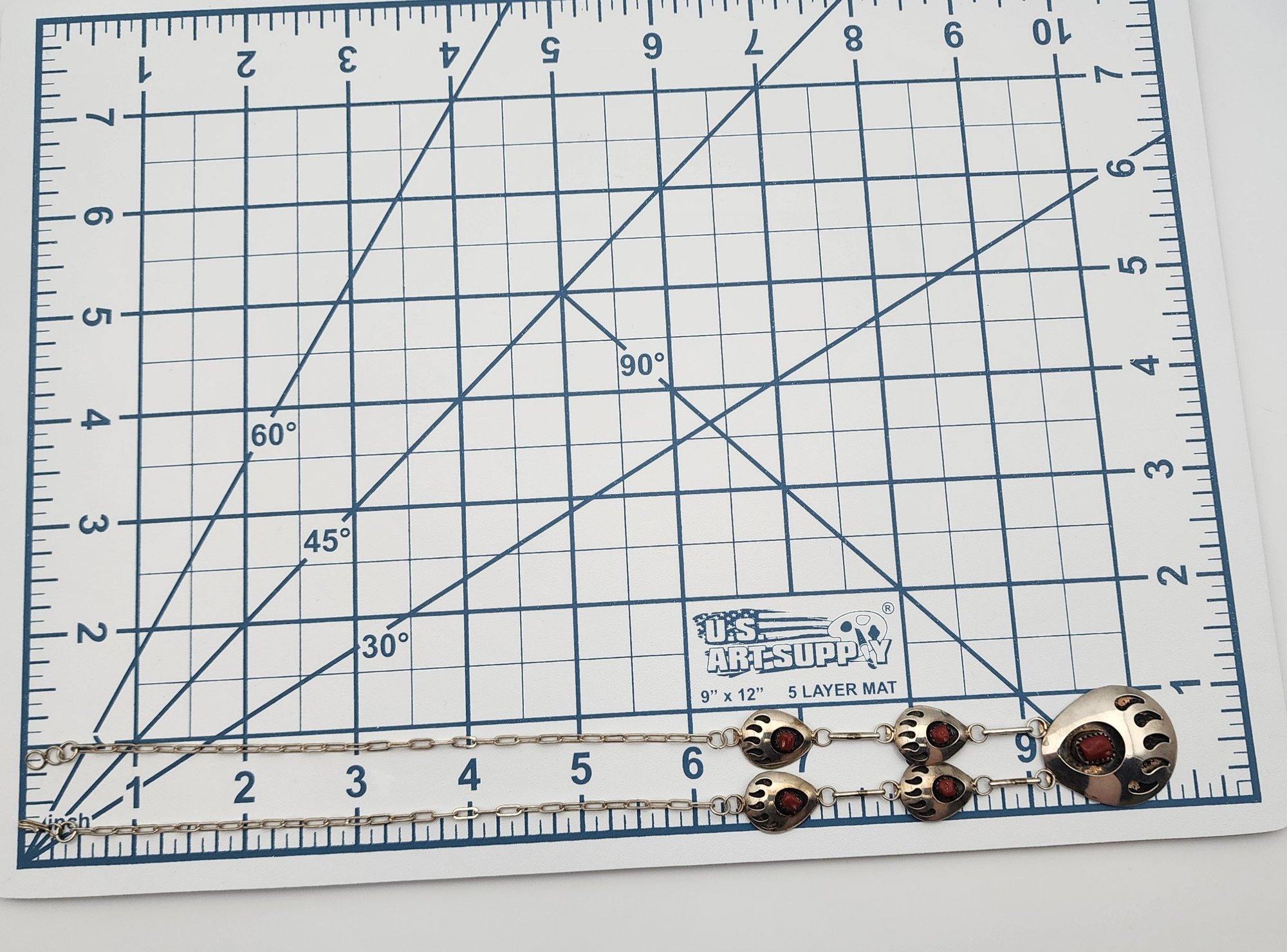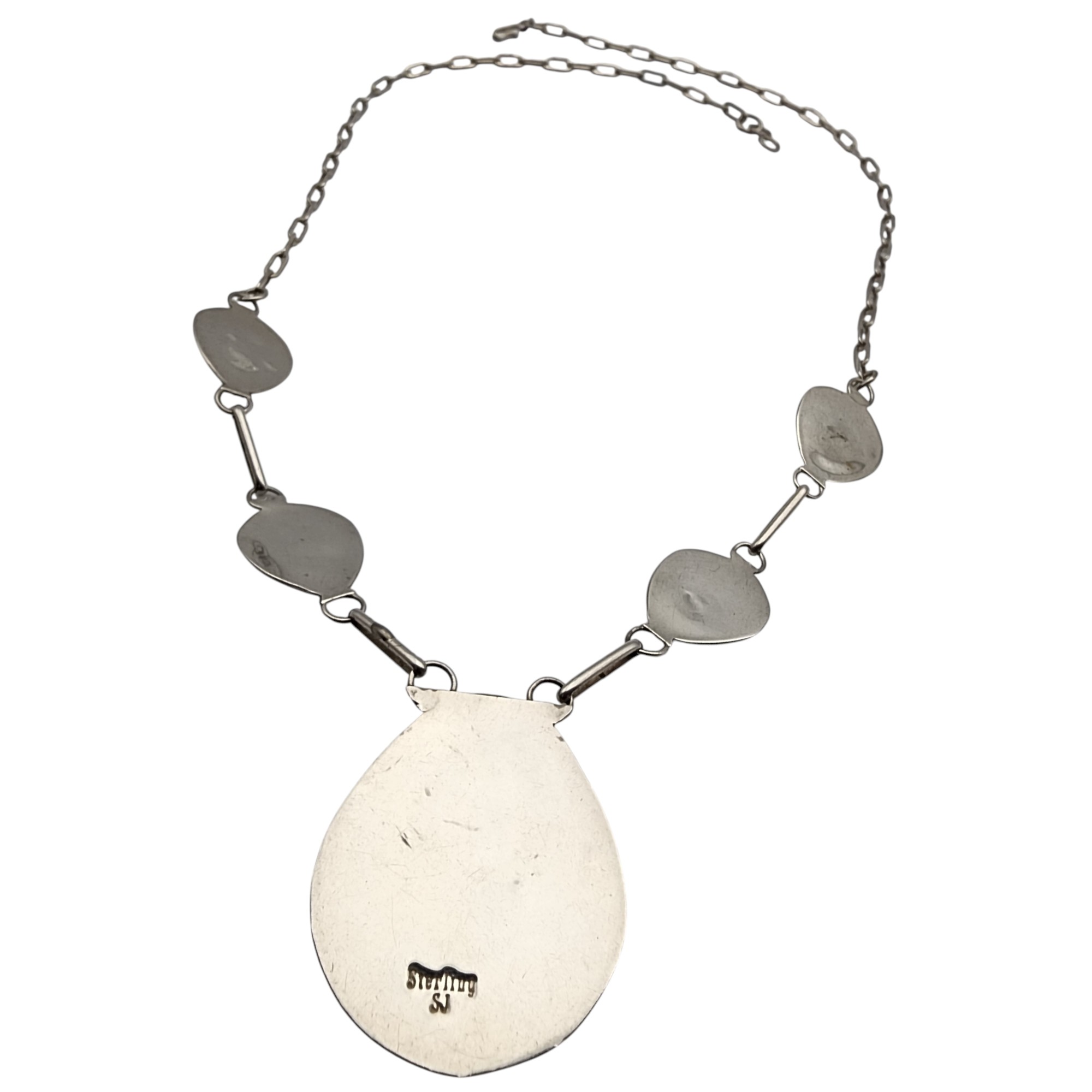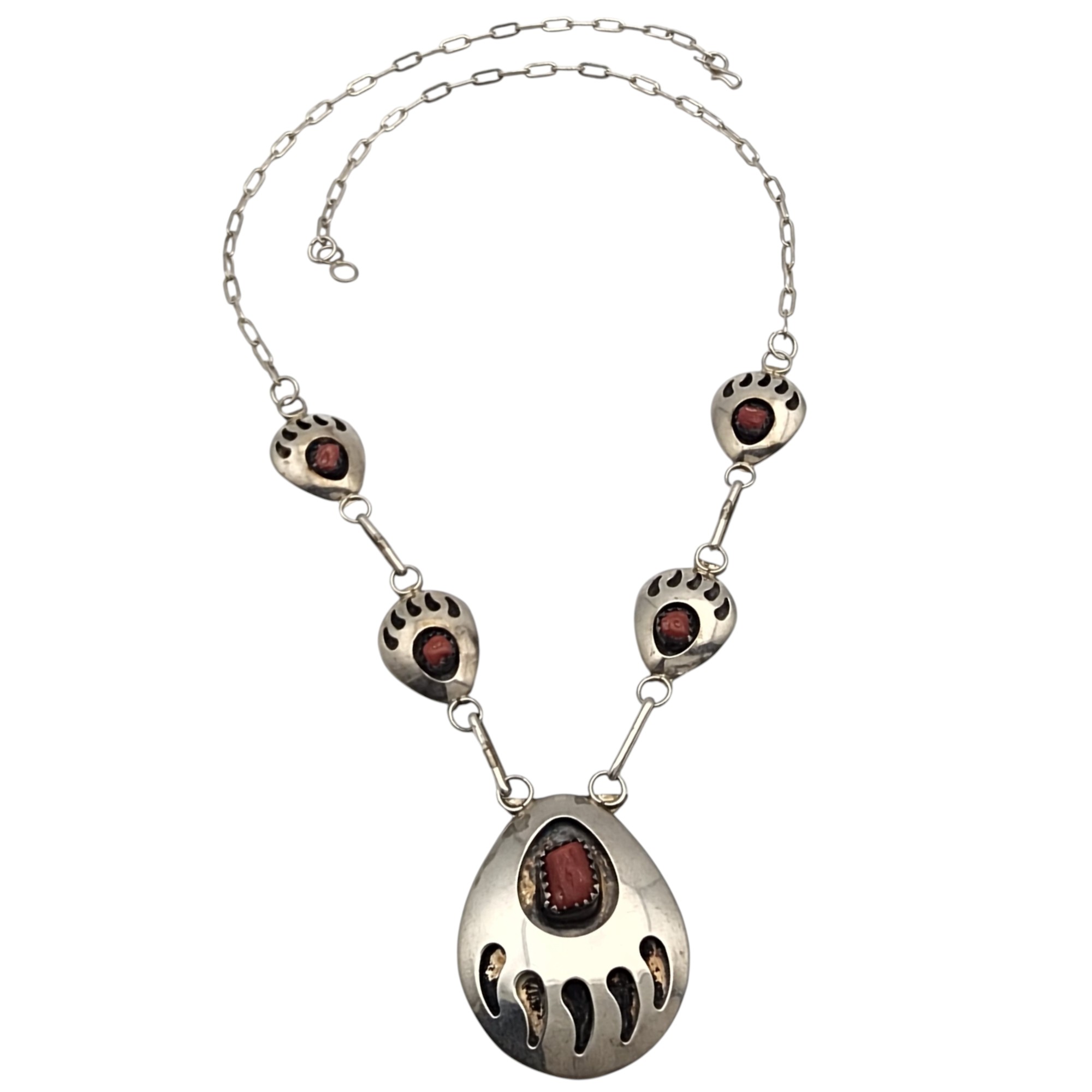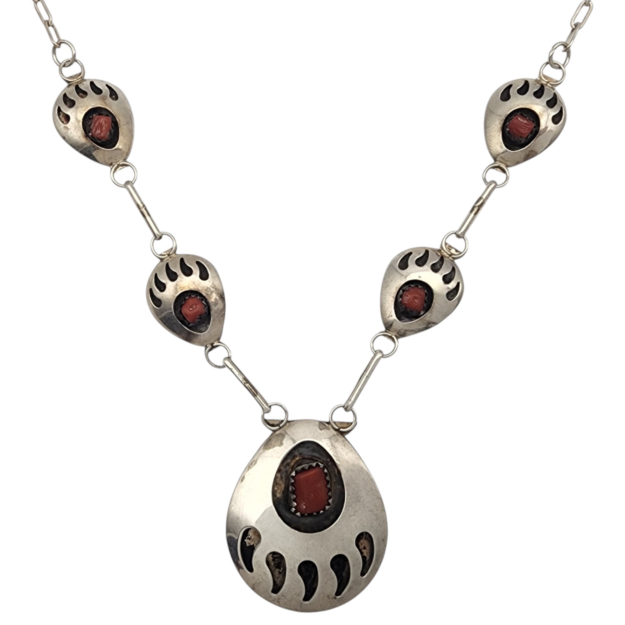 Signed Navajo Sterling Coral Bear Paw Necklace, 10.9g