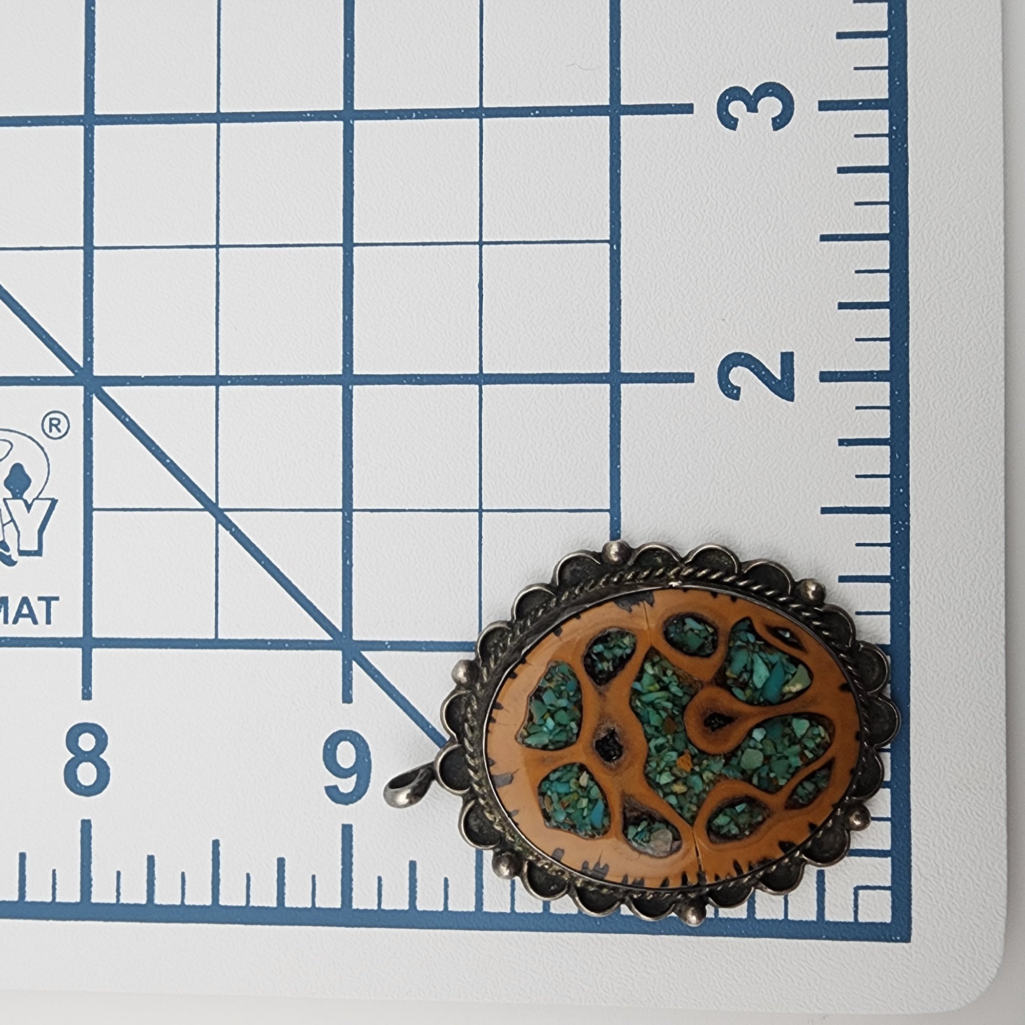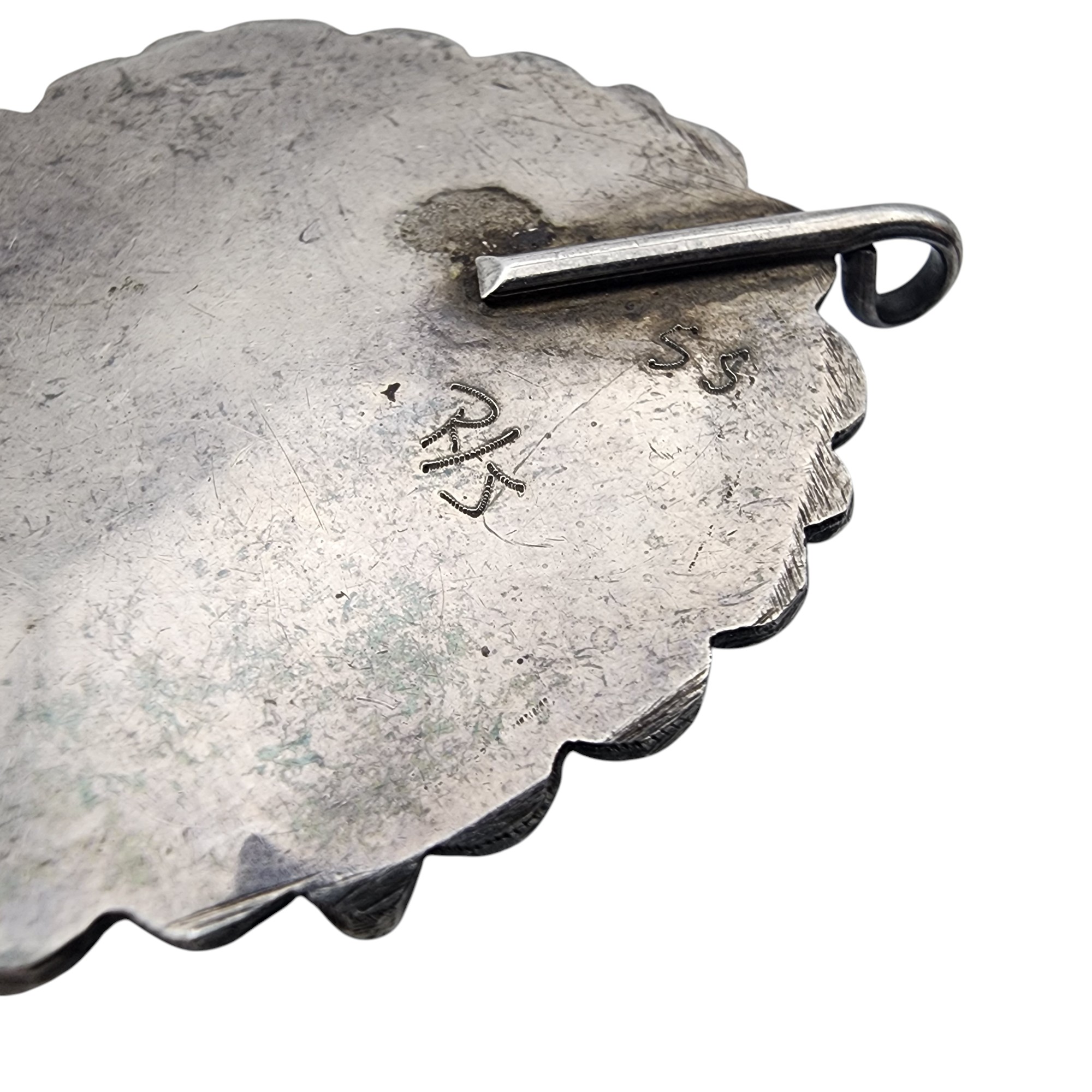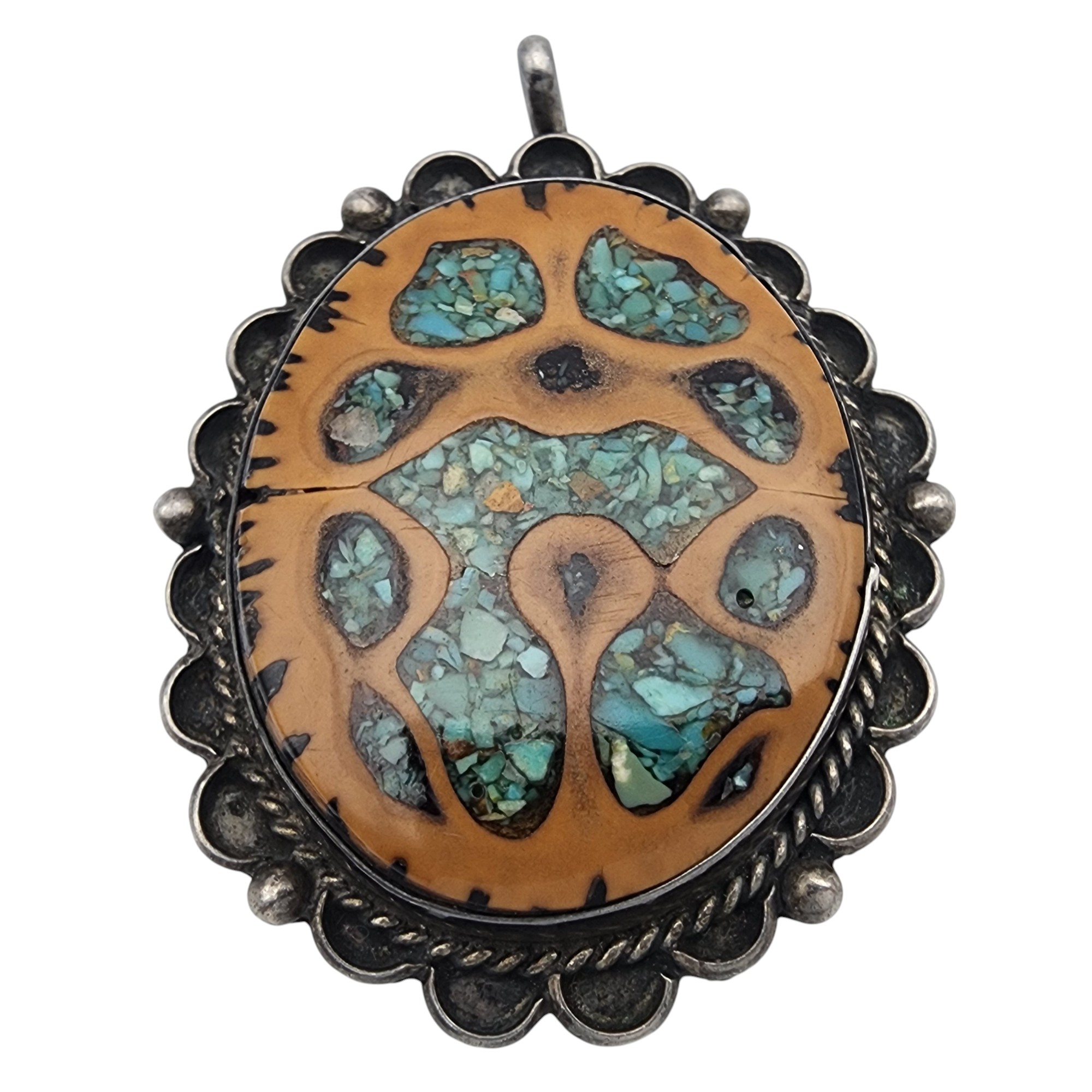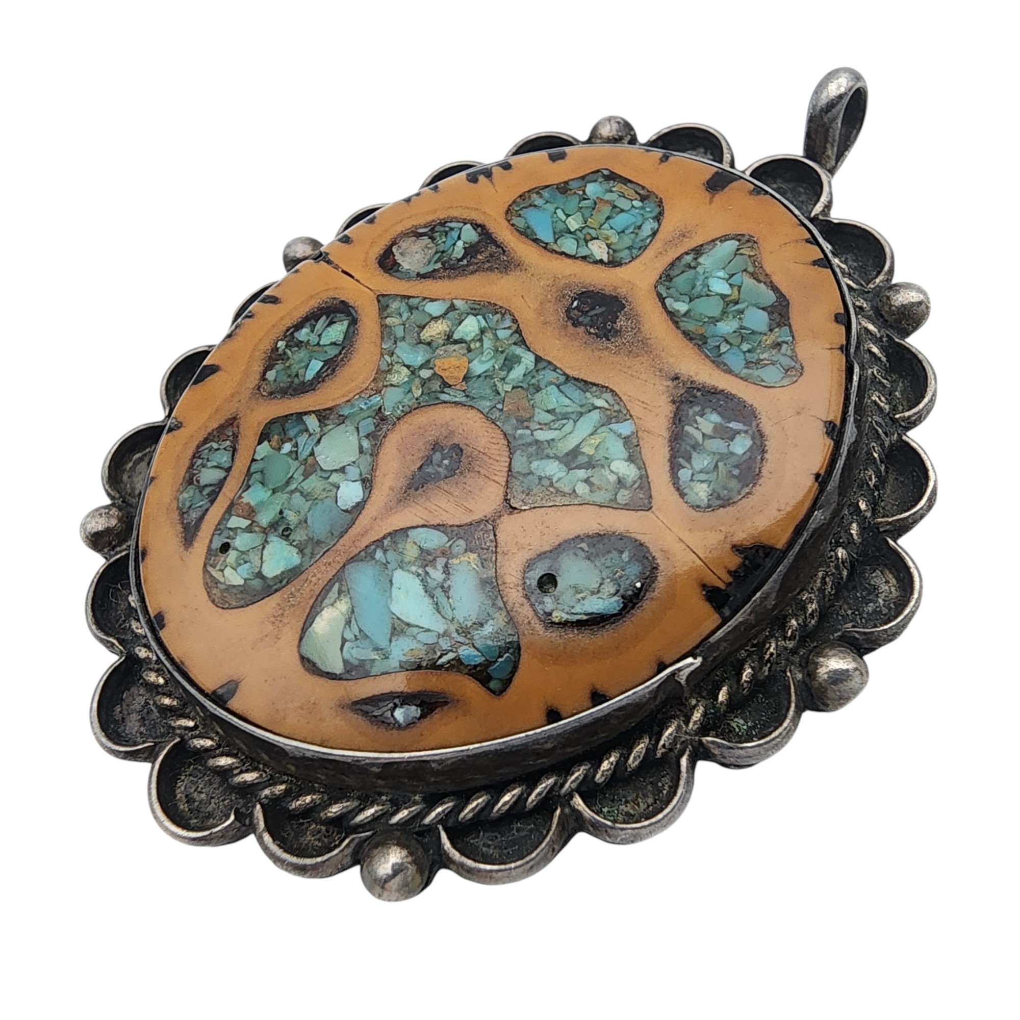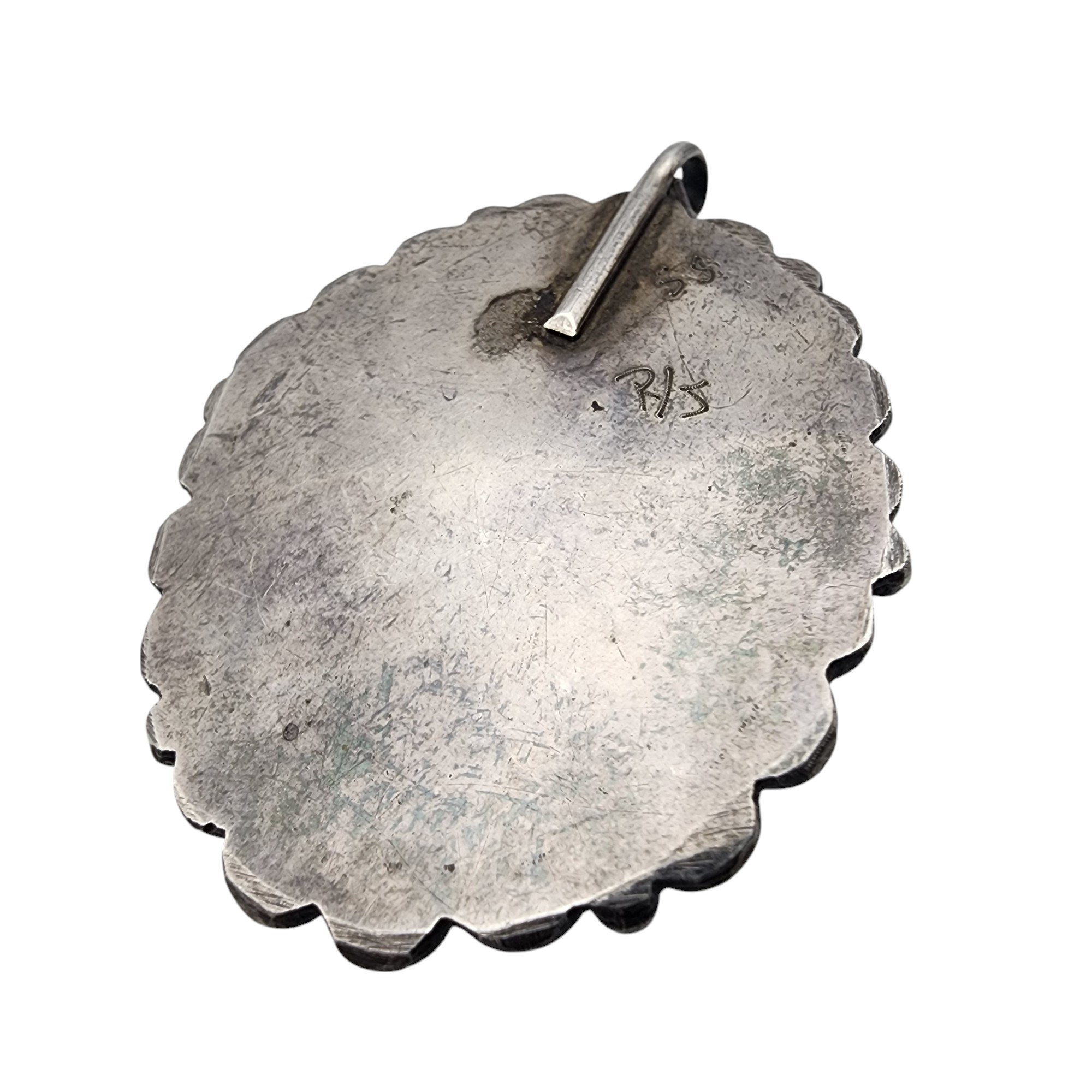 Signed R/S Navajo Sterling Walnut Turquoise Inlay Pendant, 11.3g