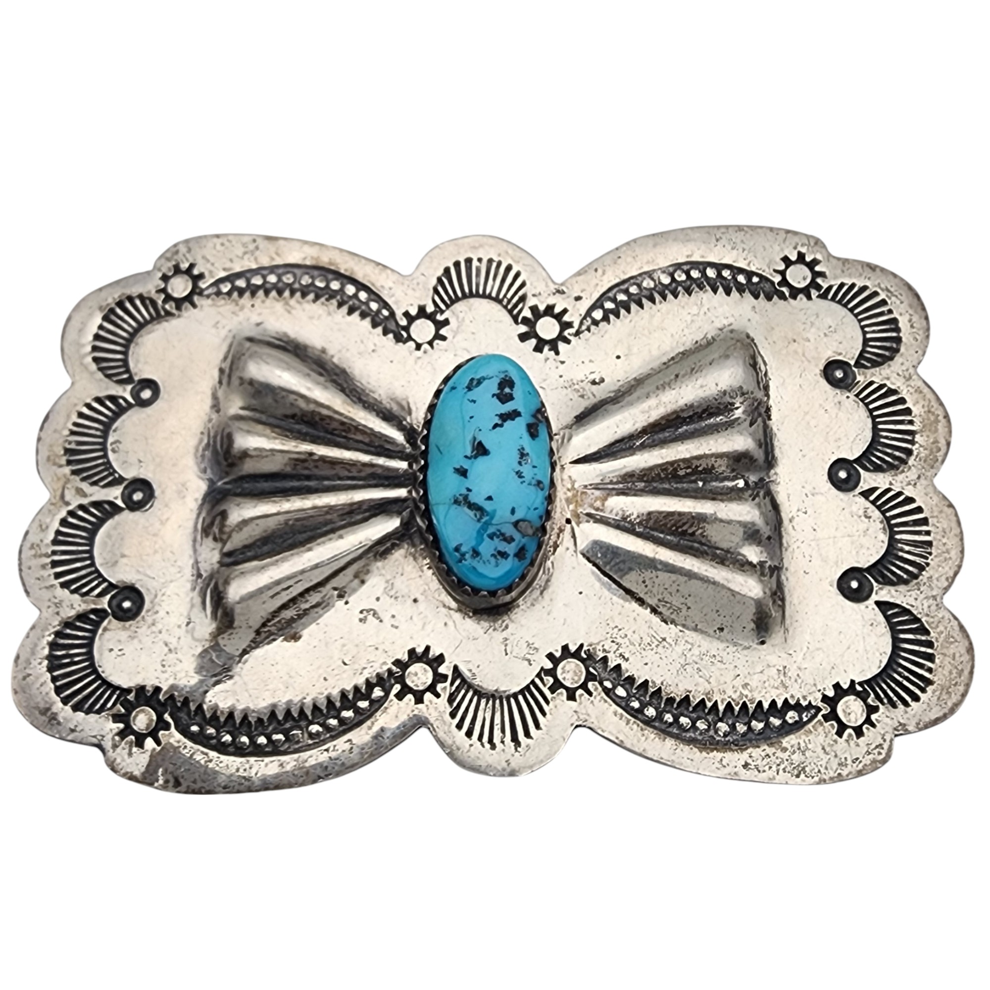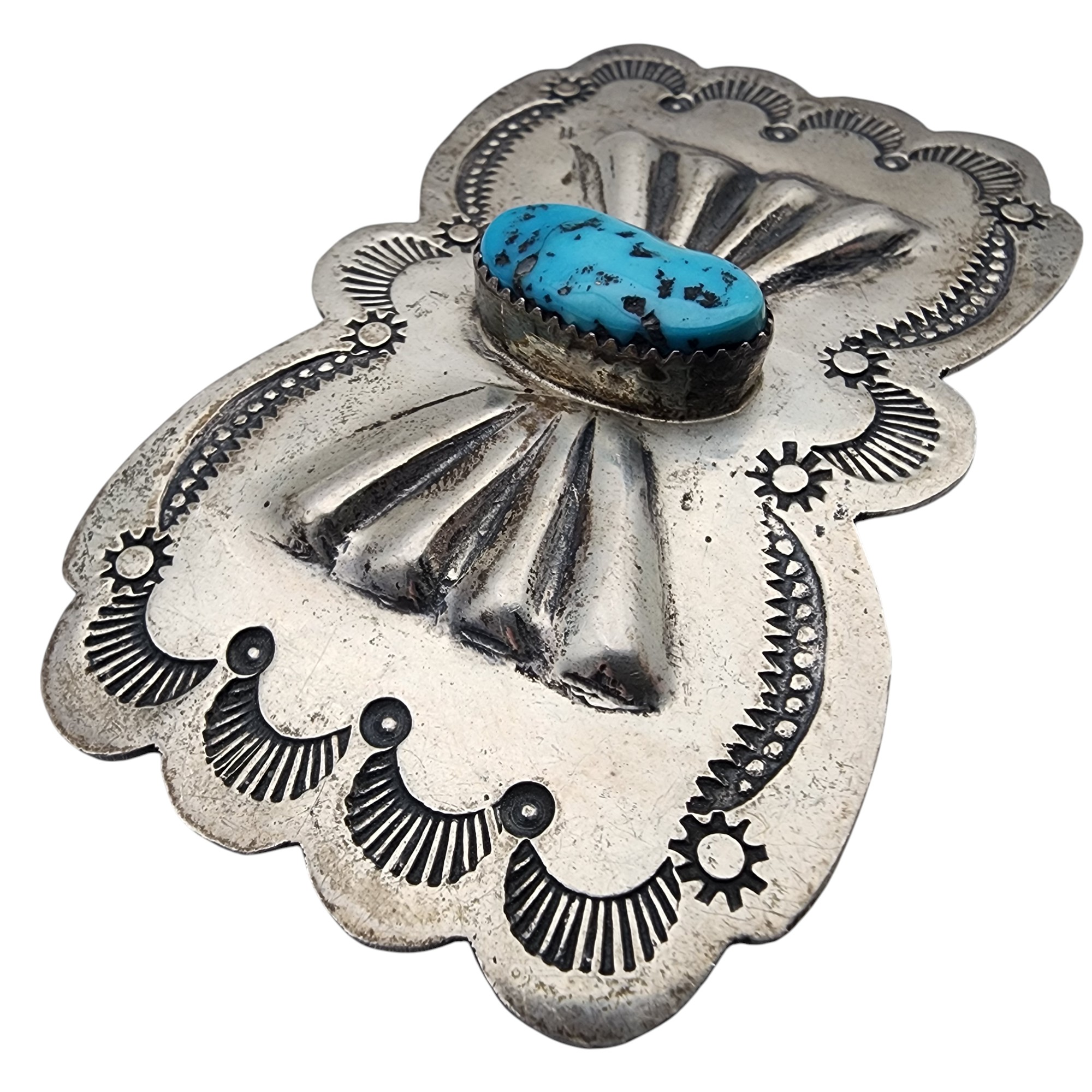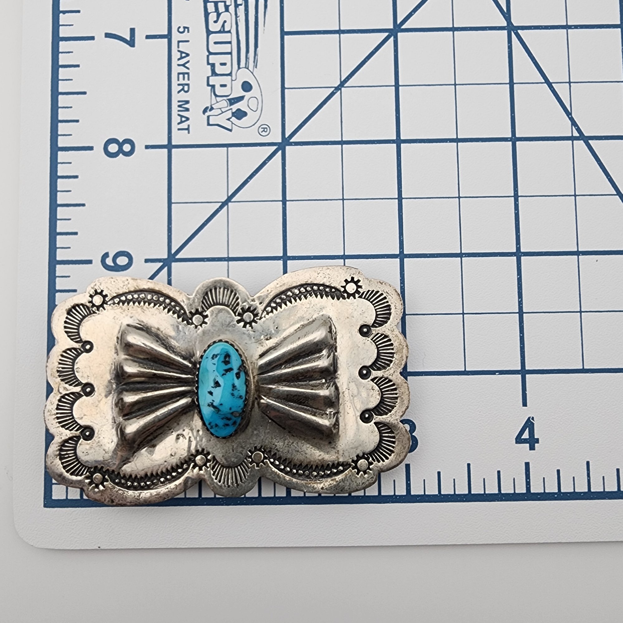 Vintage Navajo Sterling Stamped Turquoise Belt Piece, 39.5g