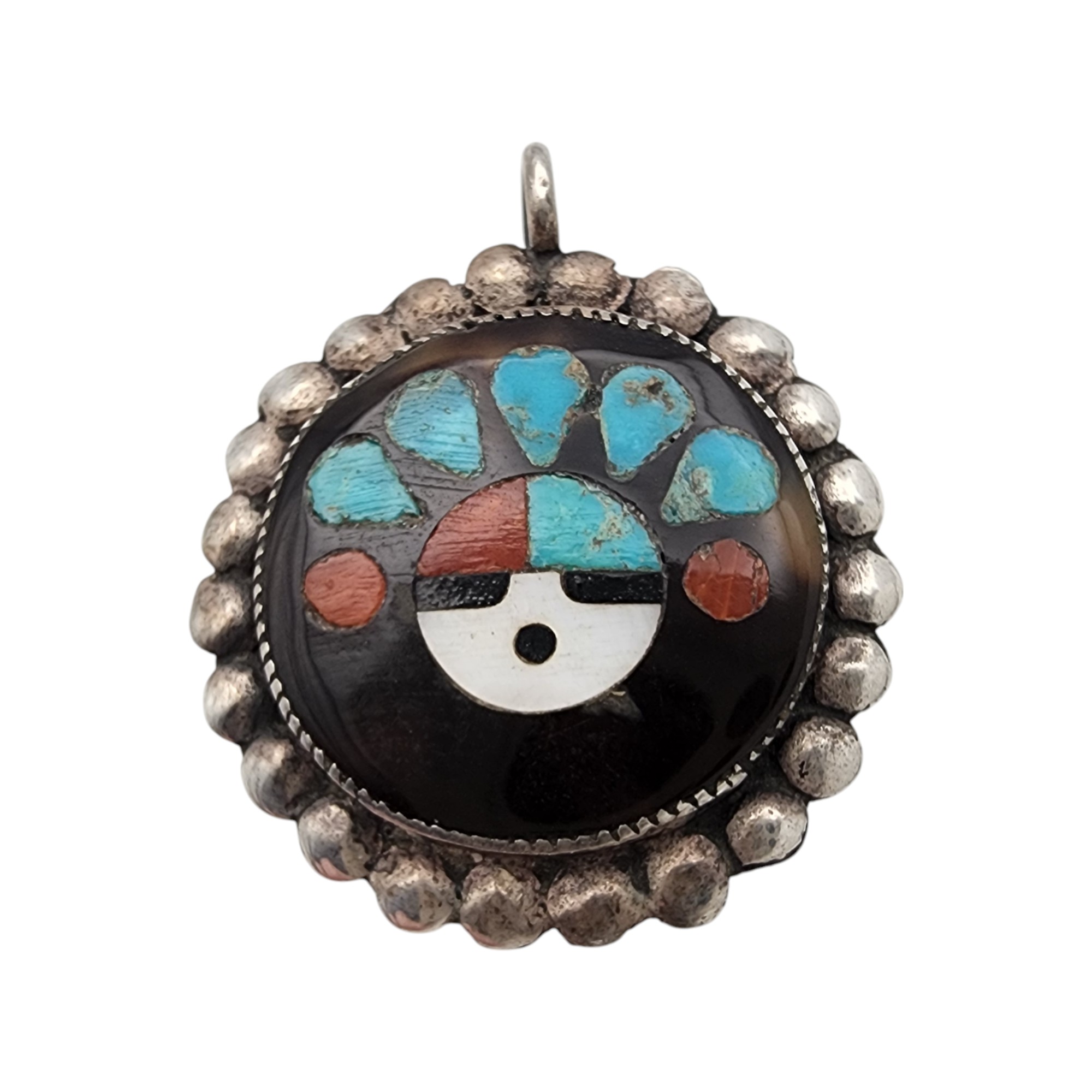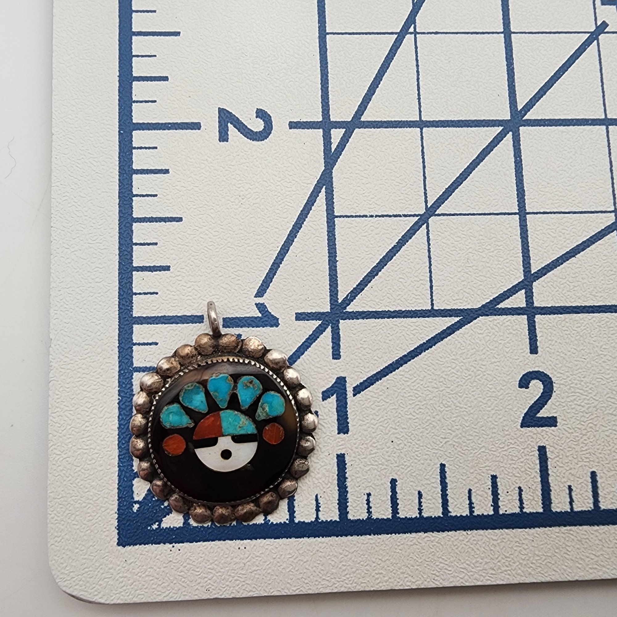 Vintage Zuni Sterling Multistone Inlay Sunface Pendant 3g