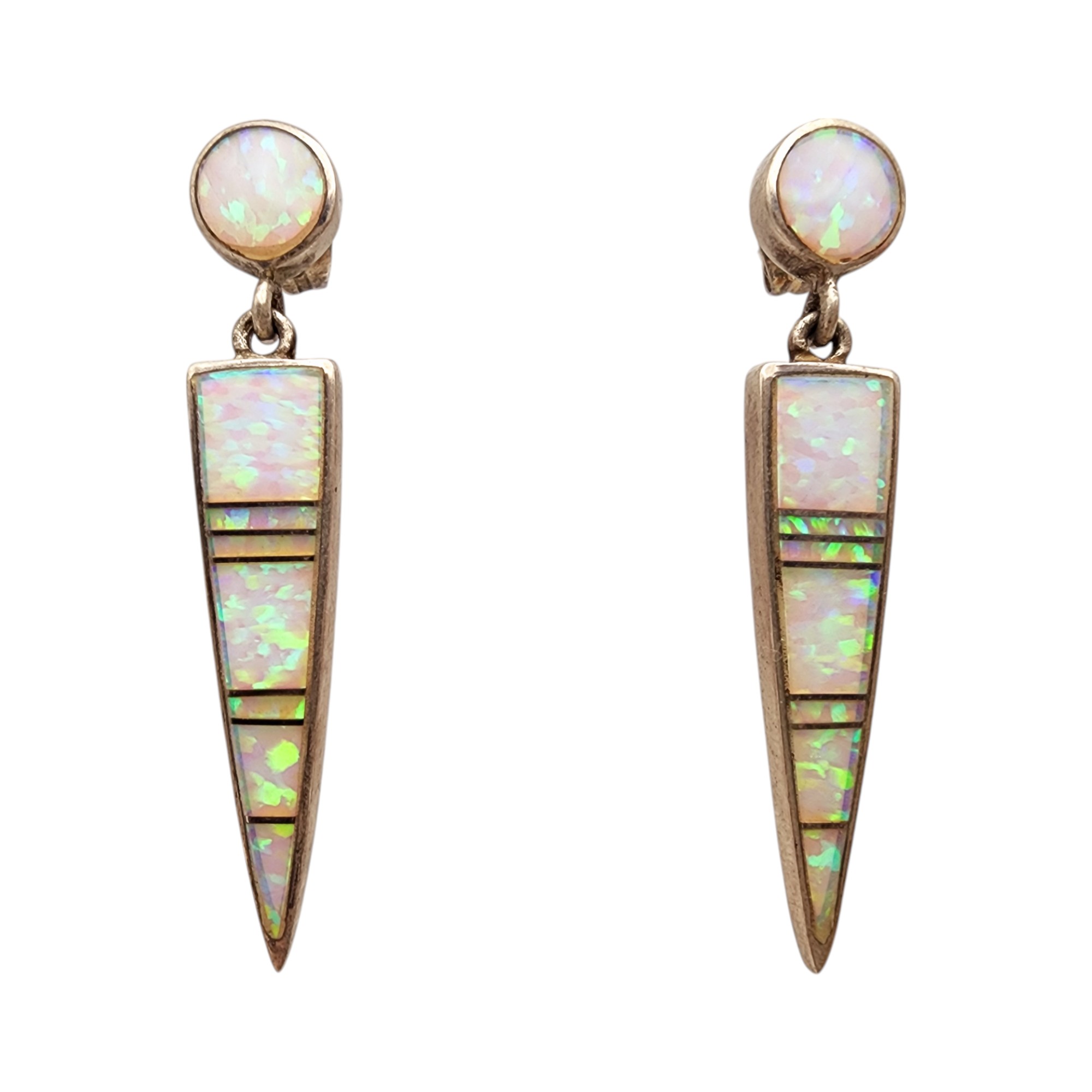 Southwestern Sterling Opal Inlay Earrings, 4.9g
