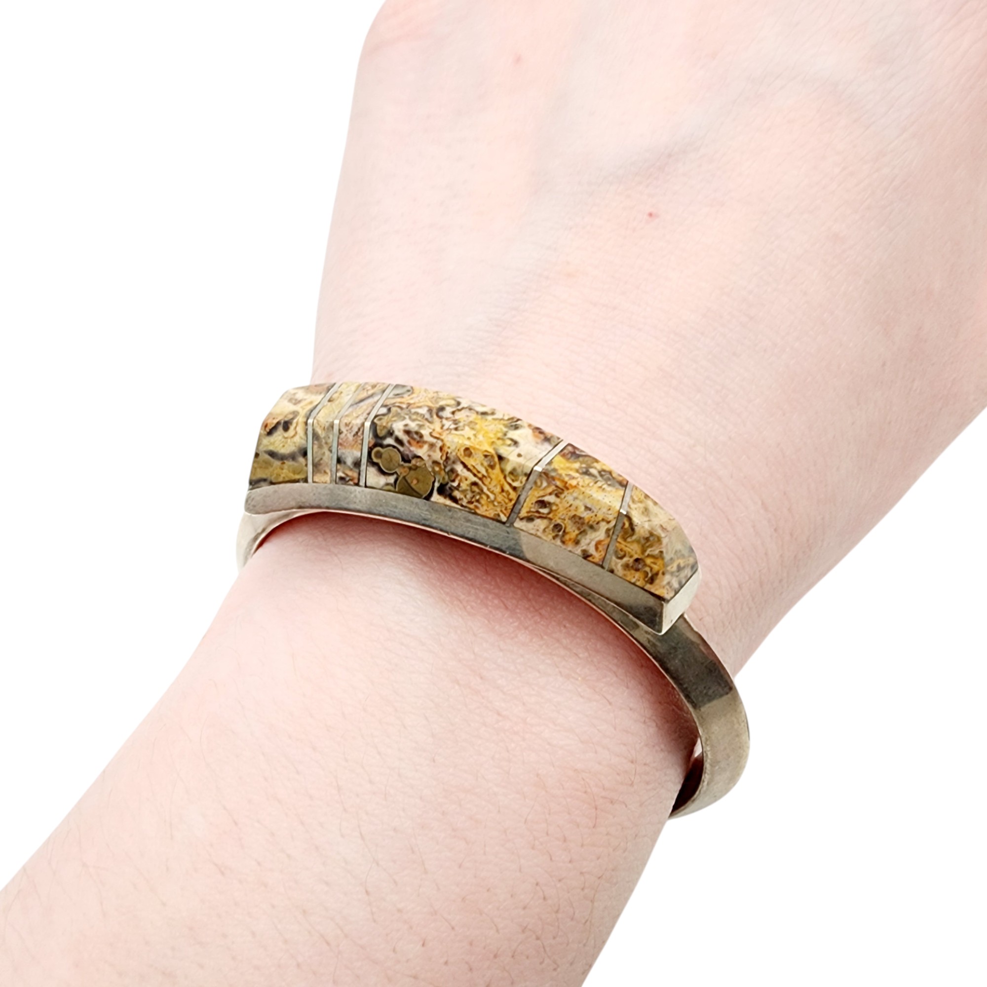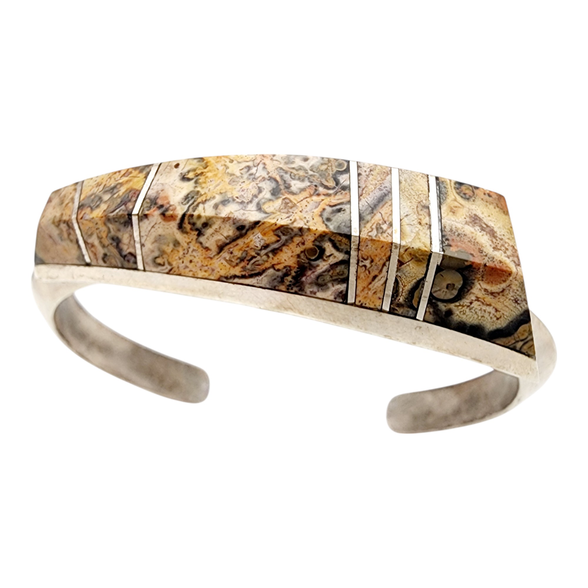 Signed NA Navajo Sterling Jasper Inlay Cuff Bracelet, 33.3g