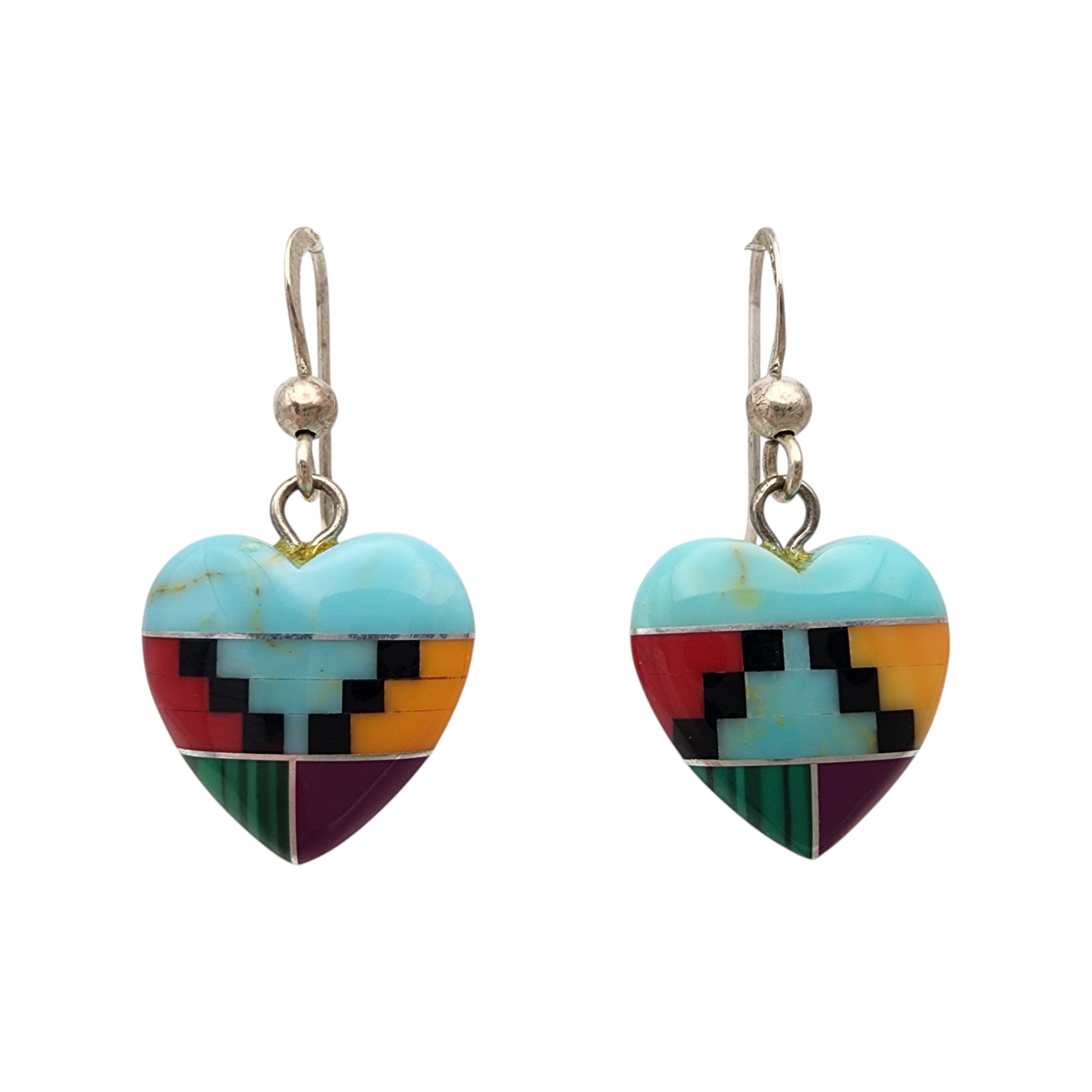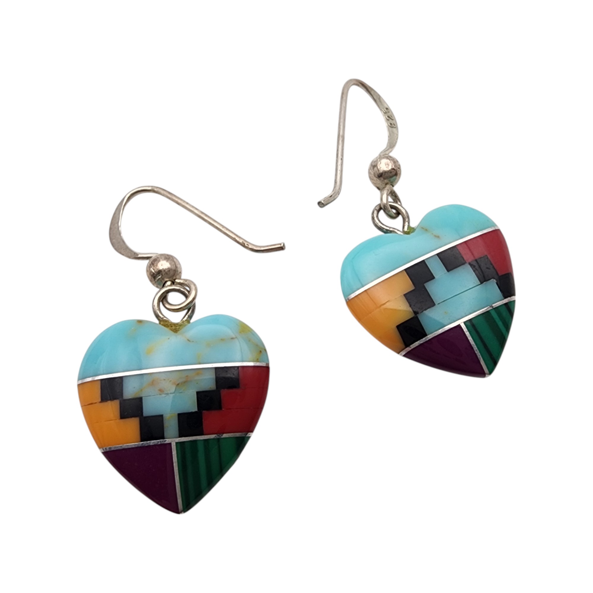 Southwestern Sterling Multistone Inlay Earrings, 2.6g