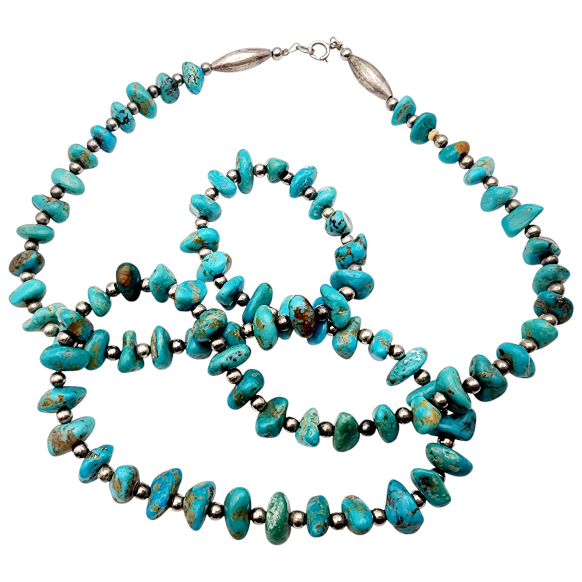 Southwestern Sterling Turquoise and Bead Necklace, 66.7g