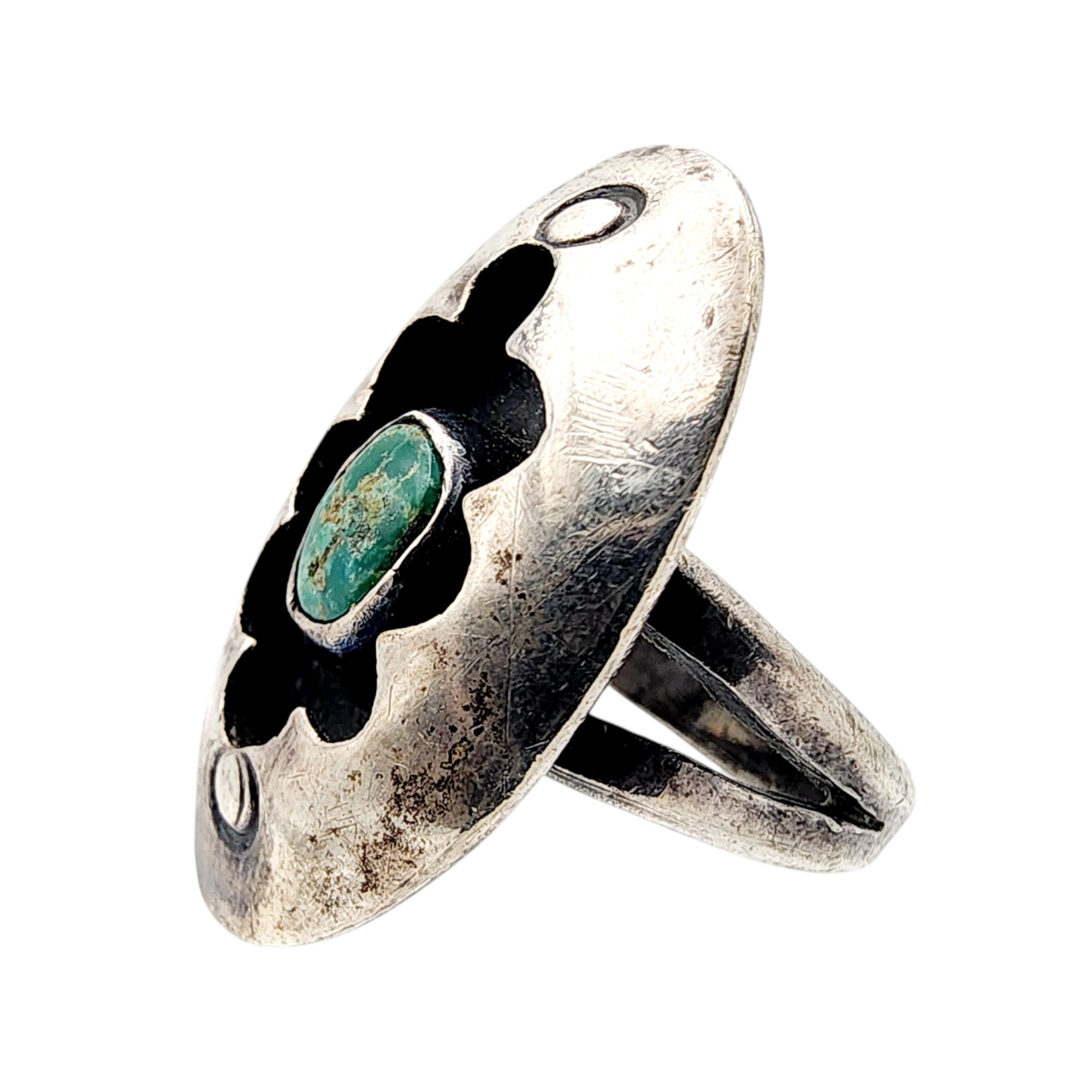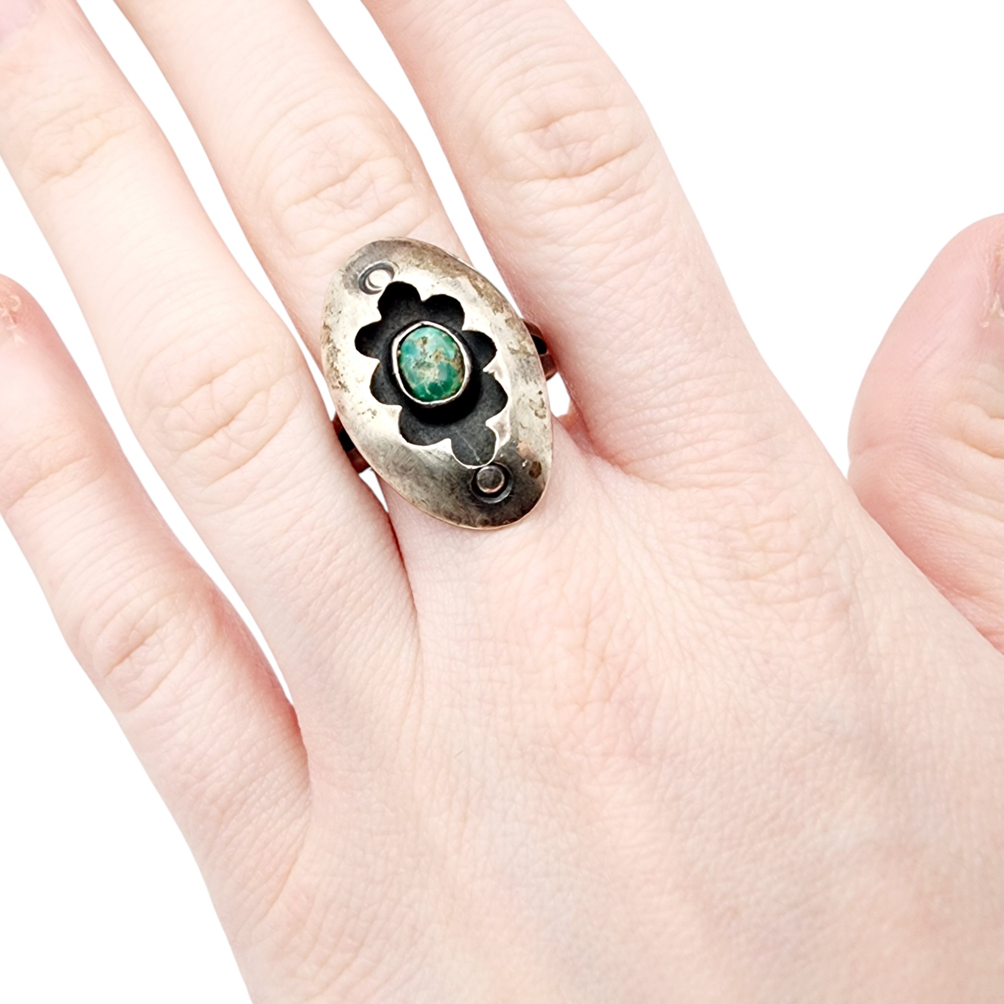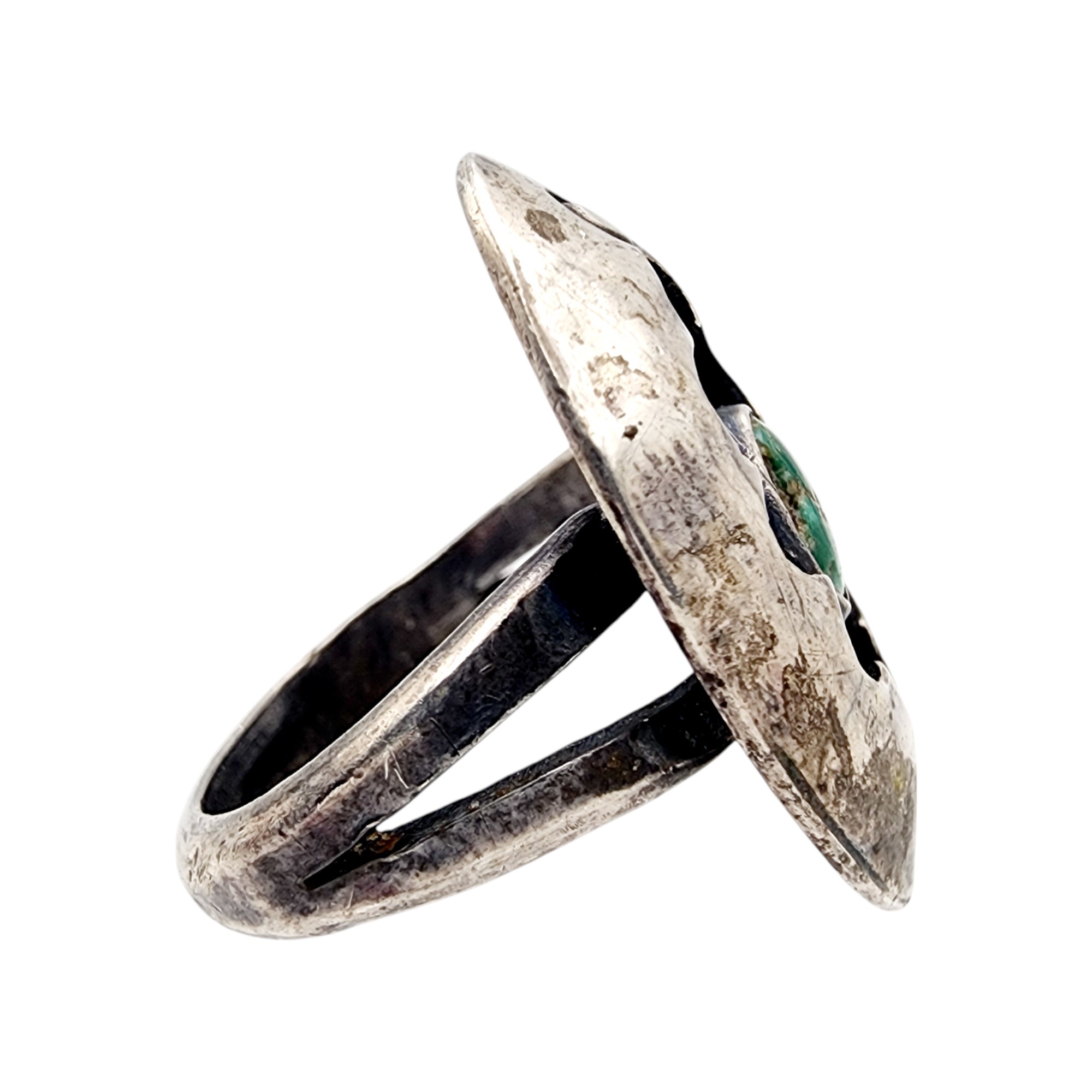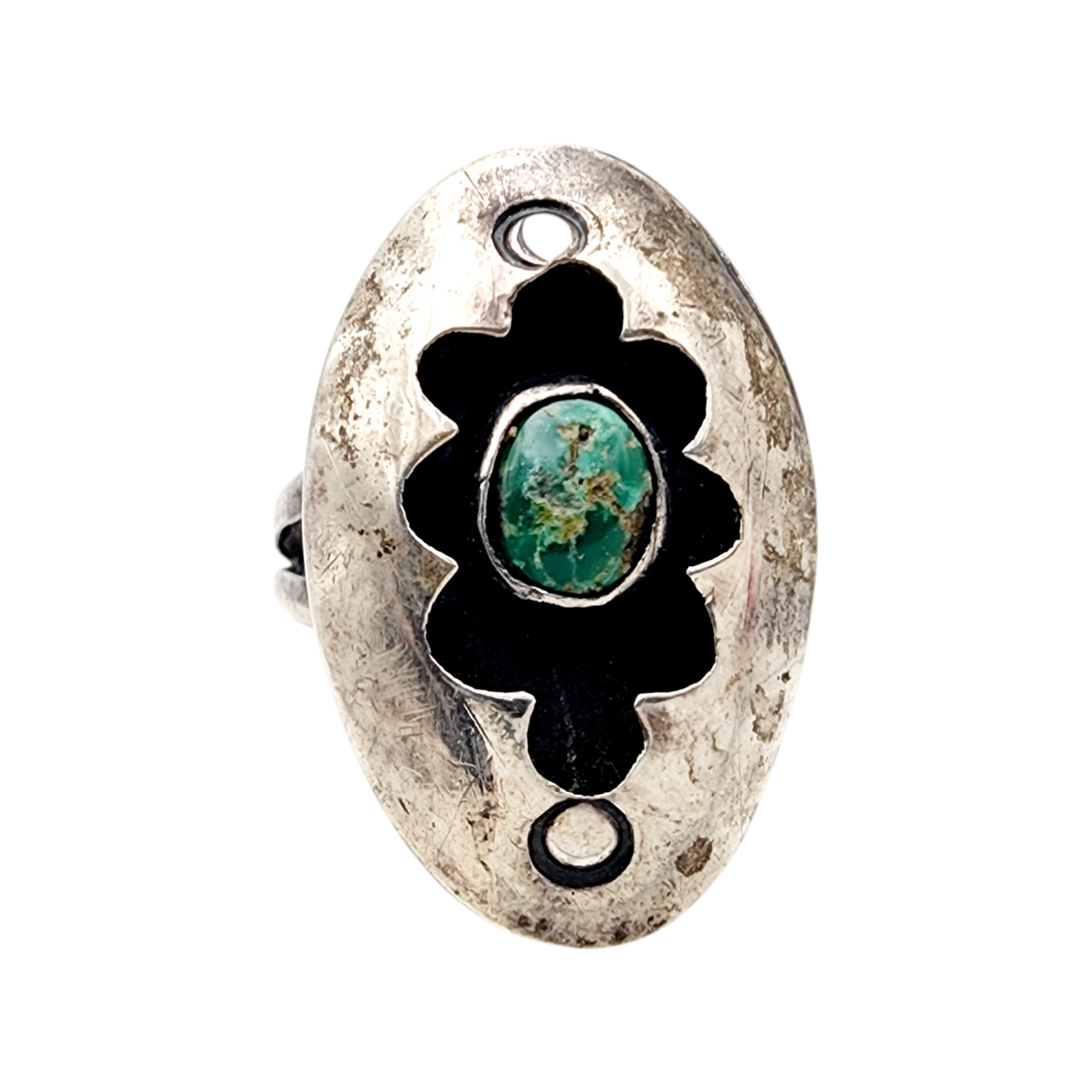 Vintage Navajo Sterling Turquoise Shadowbox Ring Sz 7.5, 8g