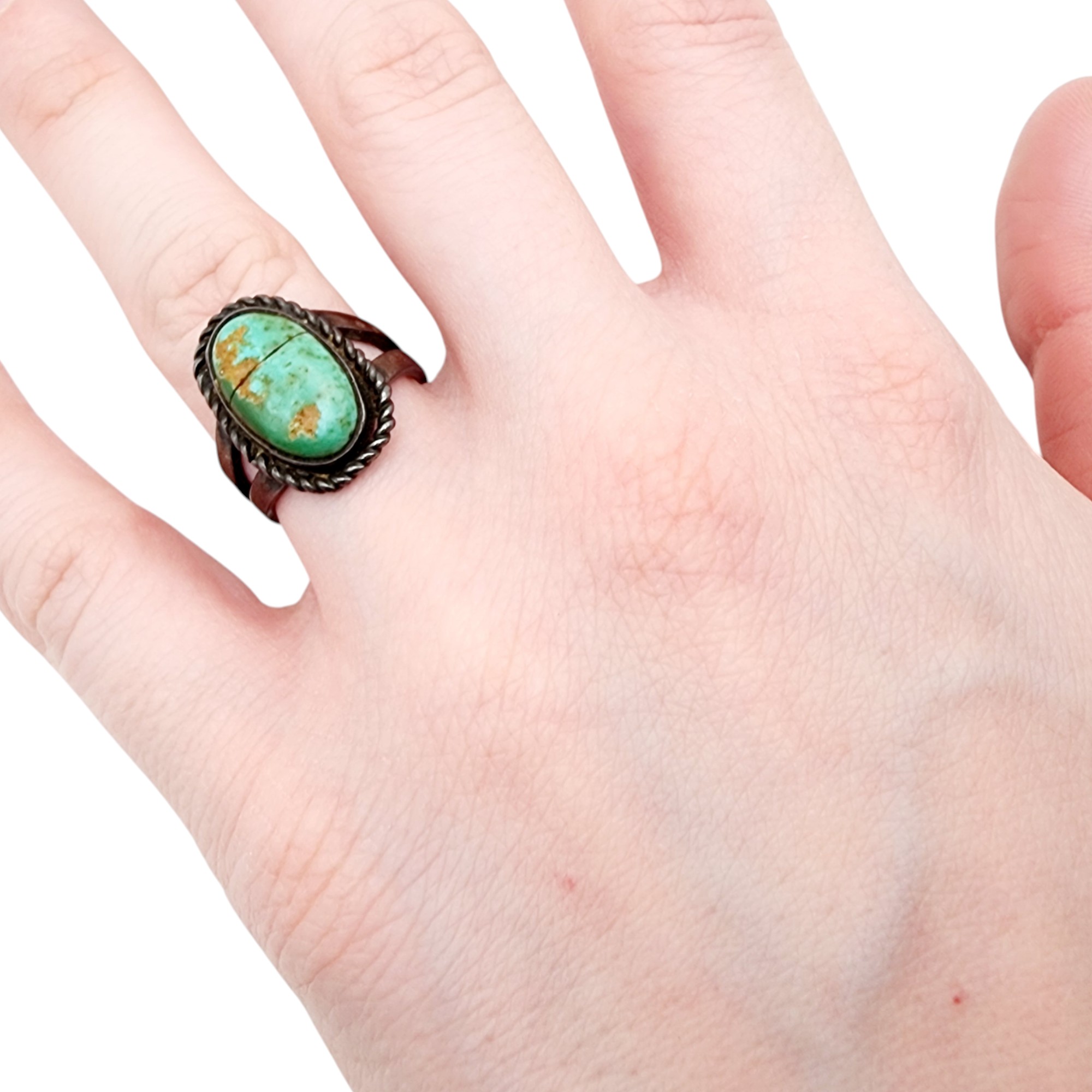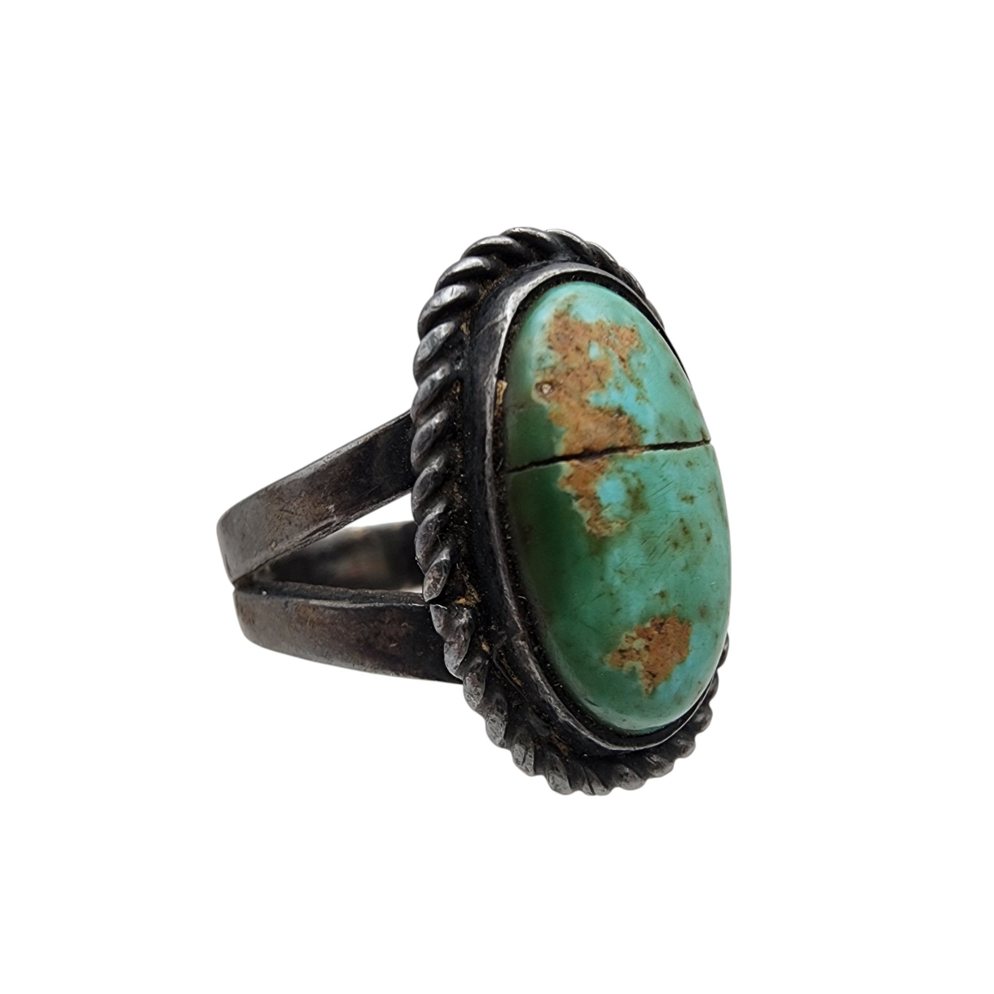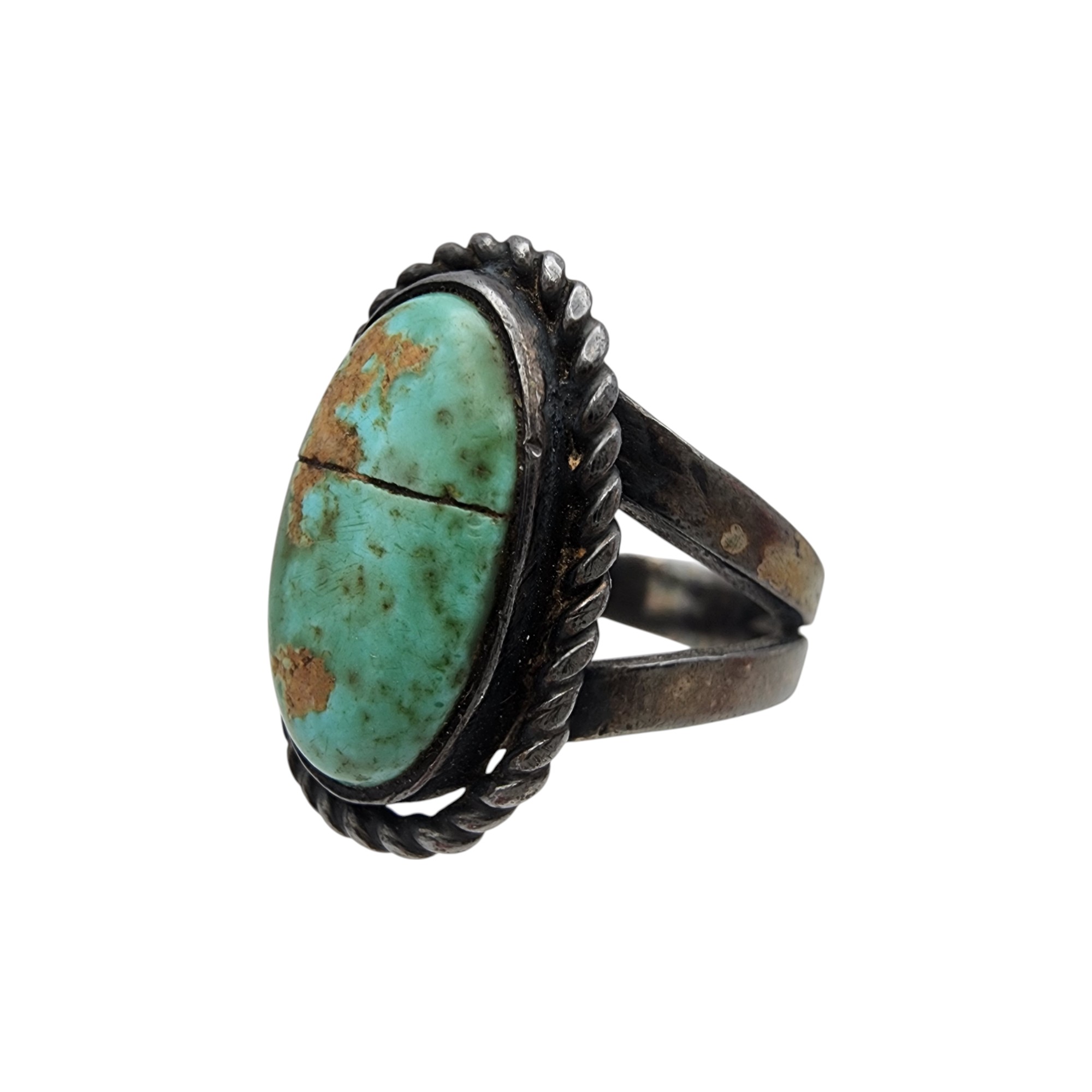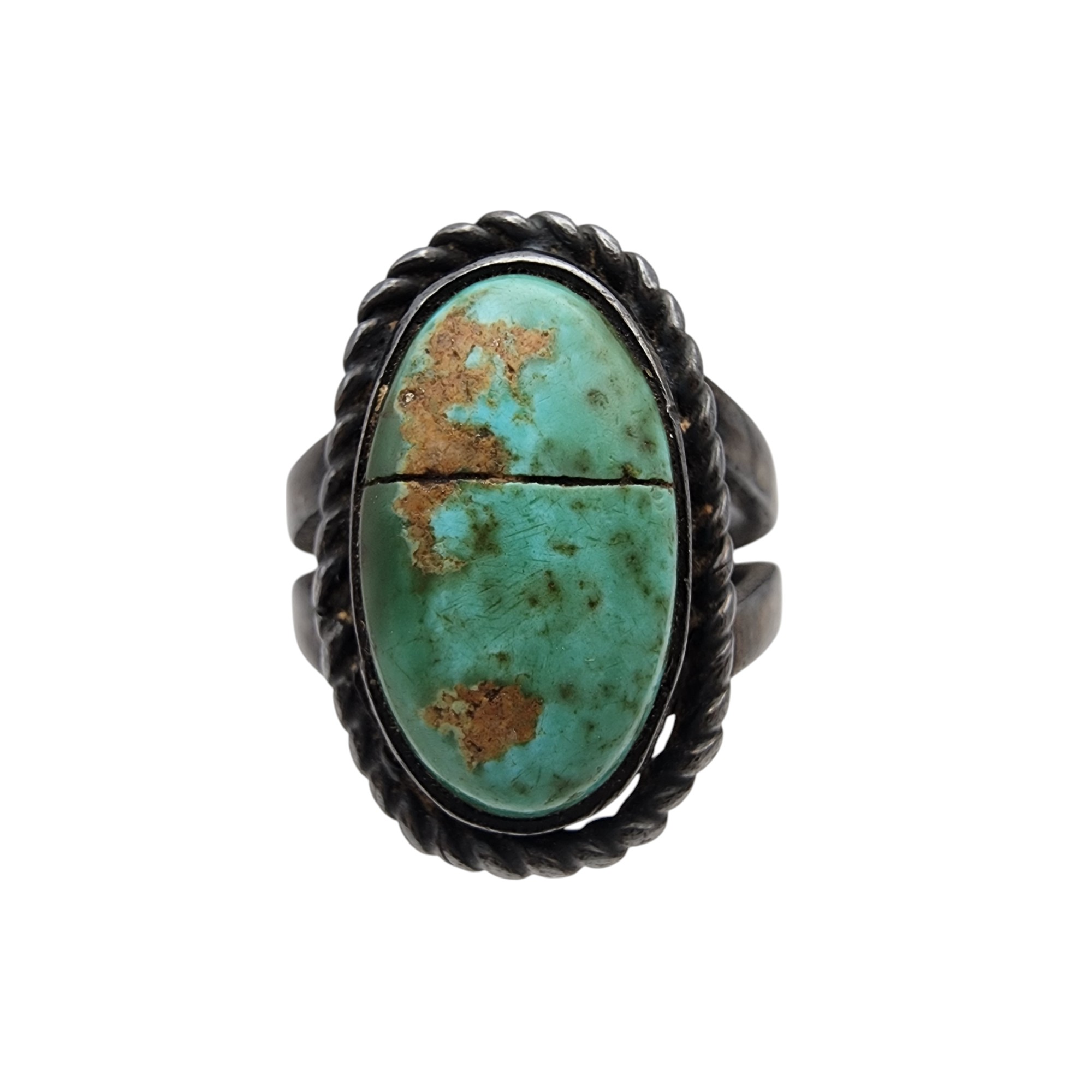 Vintage Navajo Sterling Turquoise Ring Sz 6.5, 5.9g, as is – fissure across stone, stone is intact
