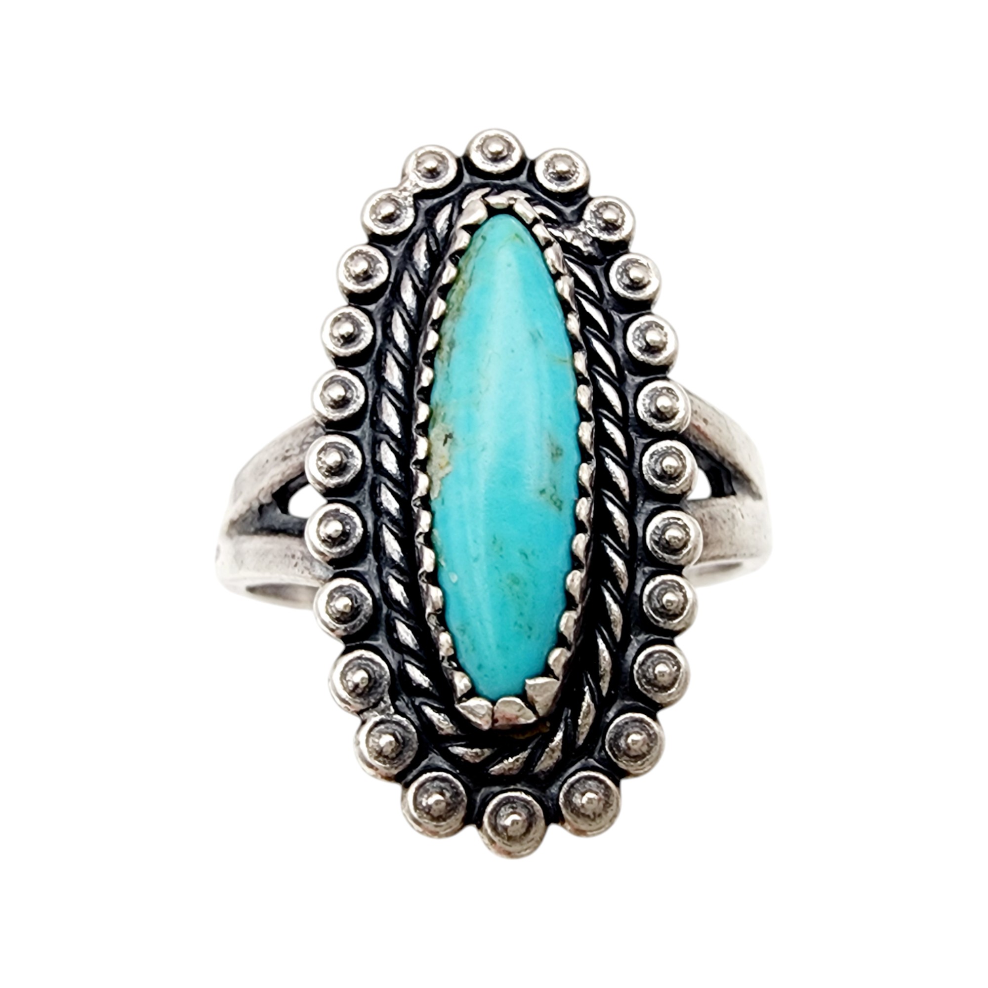 Bell Trading Post Sterling Turquoise Ring Sz 6.5, 3.9g