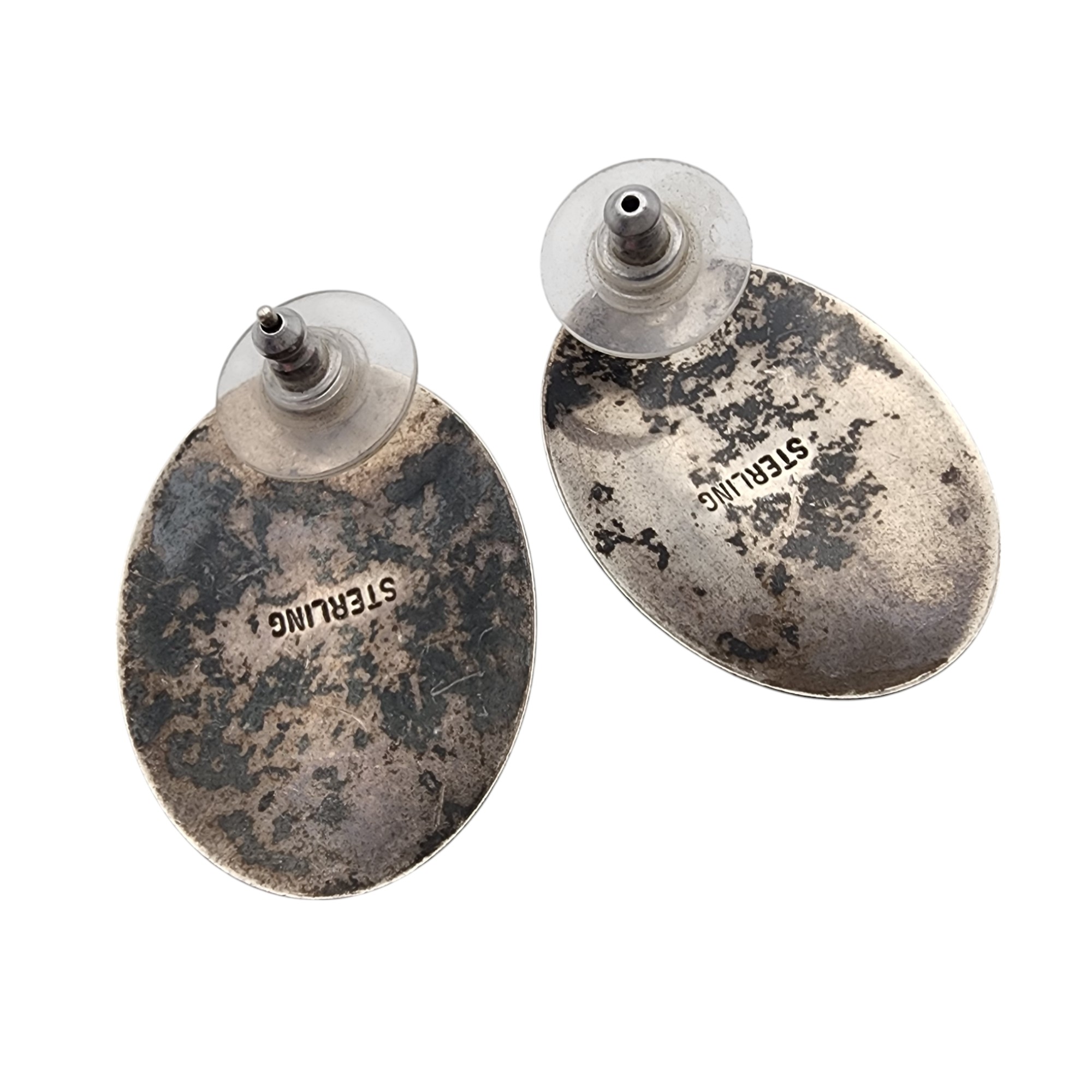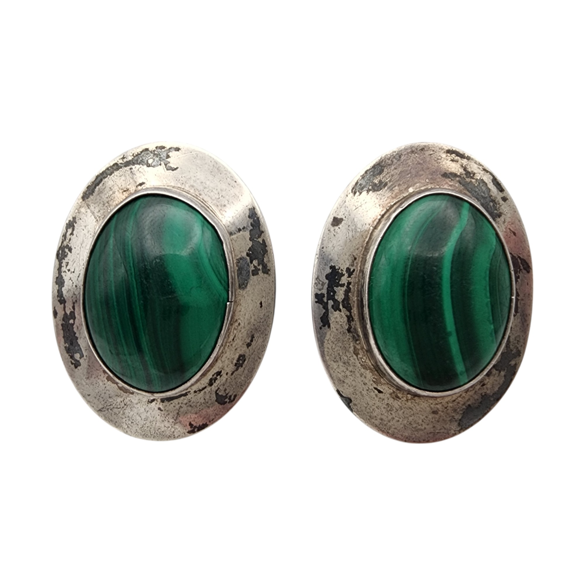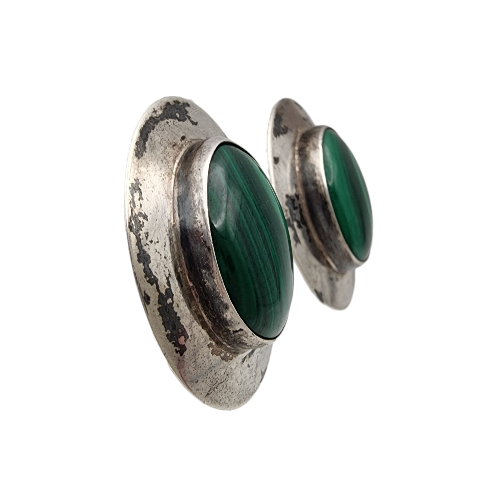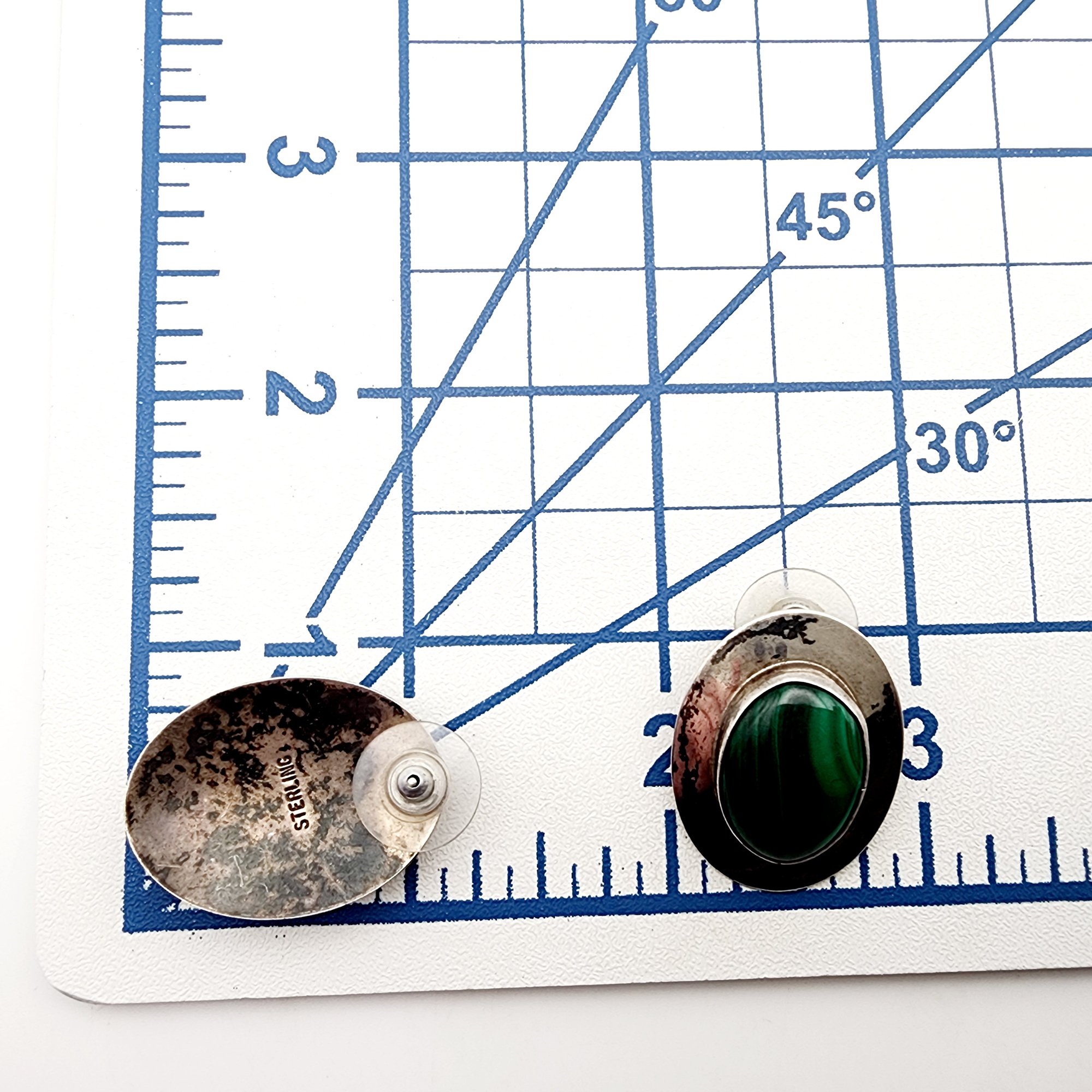 Navajo Sterling Malachite Concho Earrings, 9.6g
