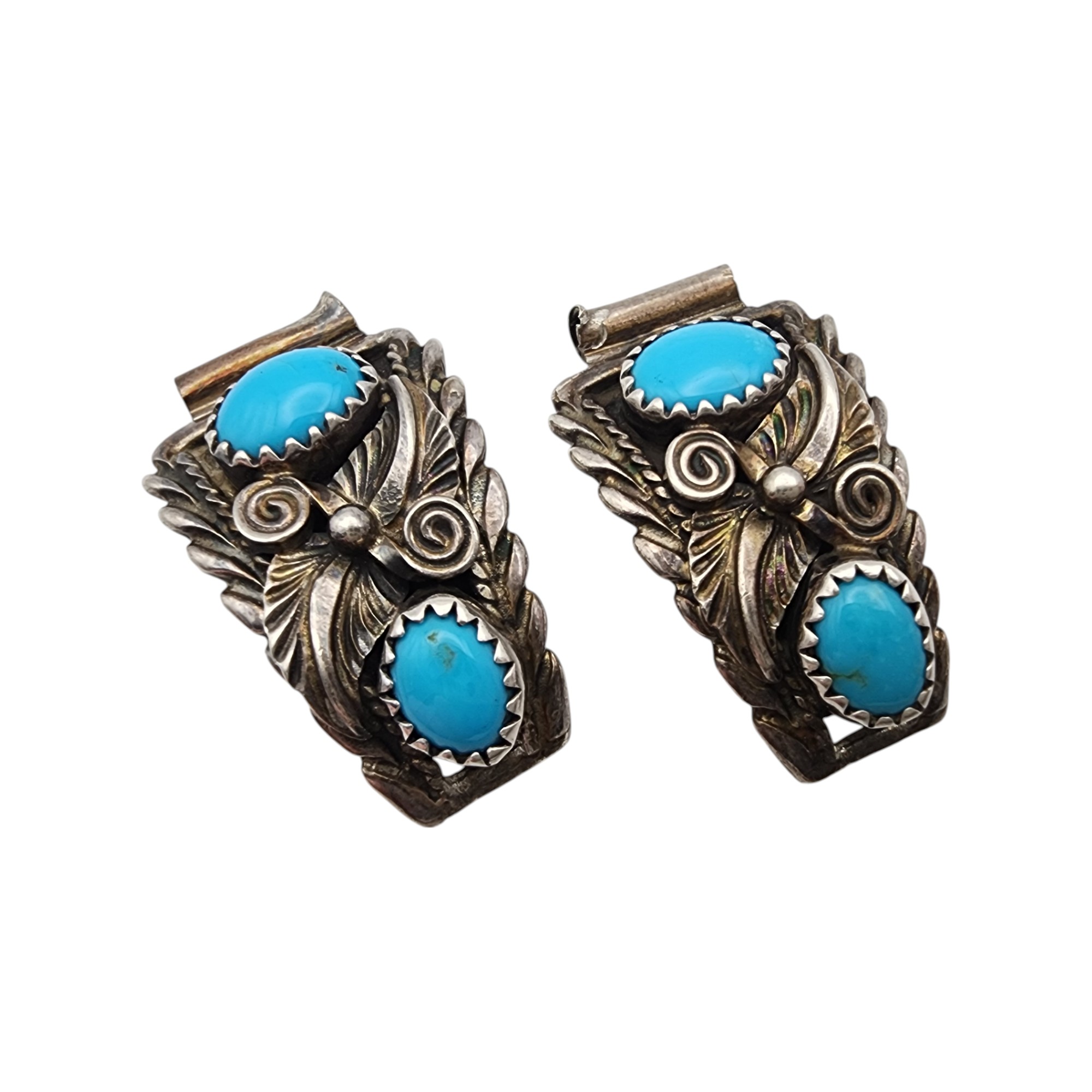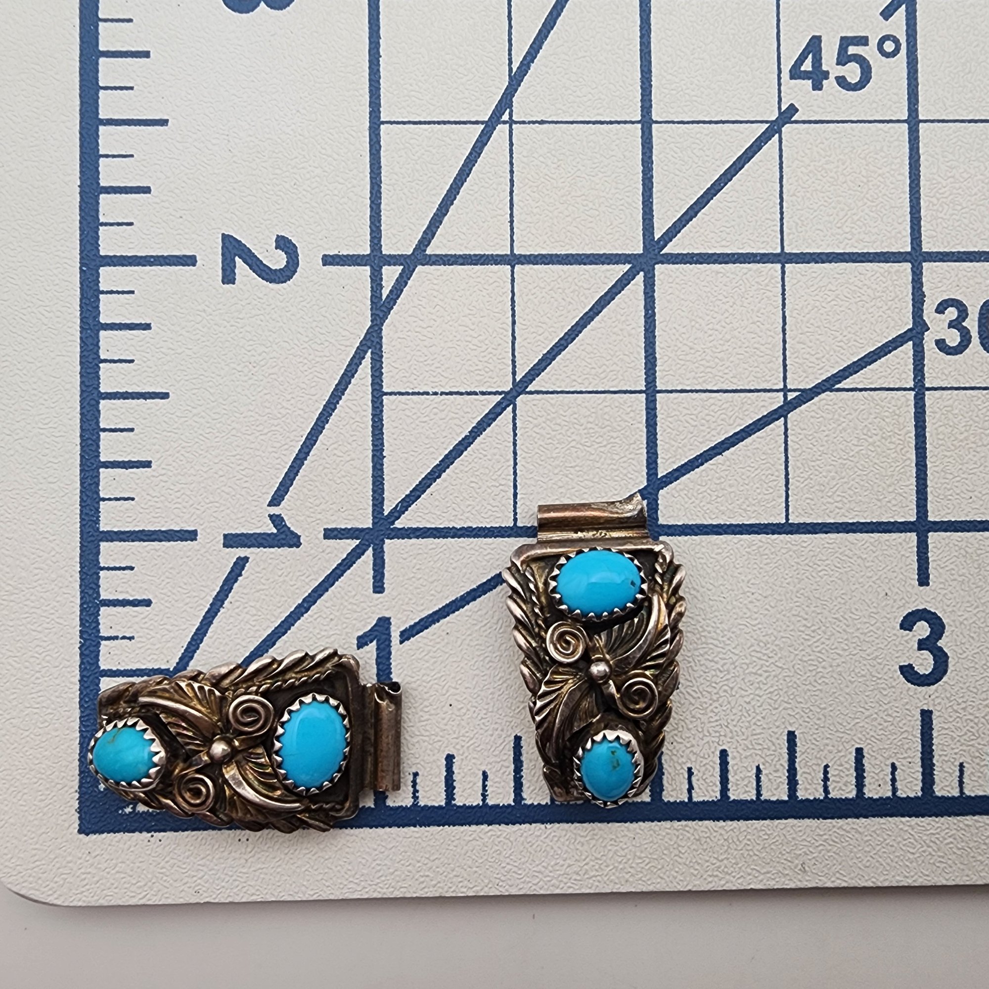 Navajo Sterling Turquoise Watch Tips, 8.9g