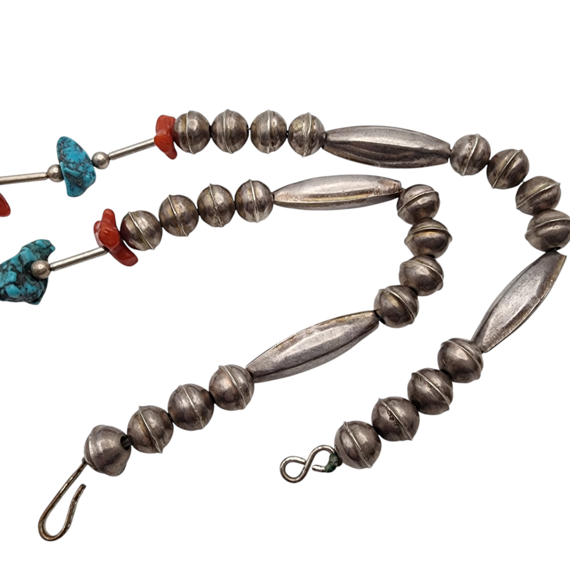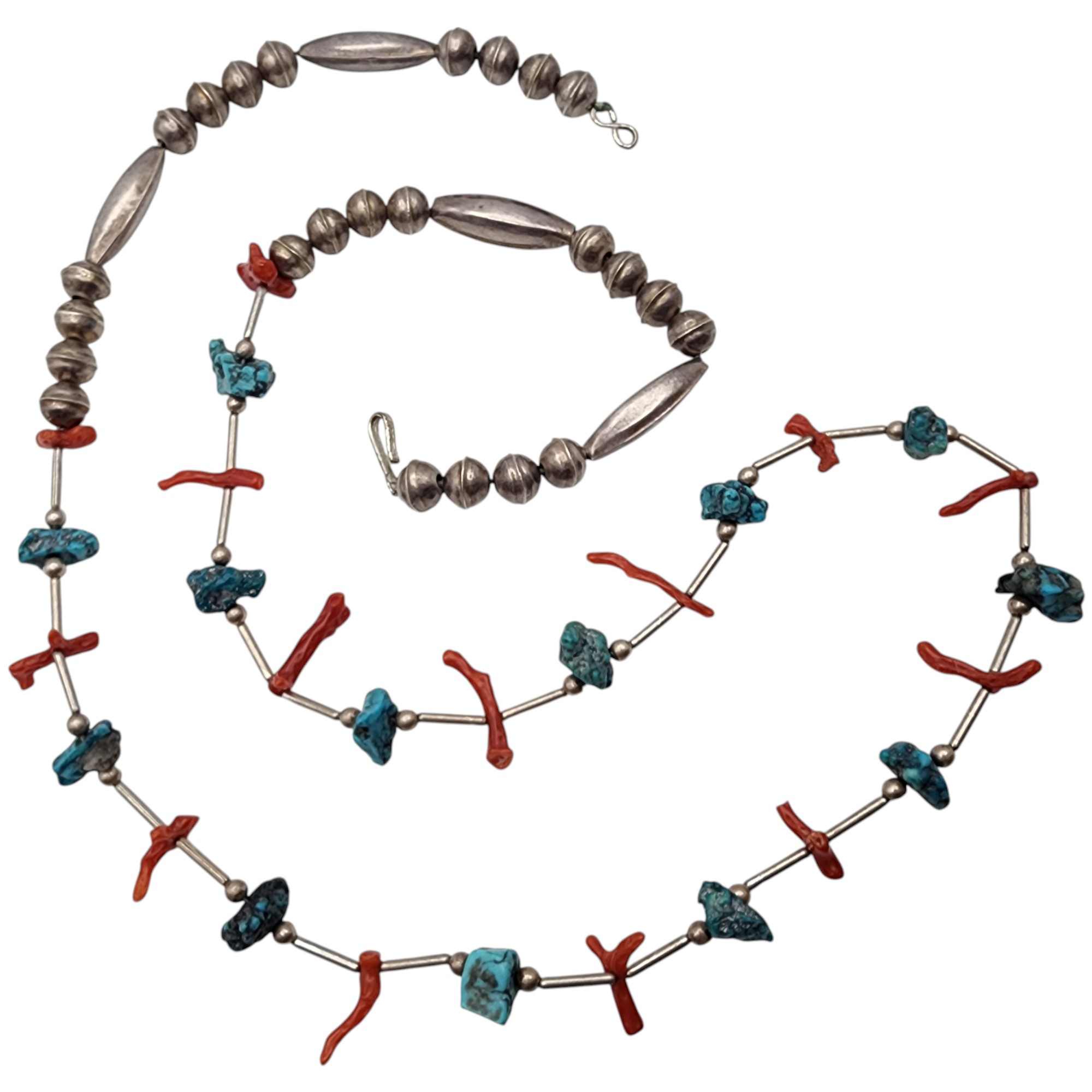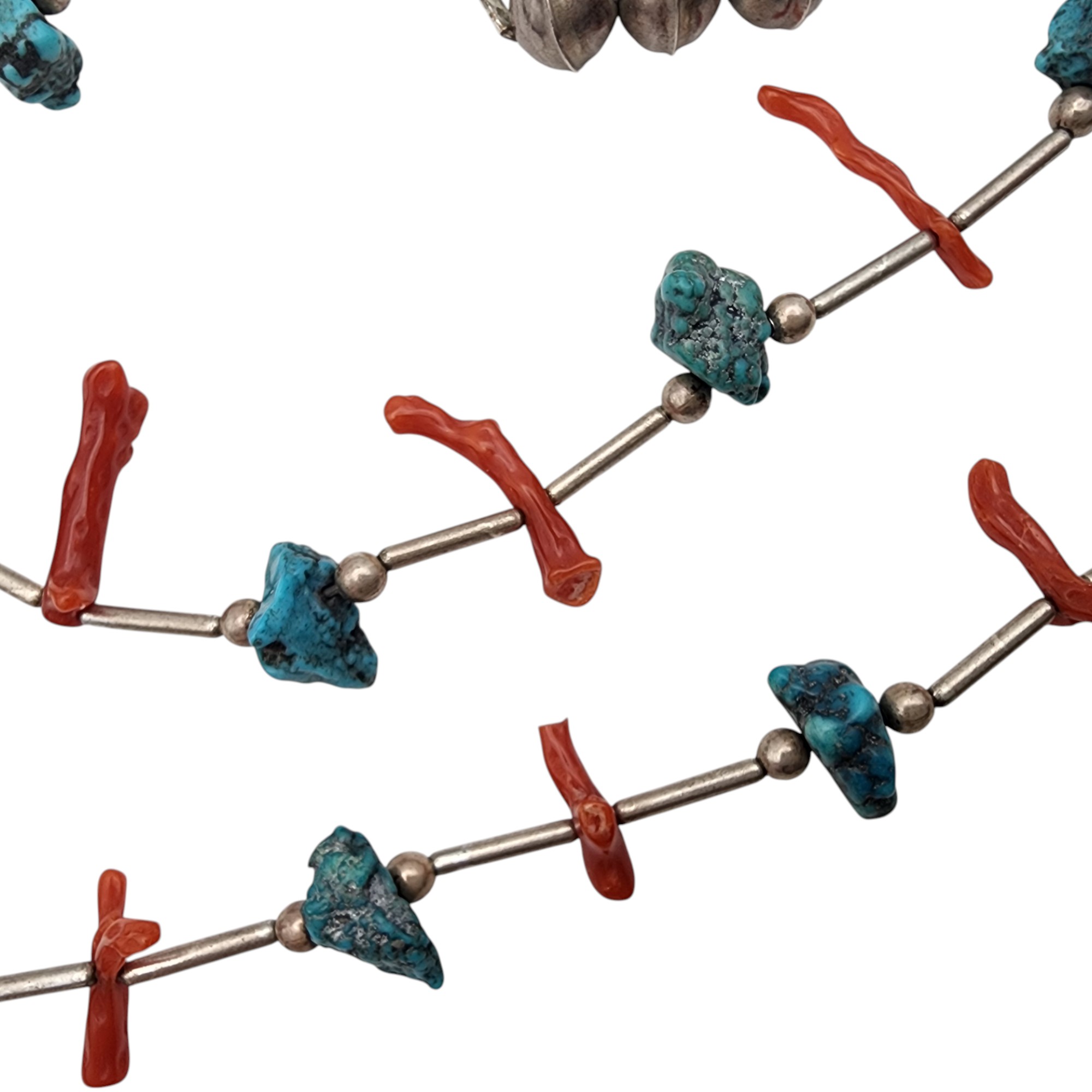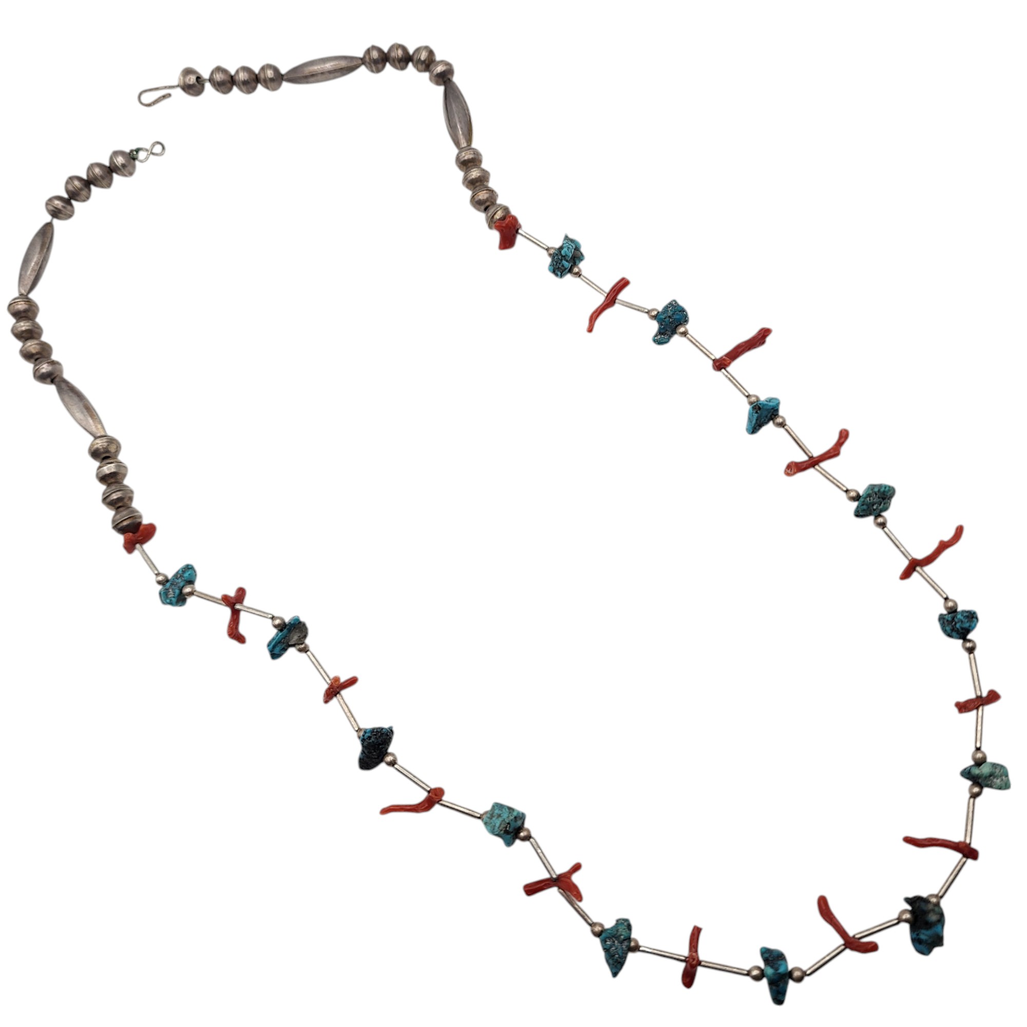 Vintage Navajo Sterling Turquoise & Branch Coral Bead Necklace, 24.2g