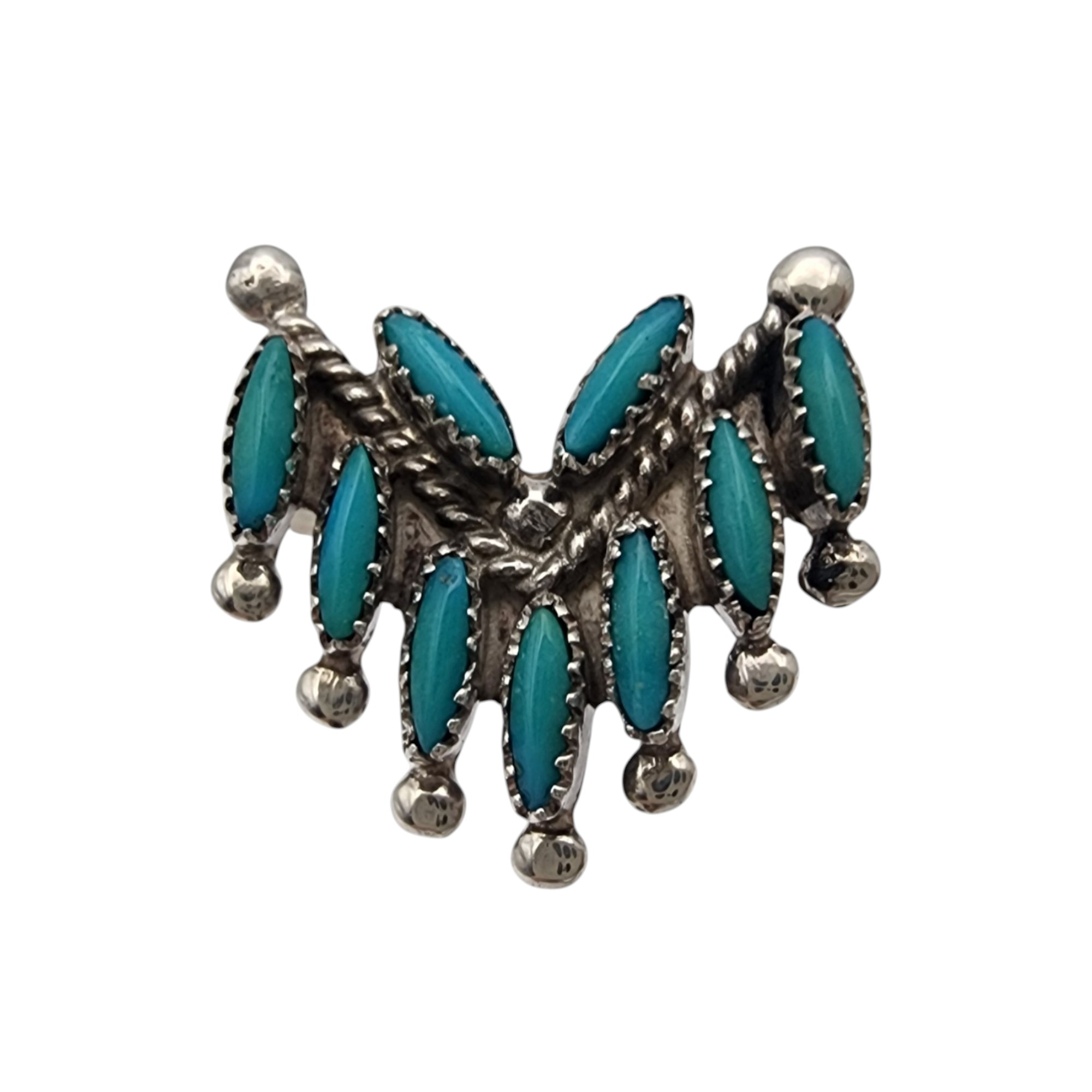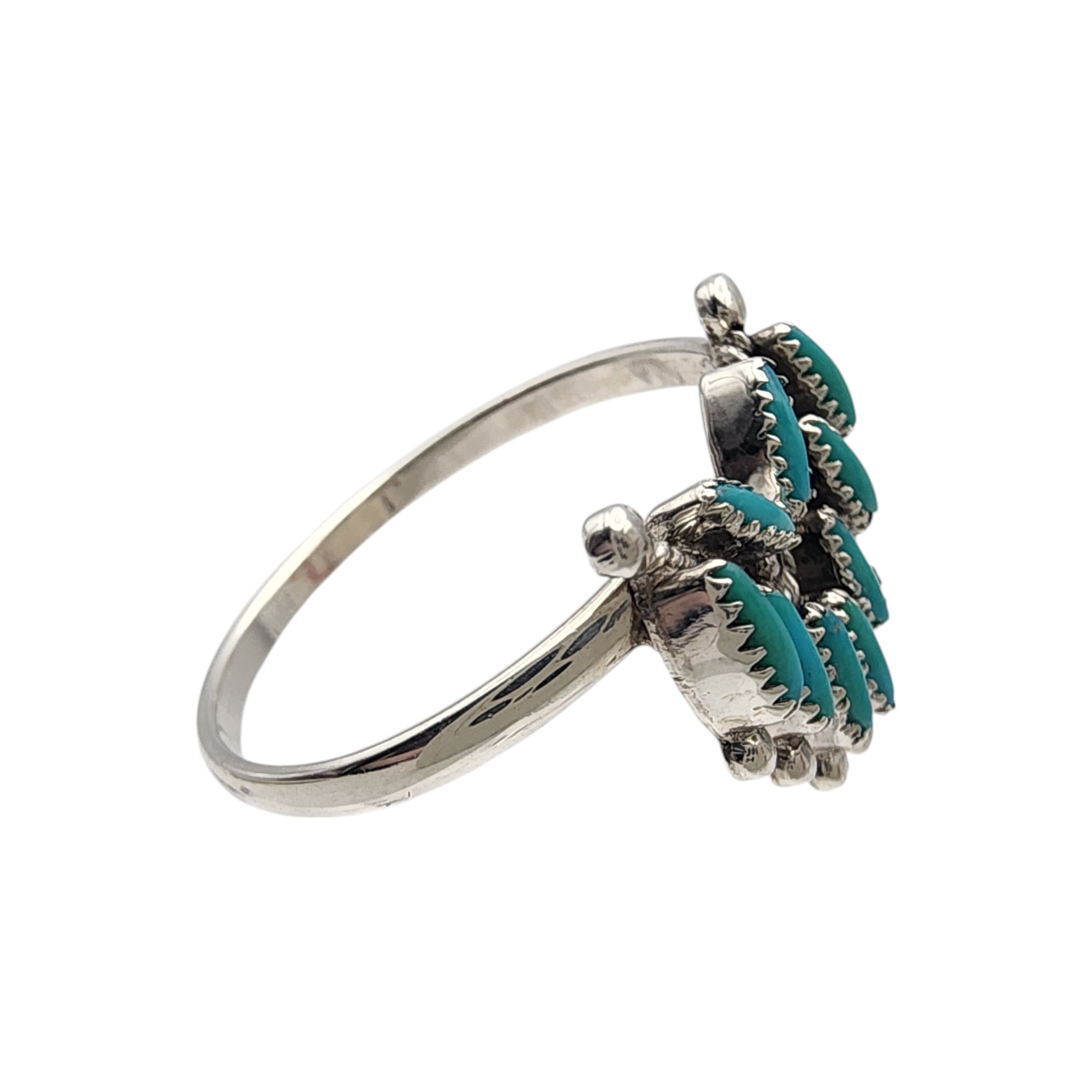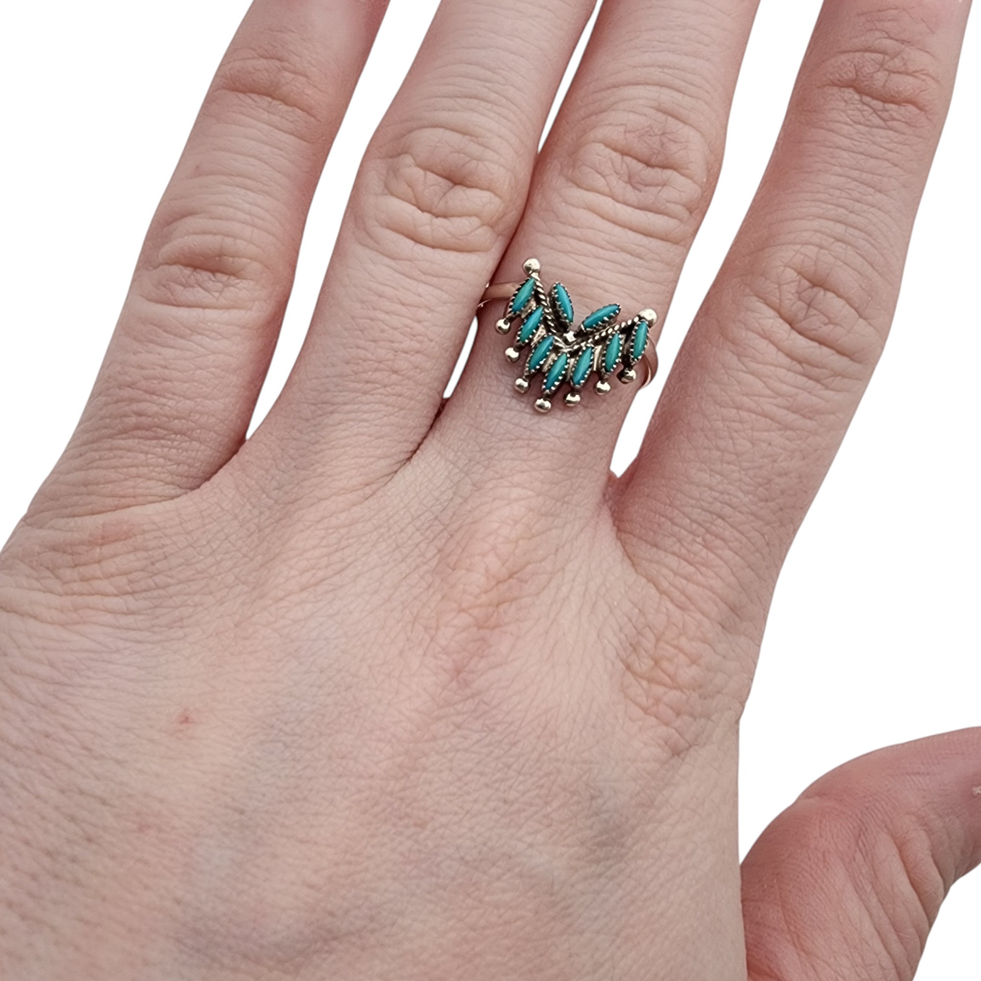 Sterling Turquoise Needlepoint Ring Sz 7.5, 1.7g