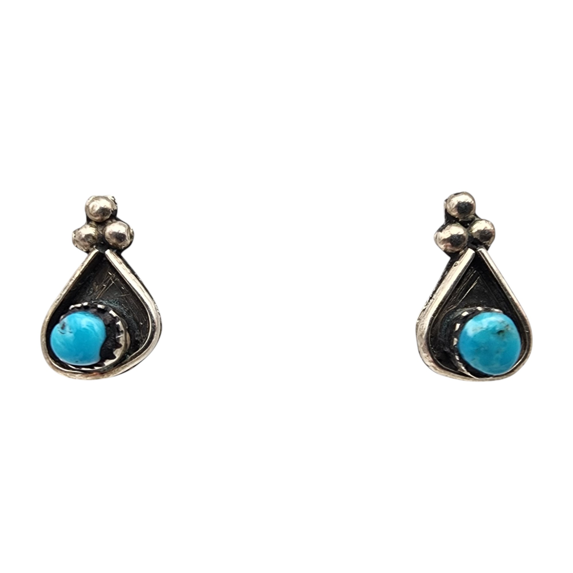 Vintage Zuni Sterling Turquoise Earrings, 1.1g