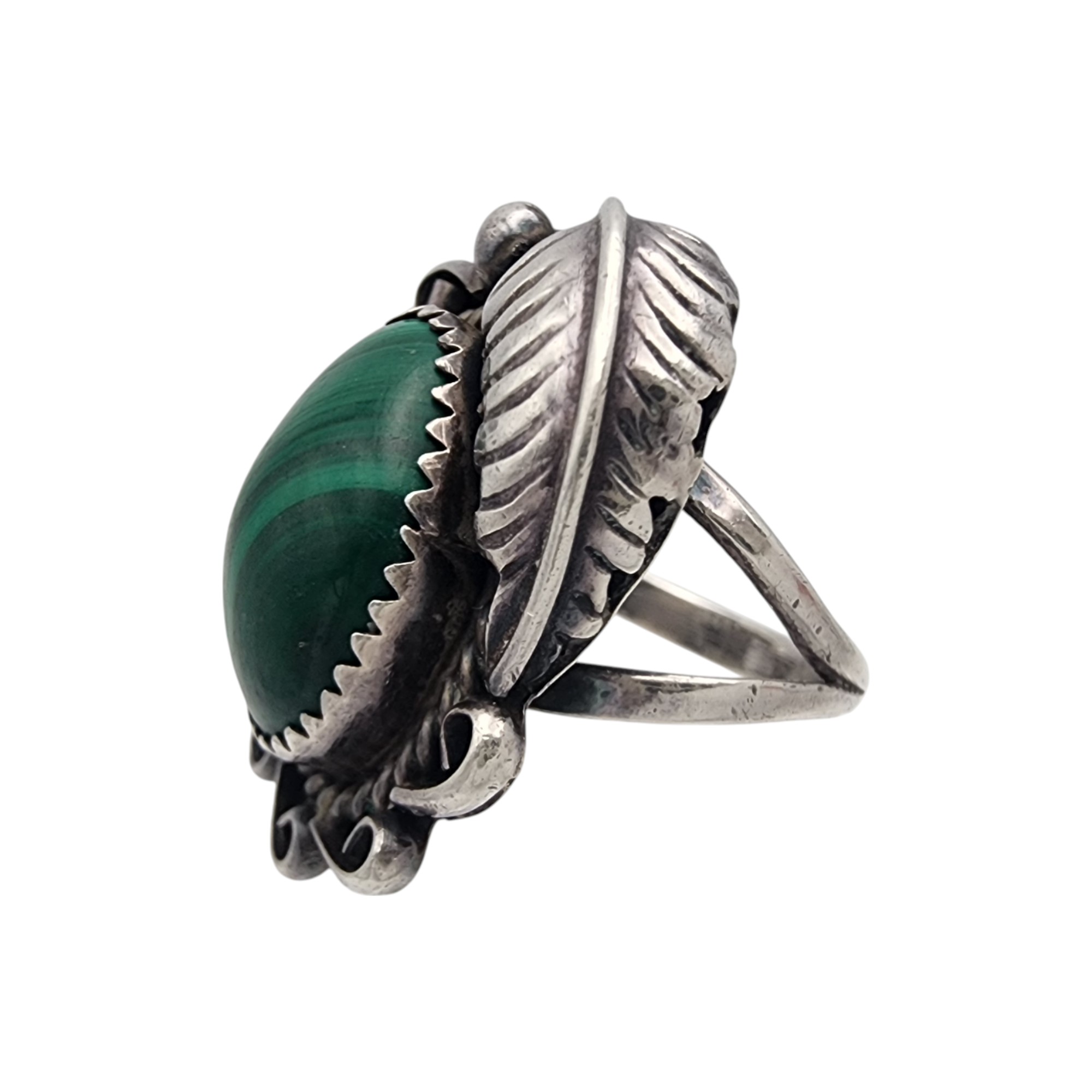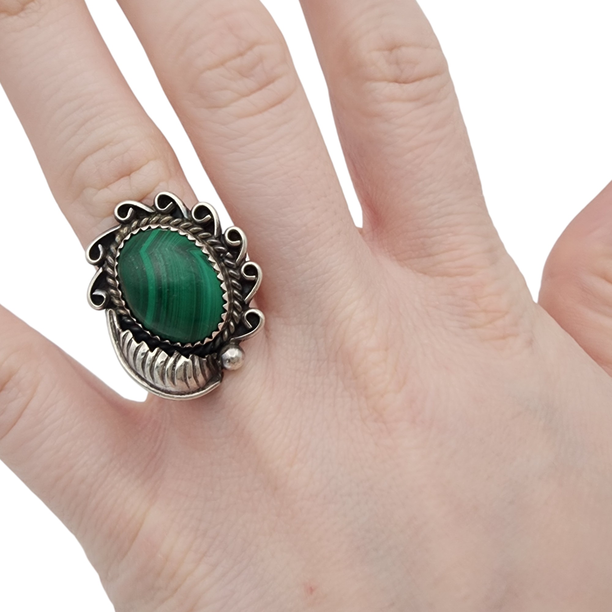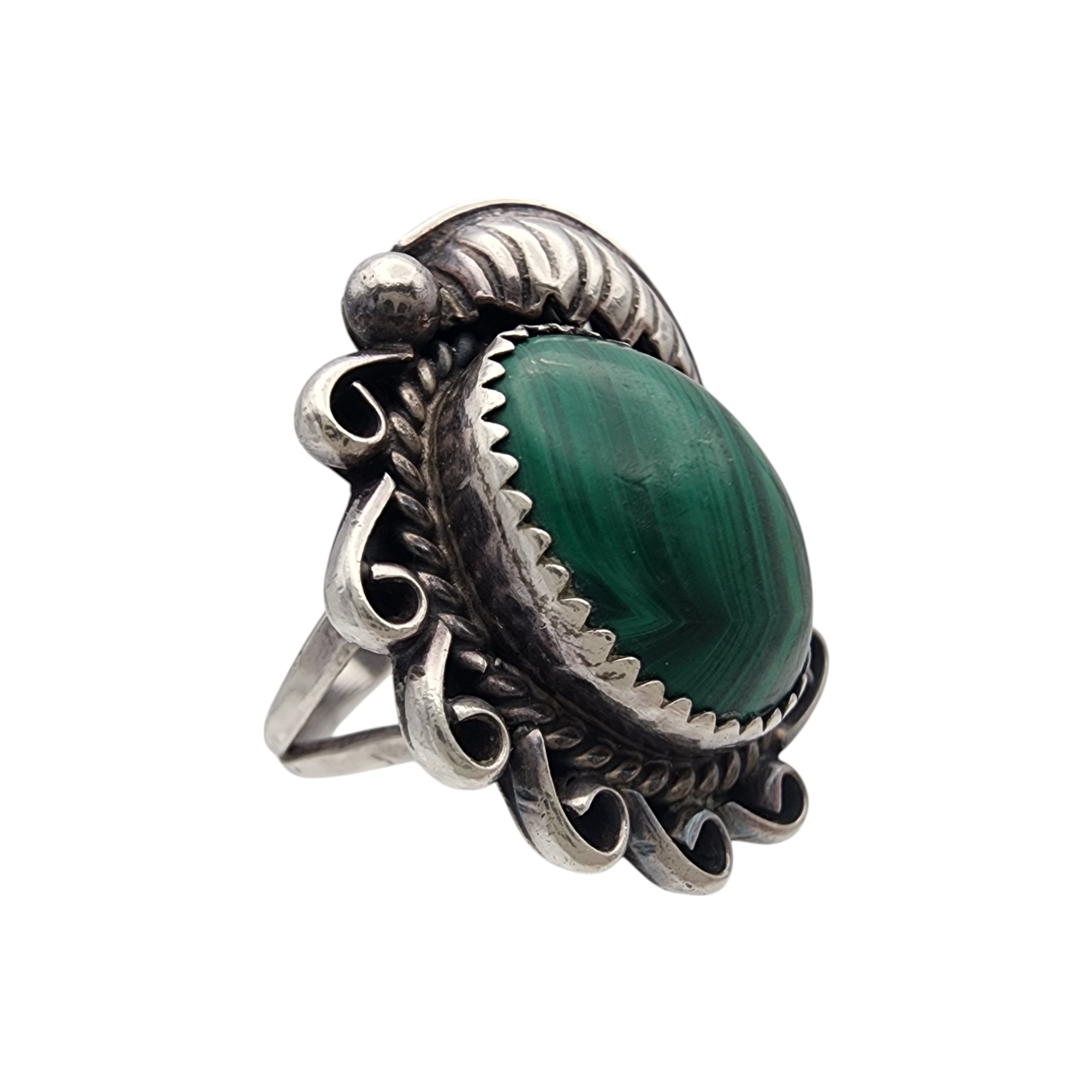 Frank Yazzie Navajo Sterling Malachite Ring Sz 5.25, 8.2g