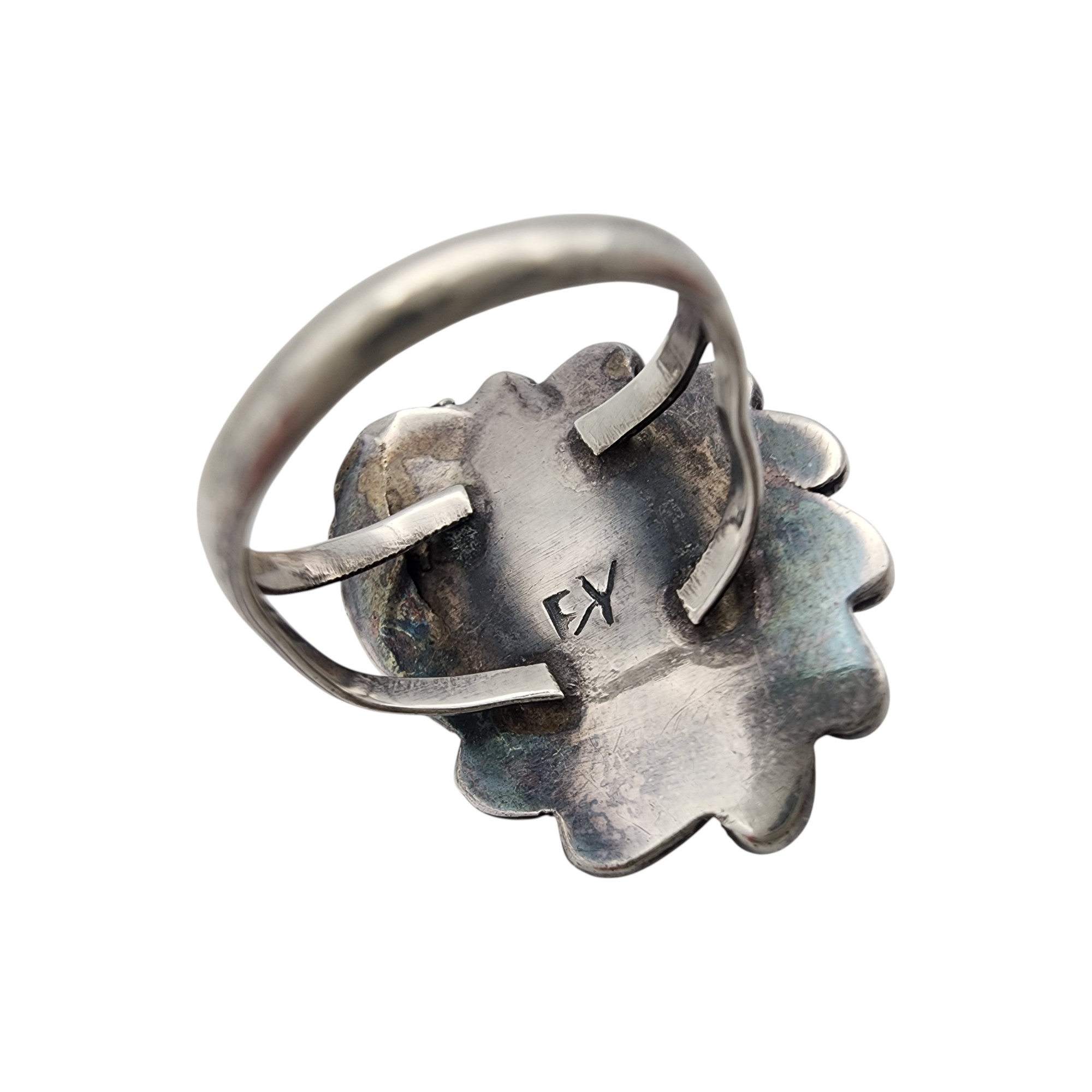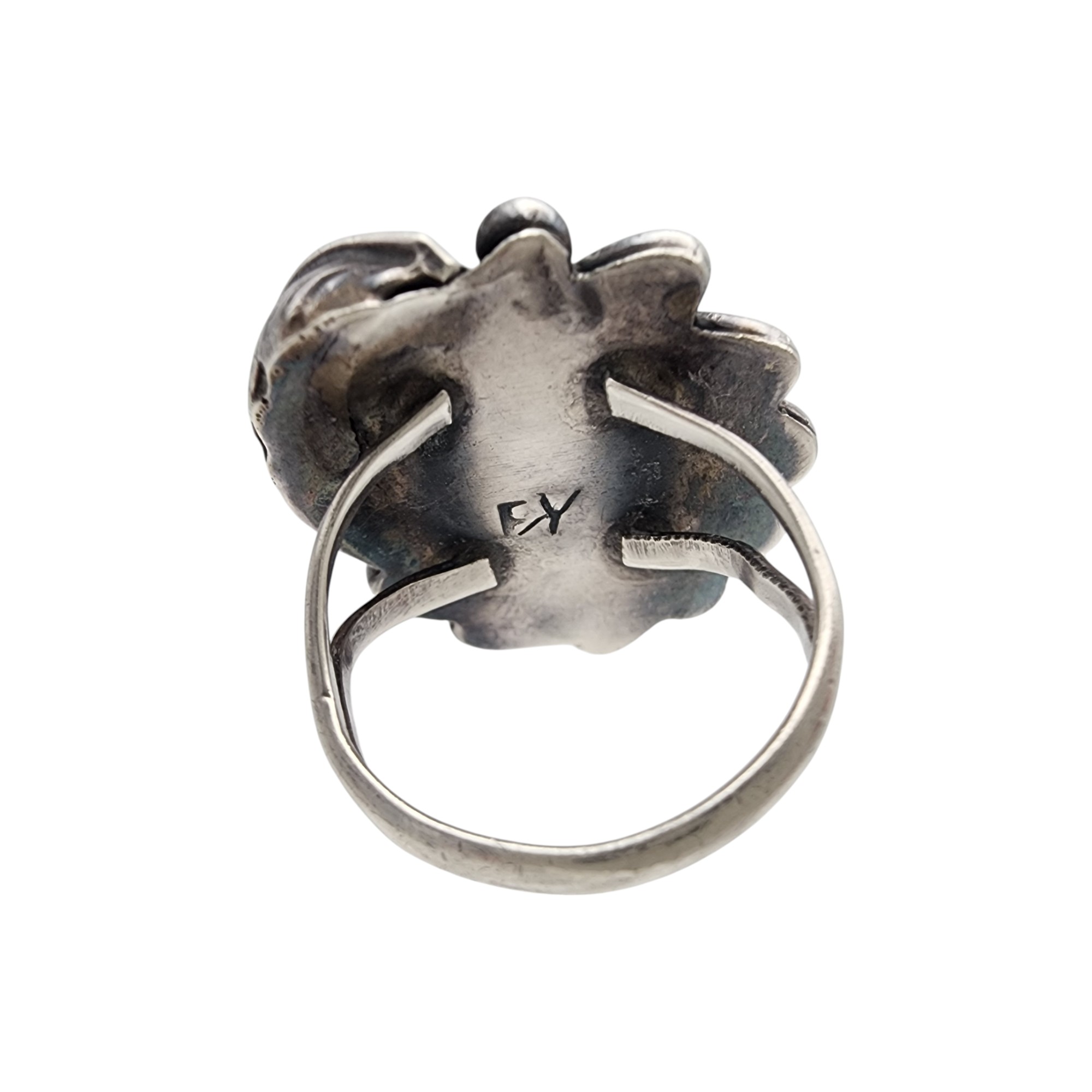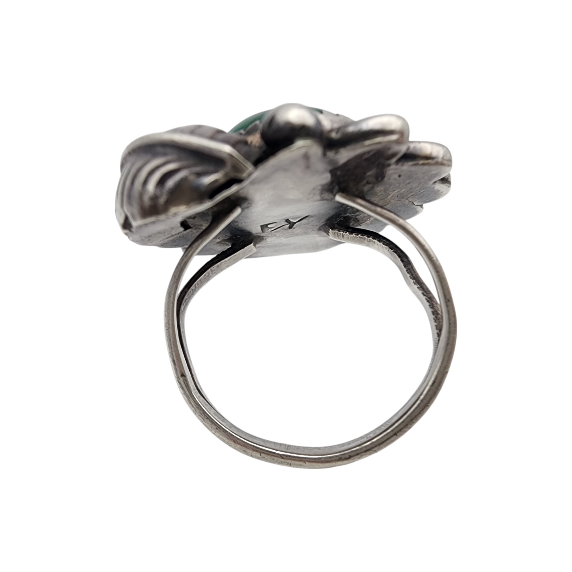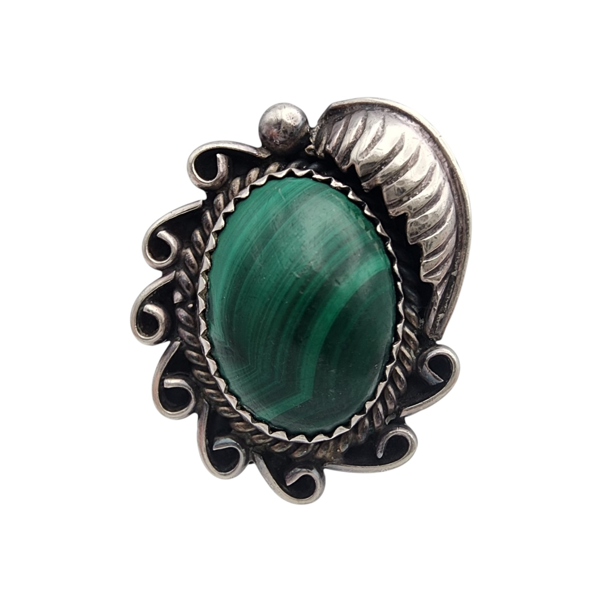Frank Yazzie Navajo Sterling Malachite Ring Sz 5.25, 8.2g