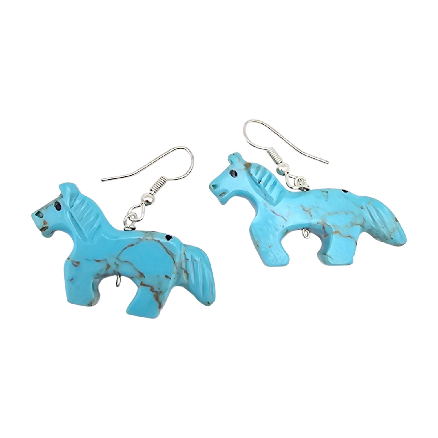 Ben Livingston Navajo Sterling Turquoise Stone Fetish Earrings
