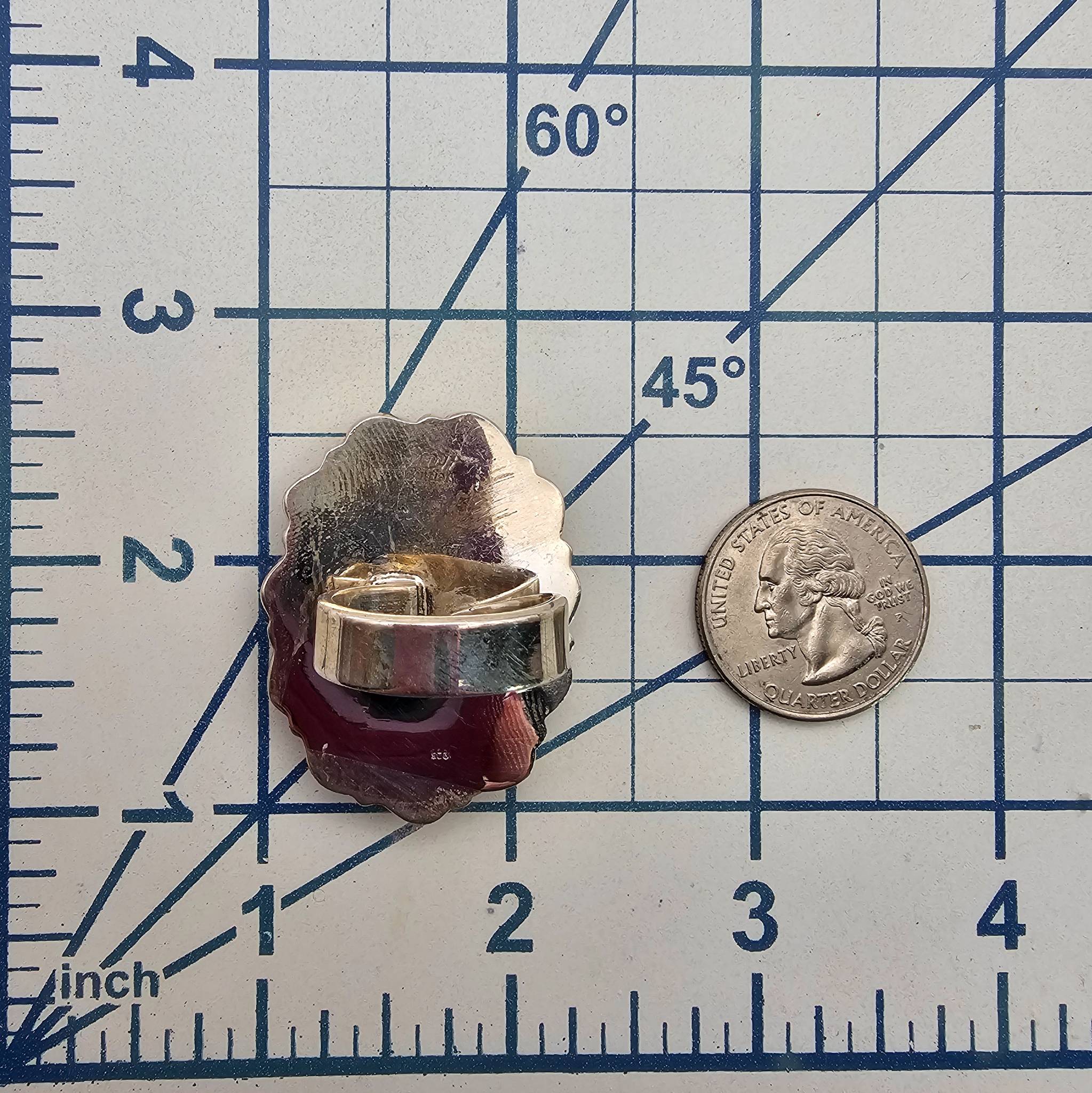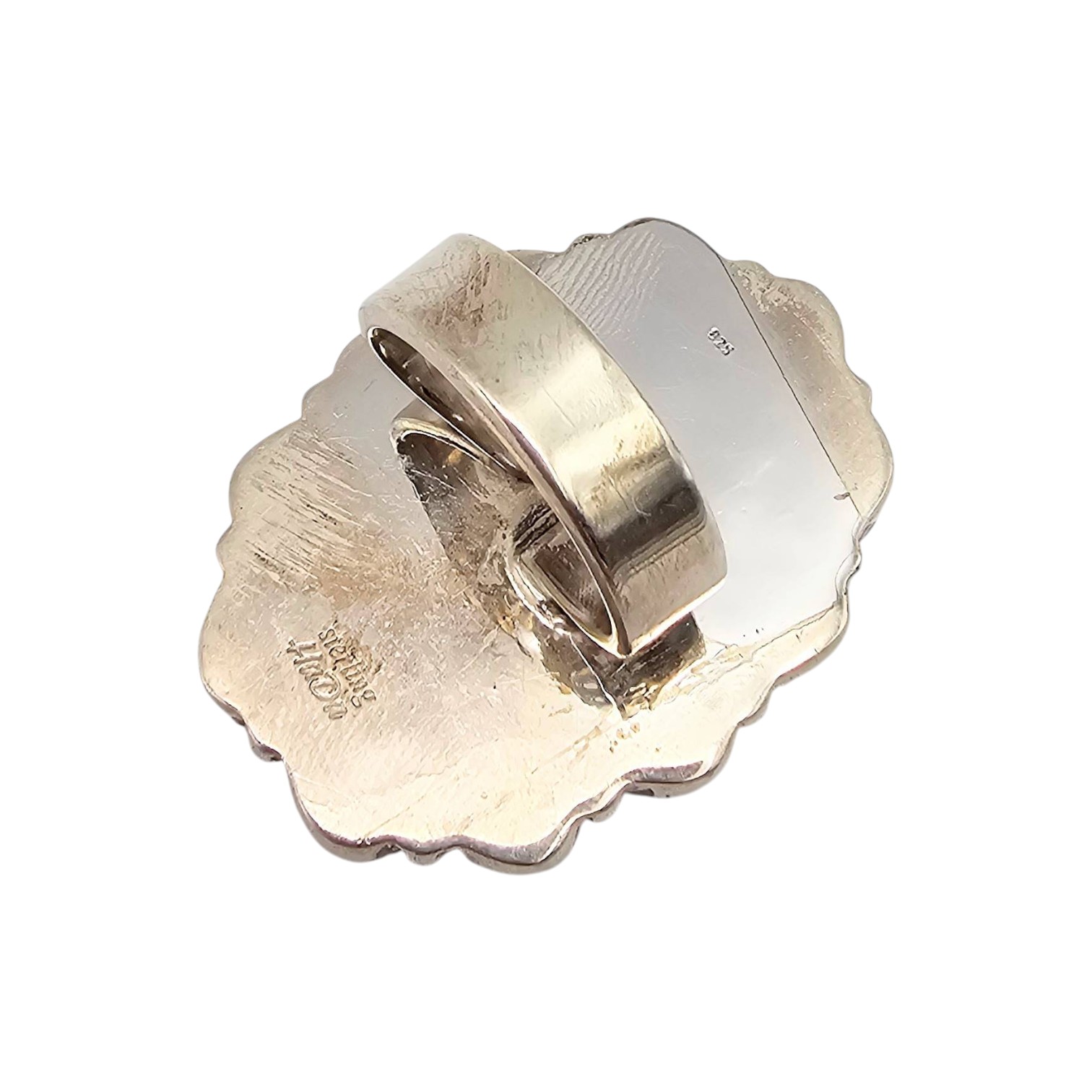 Sterling silver adjustable ring from the Hada Collection featuring multiple stones, including a central turquoise stone surrounded by smaller pink-toned stones. The ring is stamped on the back and weighs approximately 23.3 grams. The size is adjustable to fit various finger sizes.
