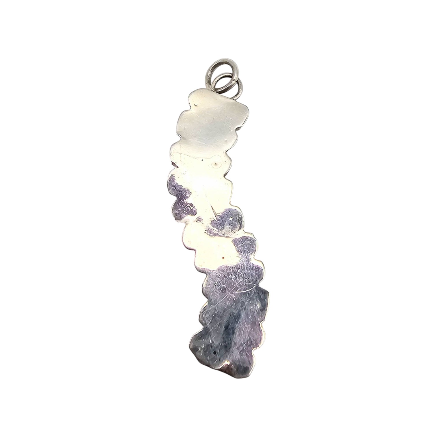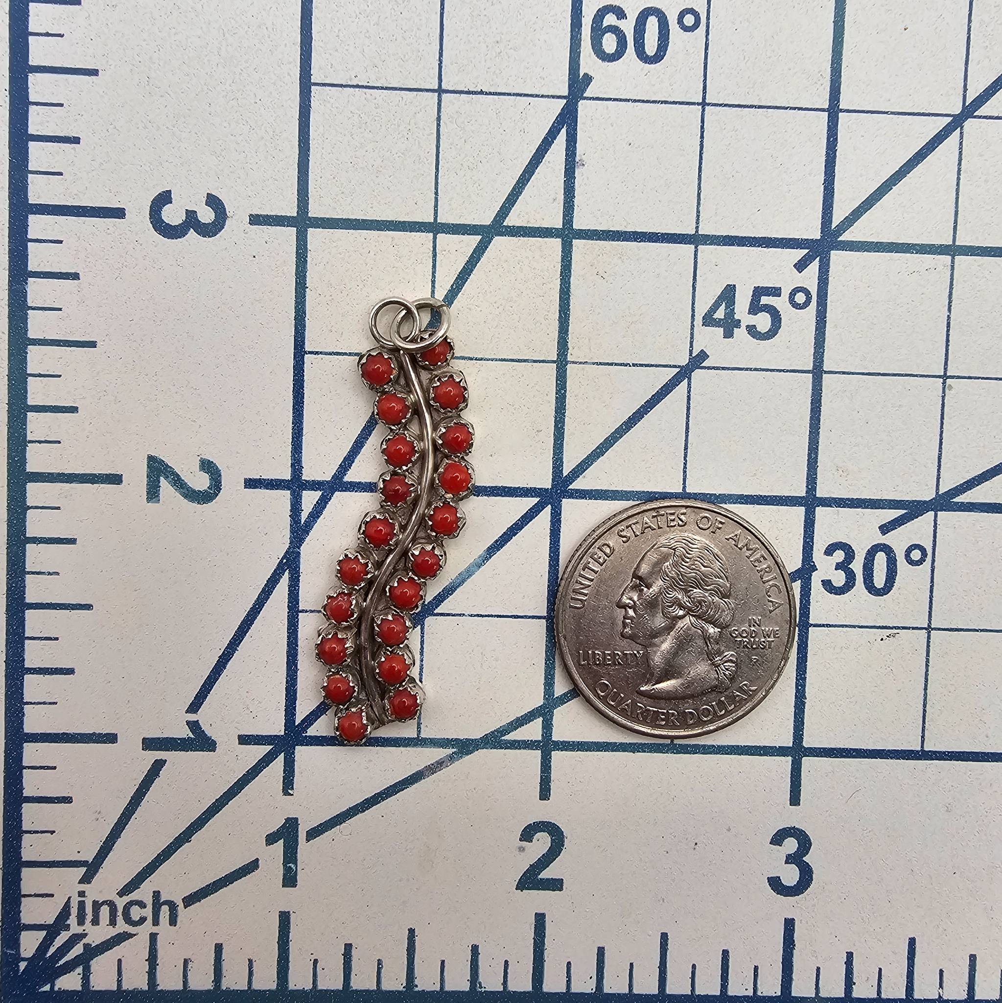 Sterling silver handmade pendant featuring a cluster design with red coral stones. The pendant weighs 2.7 grams and measures approximately 2 inches in length. The back showcases a polished silver finish. A versatile and elegant piece suitable for various accessories.