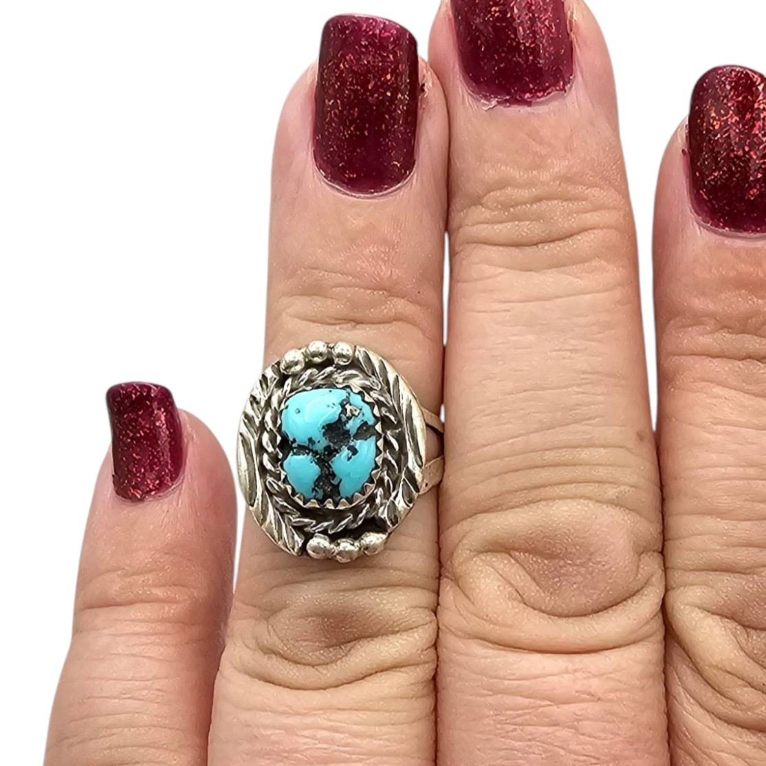 Freda Martinez Navajo Sterling Kingman Turquoise Ring, Sz. 5.5
