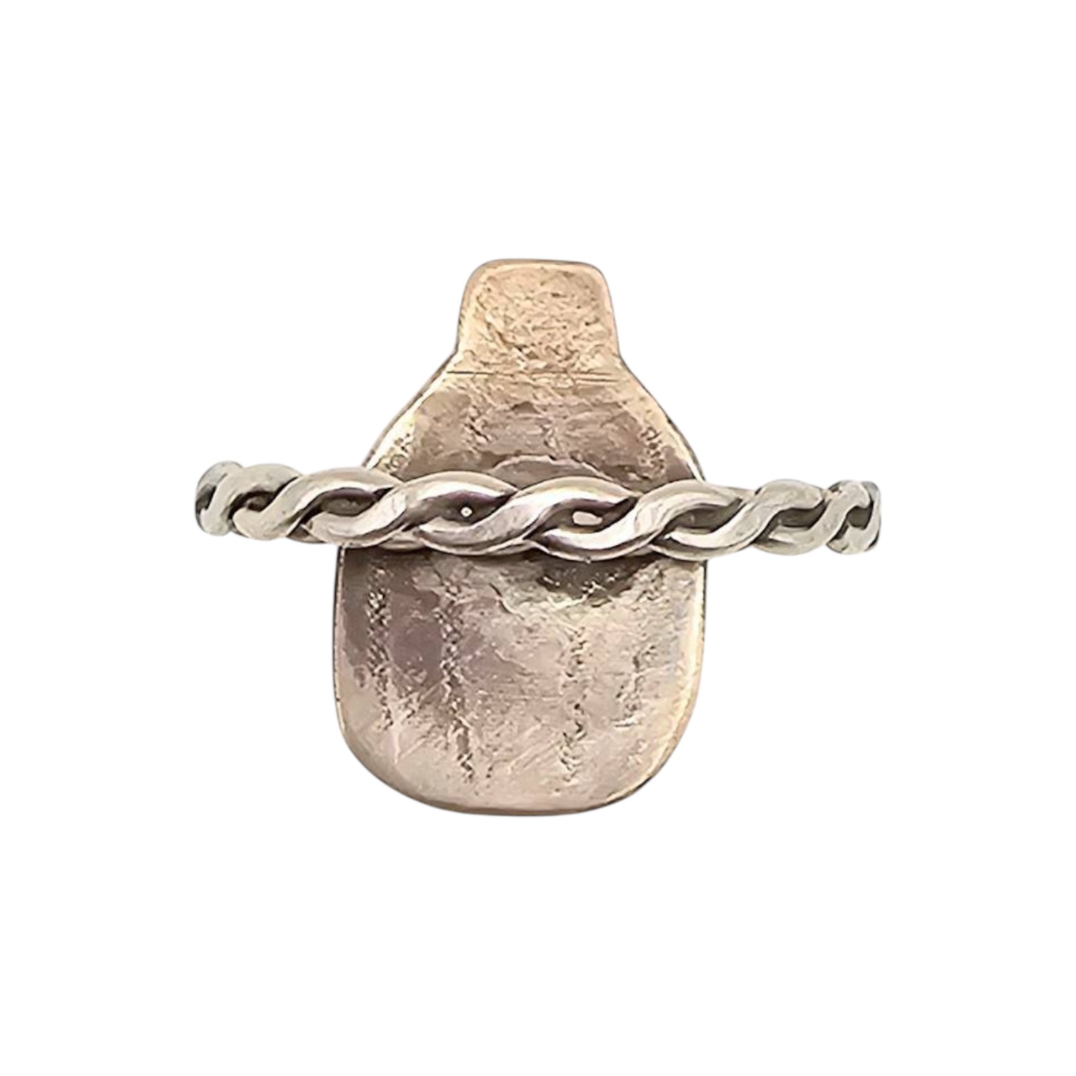 Handmade by Navajo artisan Philips Tsosie, this sterling silver ring features a turquoise gemstone set within a unique design. The band has a twisted rope style, and the ring is crafted in size 9. Weighing approximately 1.9 grams, this piece showcases traditional Navajo artistry and craftsmanship.