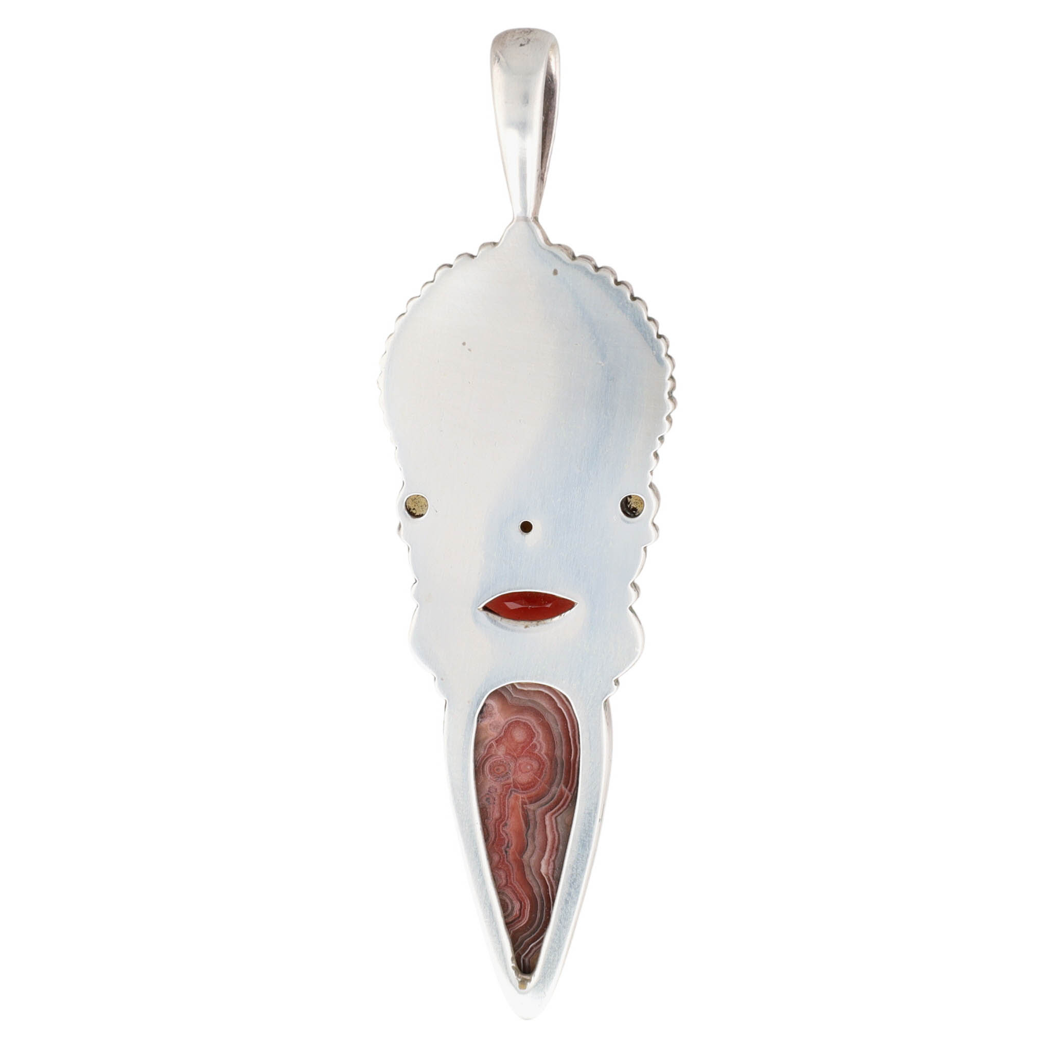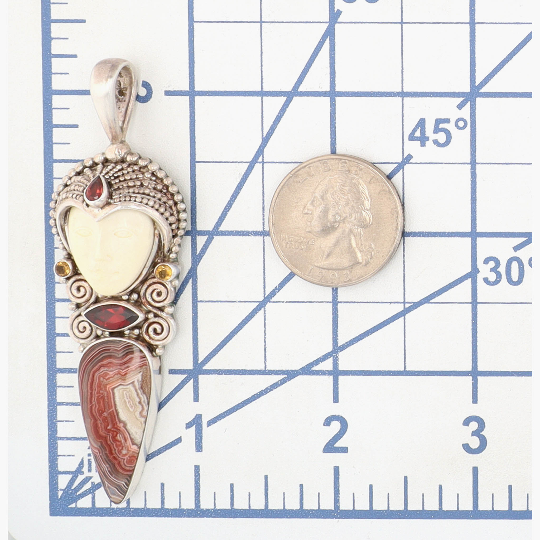 Sajen Sterling Crazy Lace Agate, Garnet, & Citrine Goddess Pendant | 22.2g