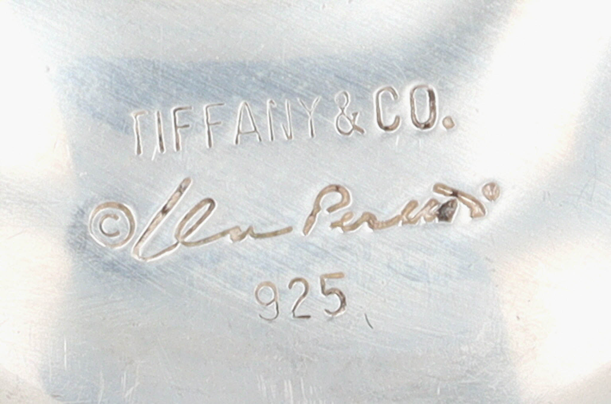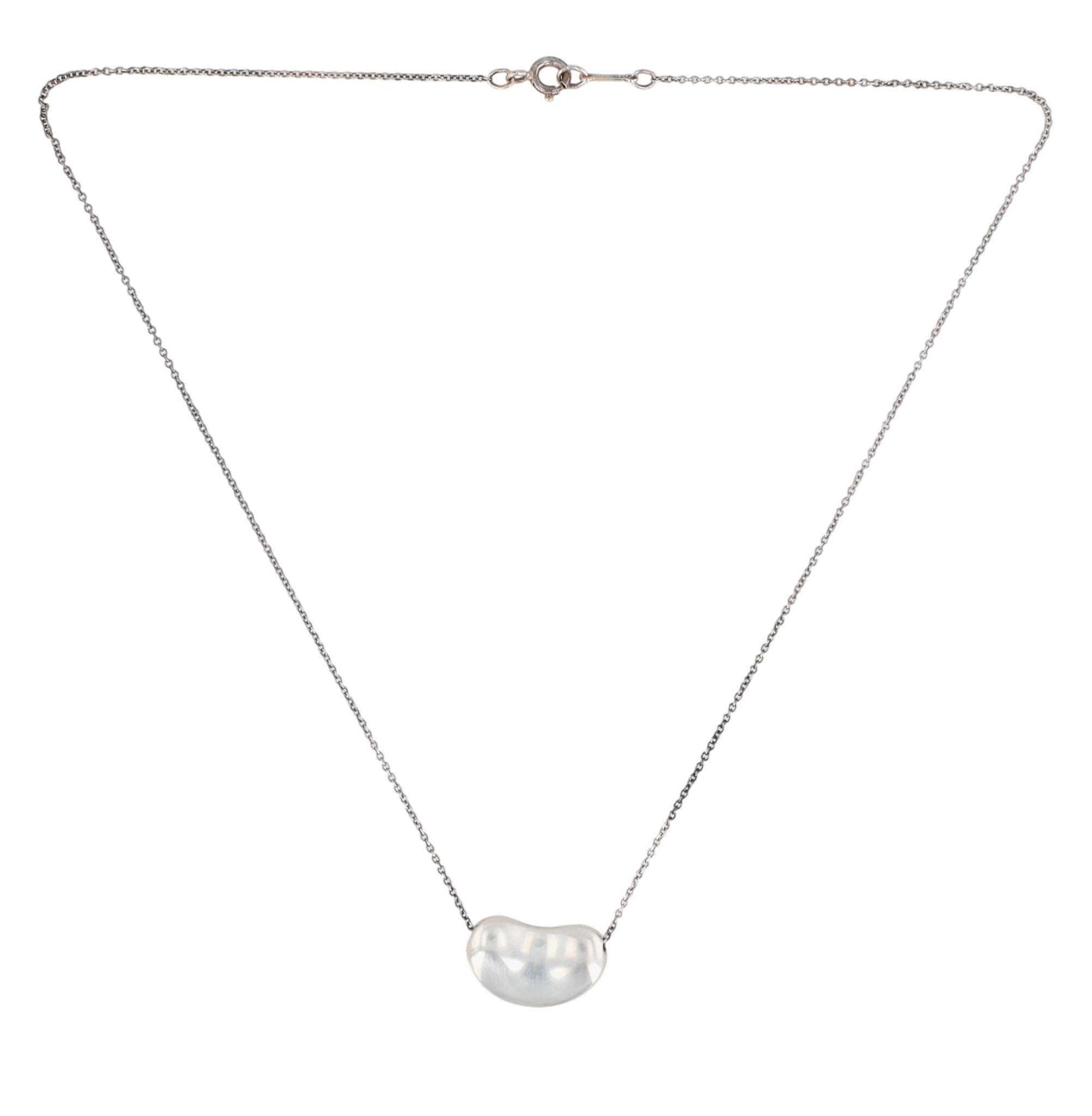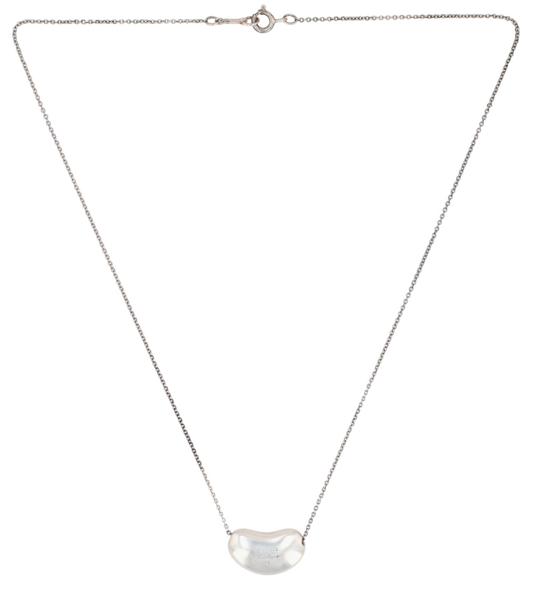 Tiffany & Co. Elsa Peretti Sterling Bean Necklace | Bean approx 18.9mm x 11.6mm | Chain length approx 16″ | 8g | Retail $575 | Comes with a Tiffany Cloth Pouch as shown