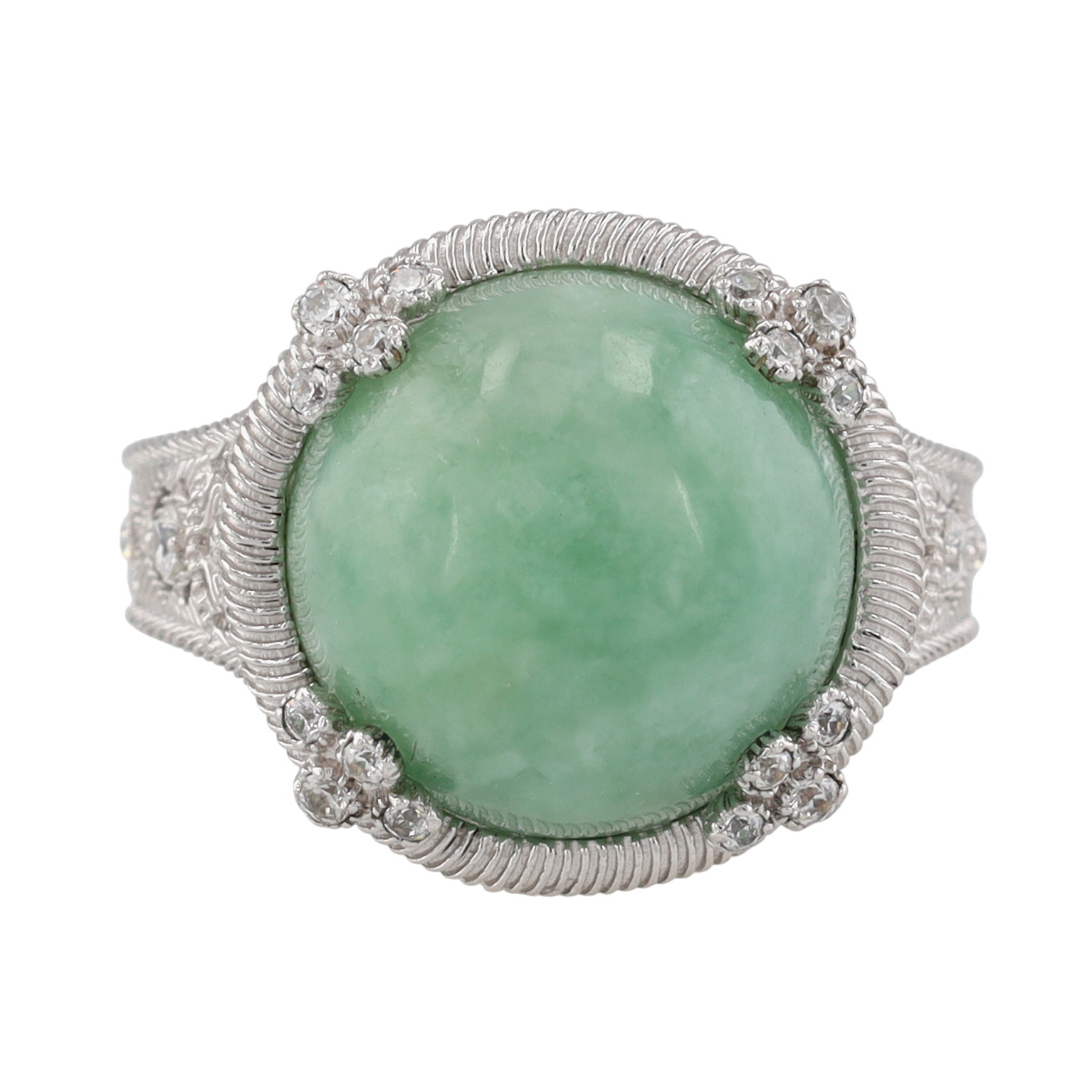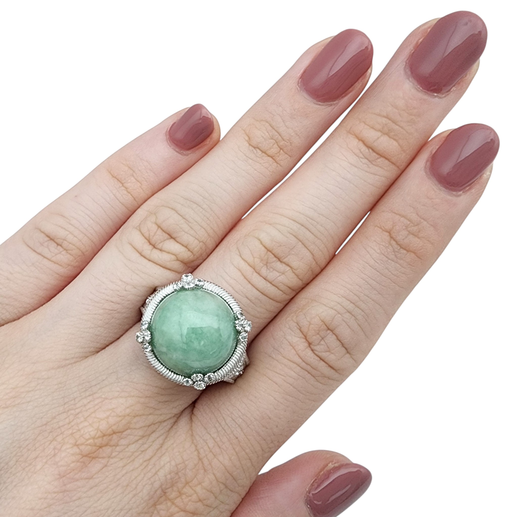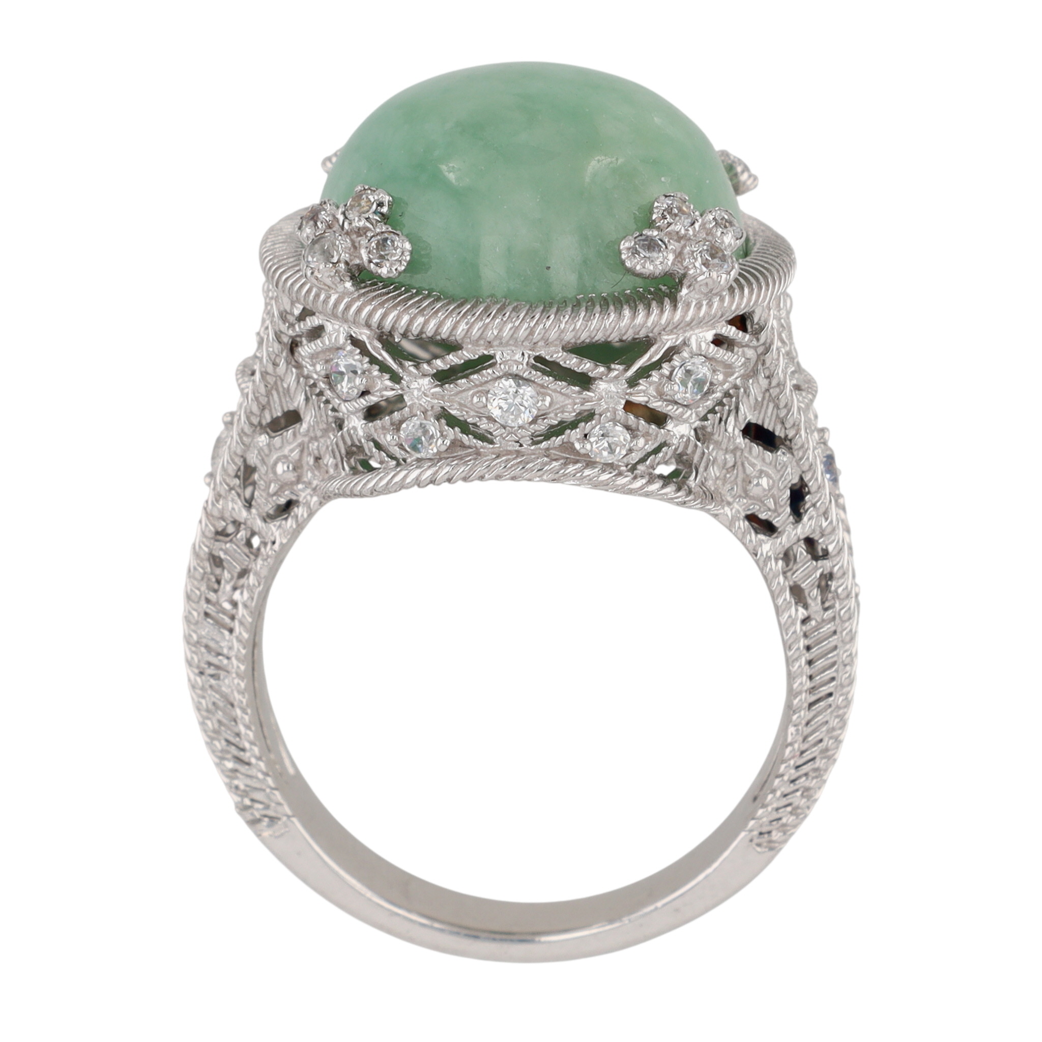 Beautiful!! Judith Ripka Sterling Jade and Cubic Zirconia Ring Sz 8 | 10.1g