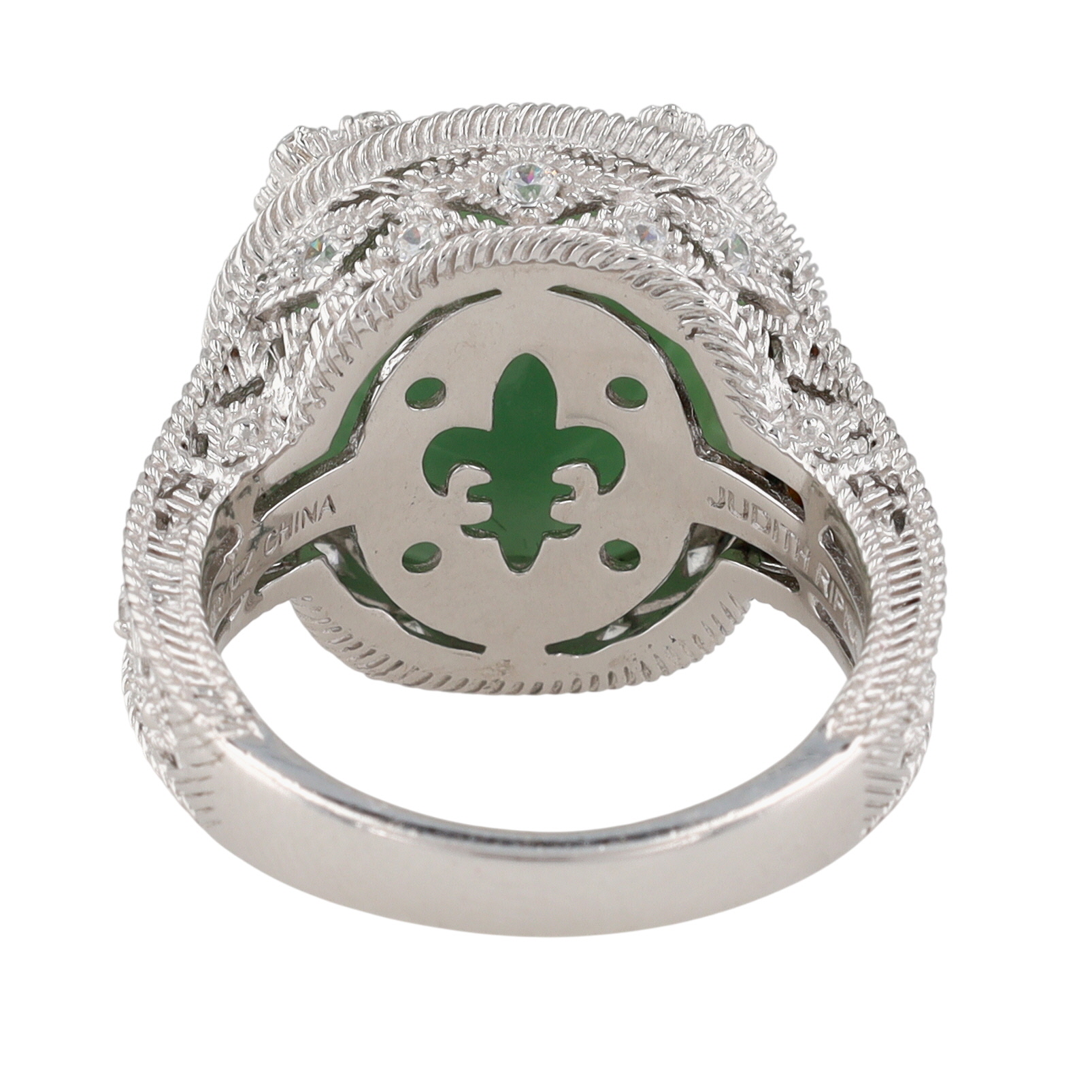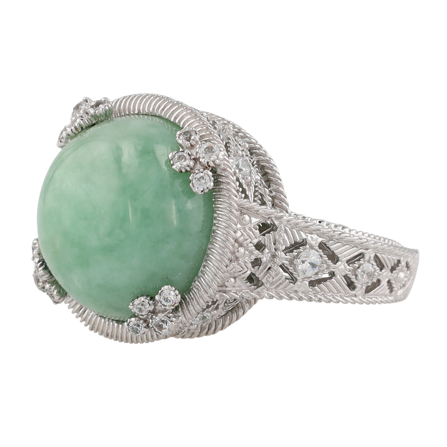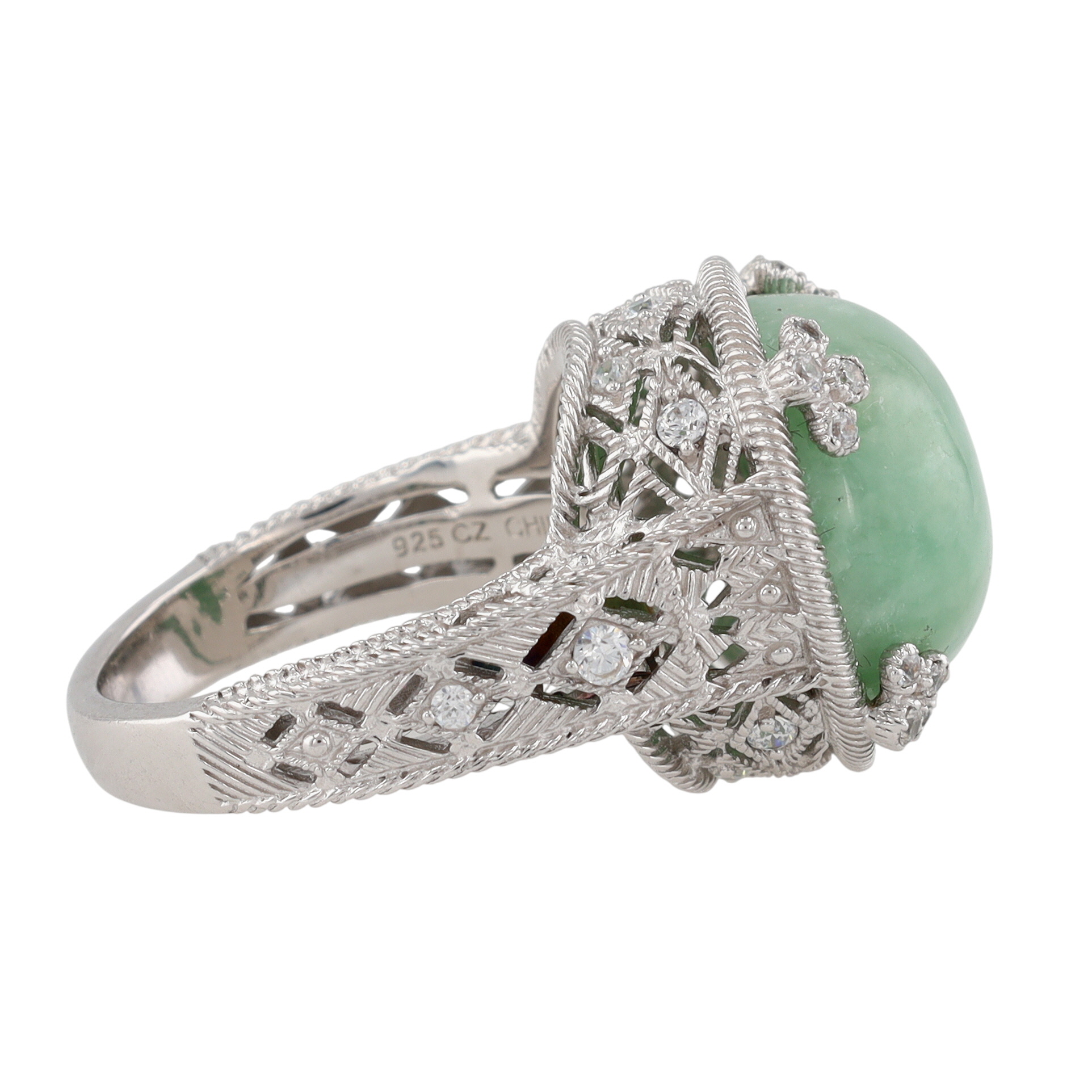 Judith Ripka Sterling Jade and Cubic Zirconia Ring Sz 8