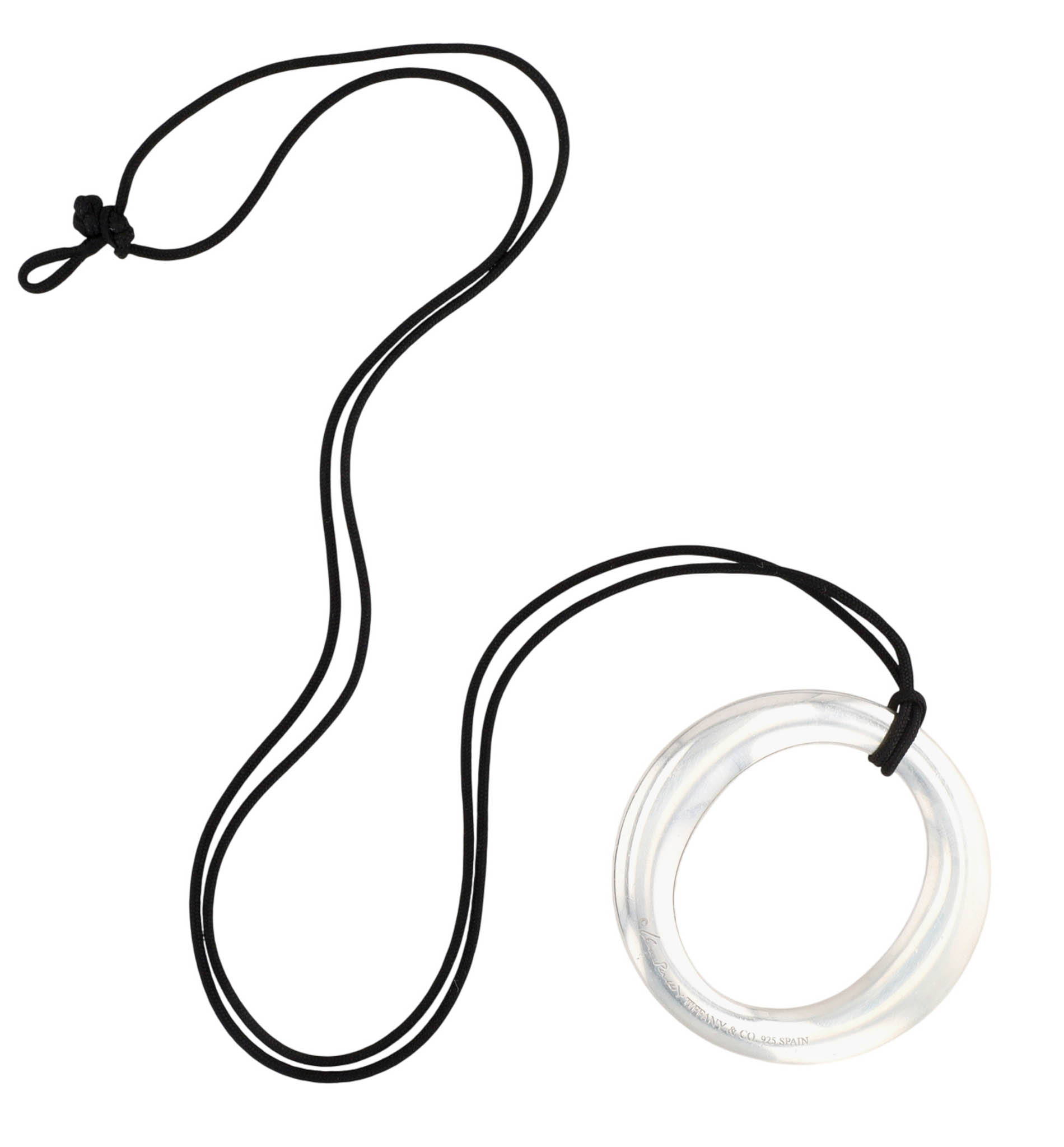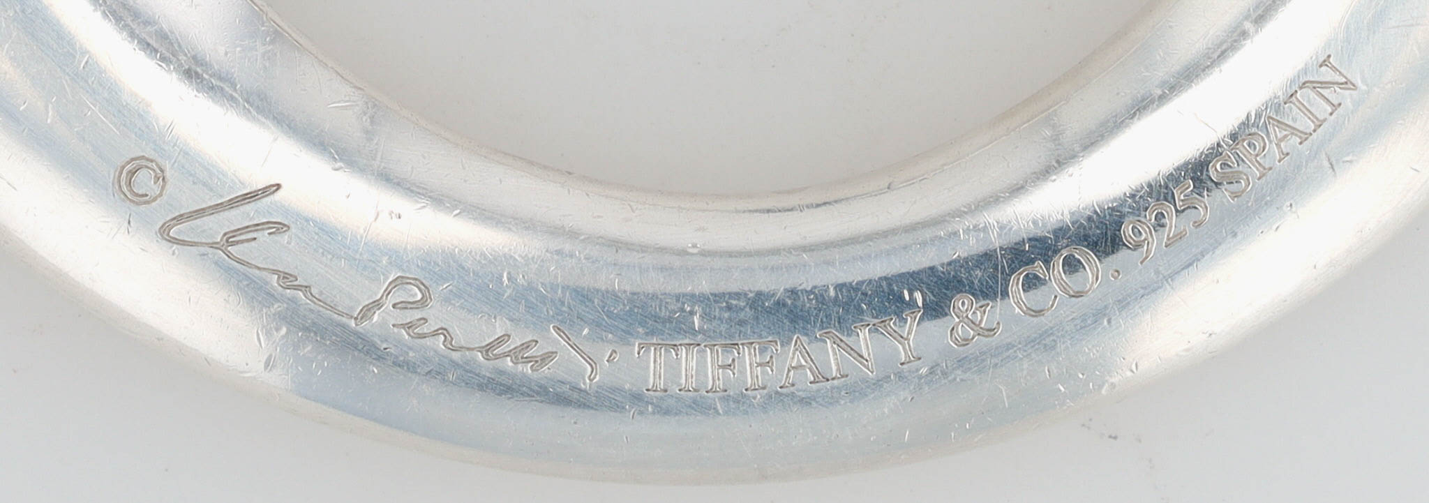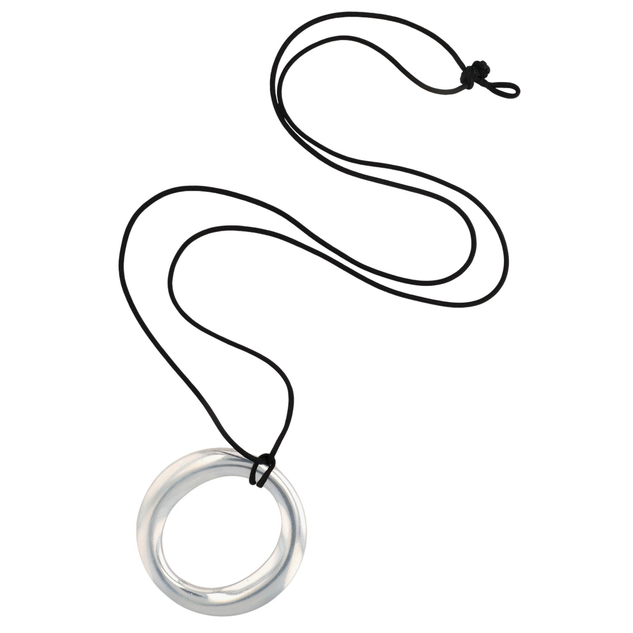 Tiffany & Co. Elsa Peretti Sterling Sevillana Necklace, Size Large (pendant approx 50mm x 50mm) | The necklace is a 30″ black silk cord | 18.4g | Retail $1175 | Comes with Tiffany Box as shown