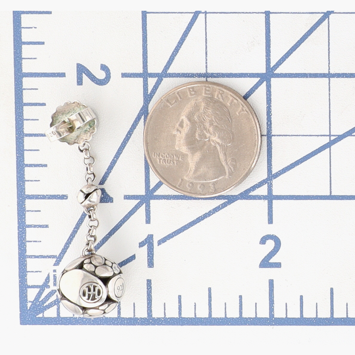 John Hardy Sterling Kali Long Pebble Drop Earrings | 10.5g | Approx. 1.8″ long