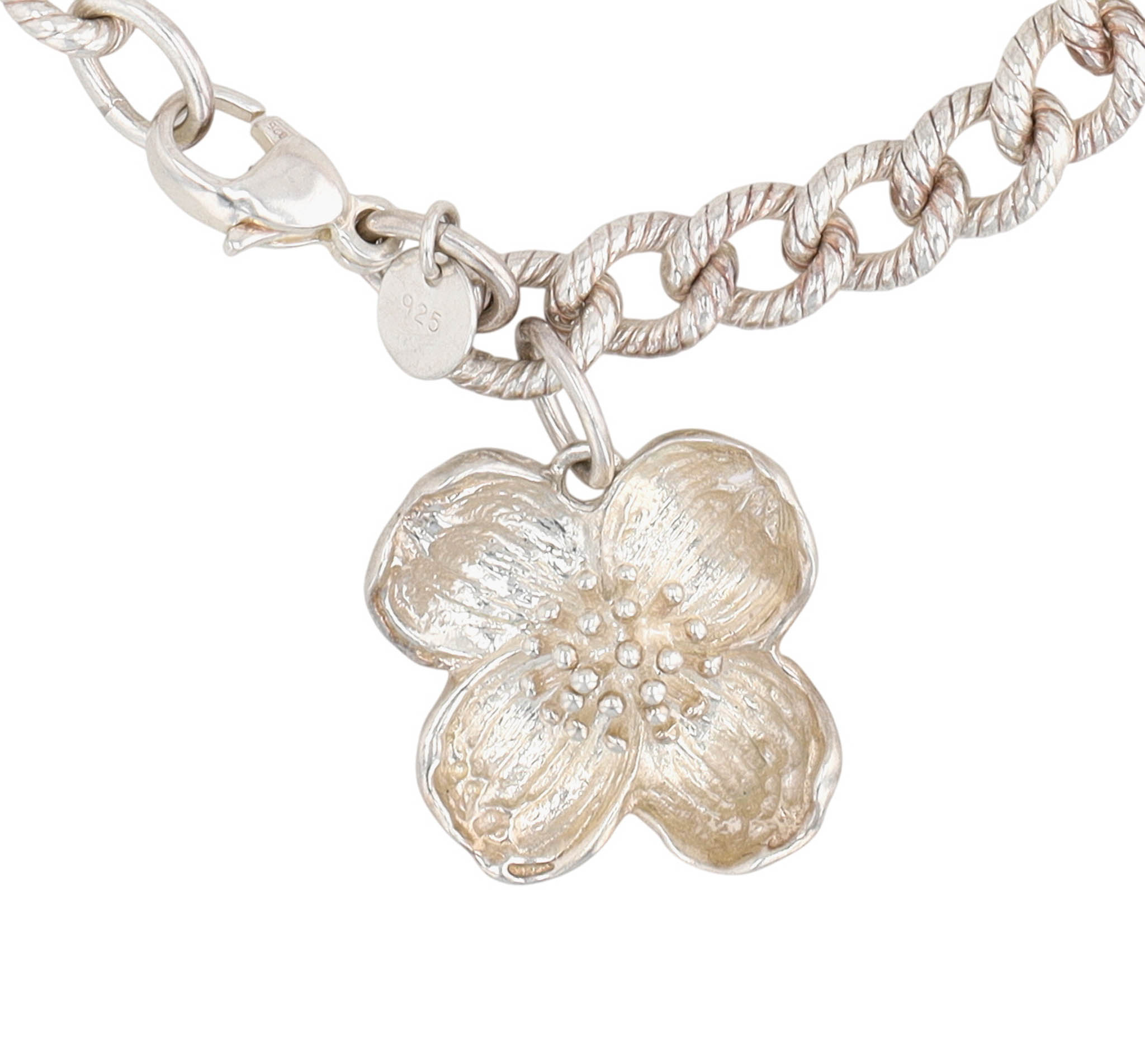 Vintage Tiffany & Co. Sterling Dogwood Bracelet, Retired | bracelet length approx 7.5″ | dogwood approx .86″ x .86″ | 27.5g