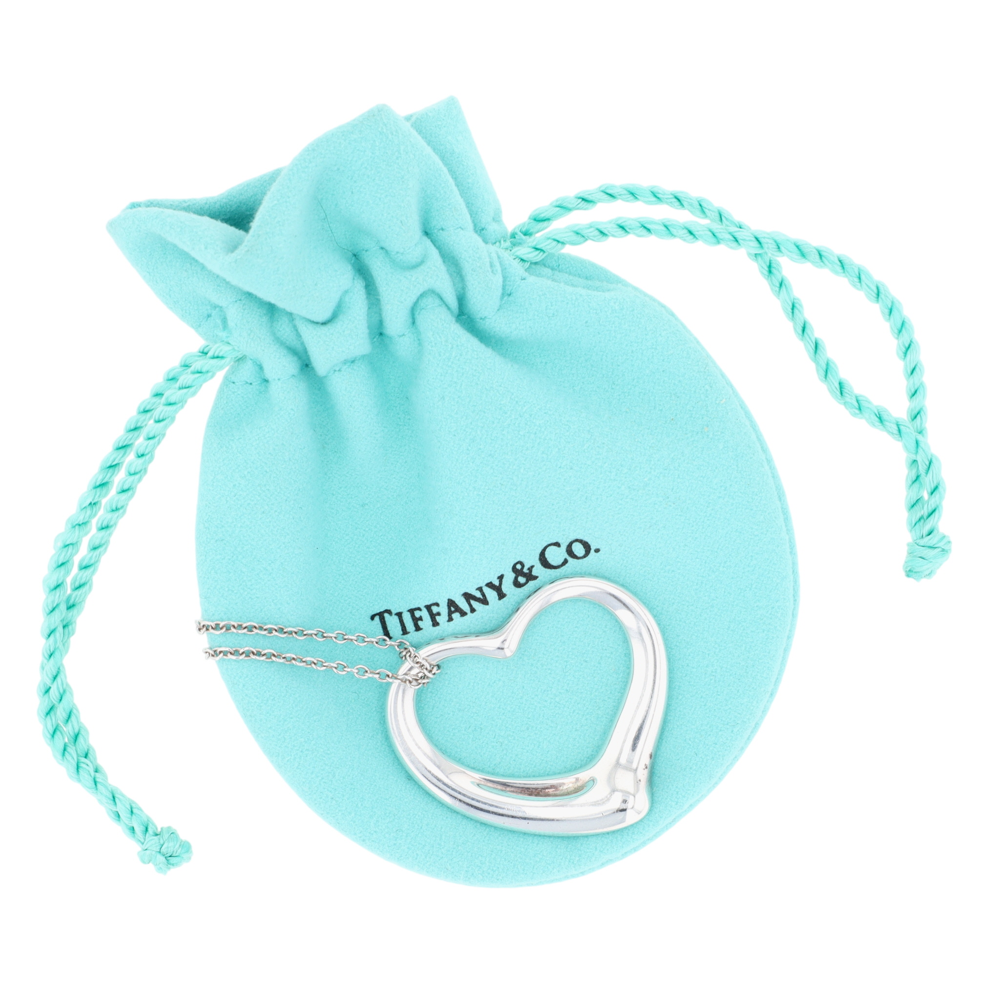 Wow! Tiffany & Co. Elsa Peretti Sterling Large Open Heart Necklace | 30″ Chain | Pendant approx. 34.6mm x 30mm | 15.7g | Comes with Tiffany Cloth Pouch as shown