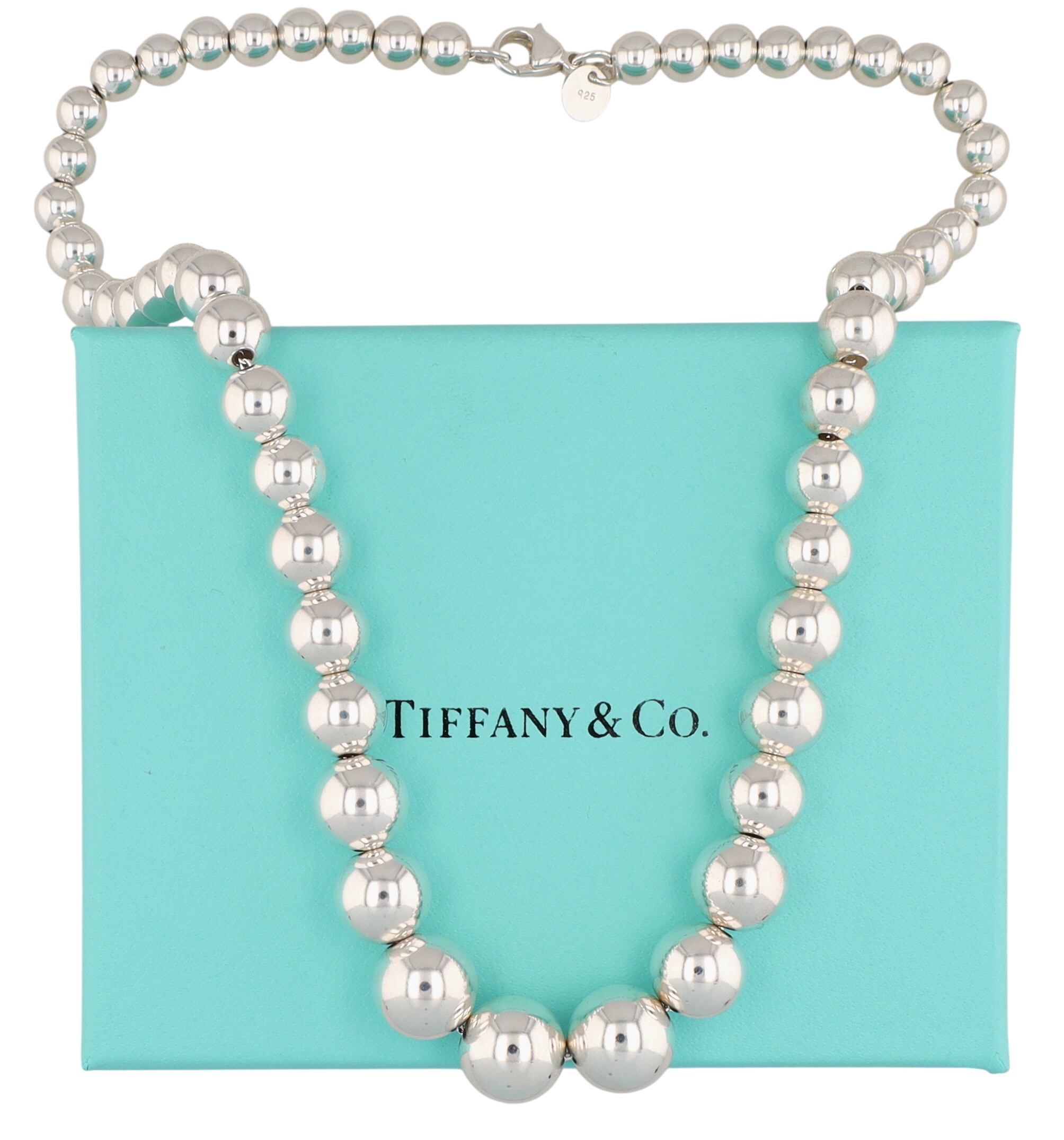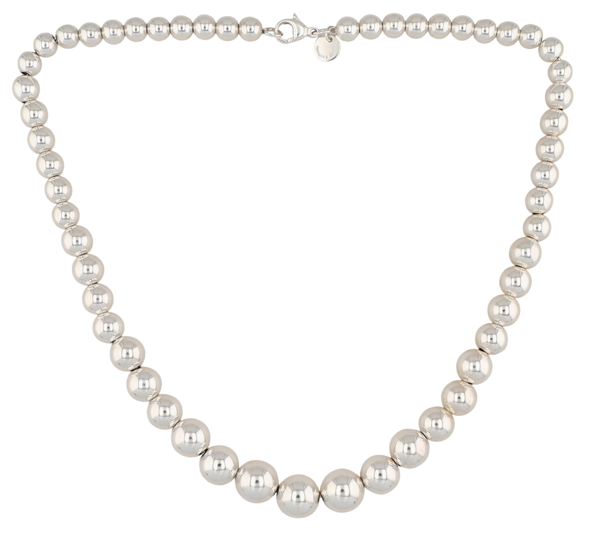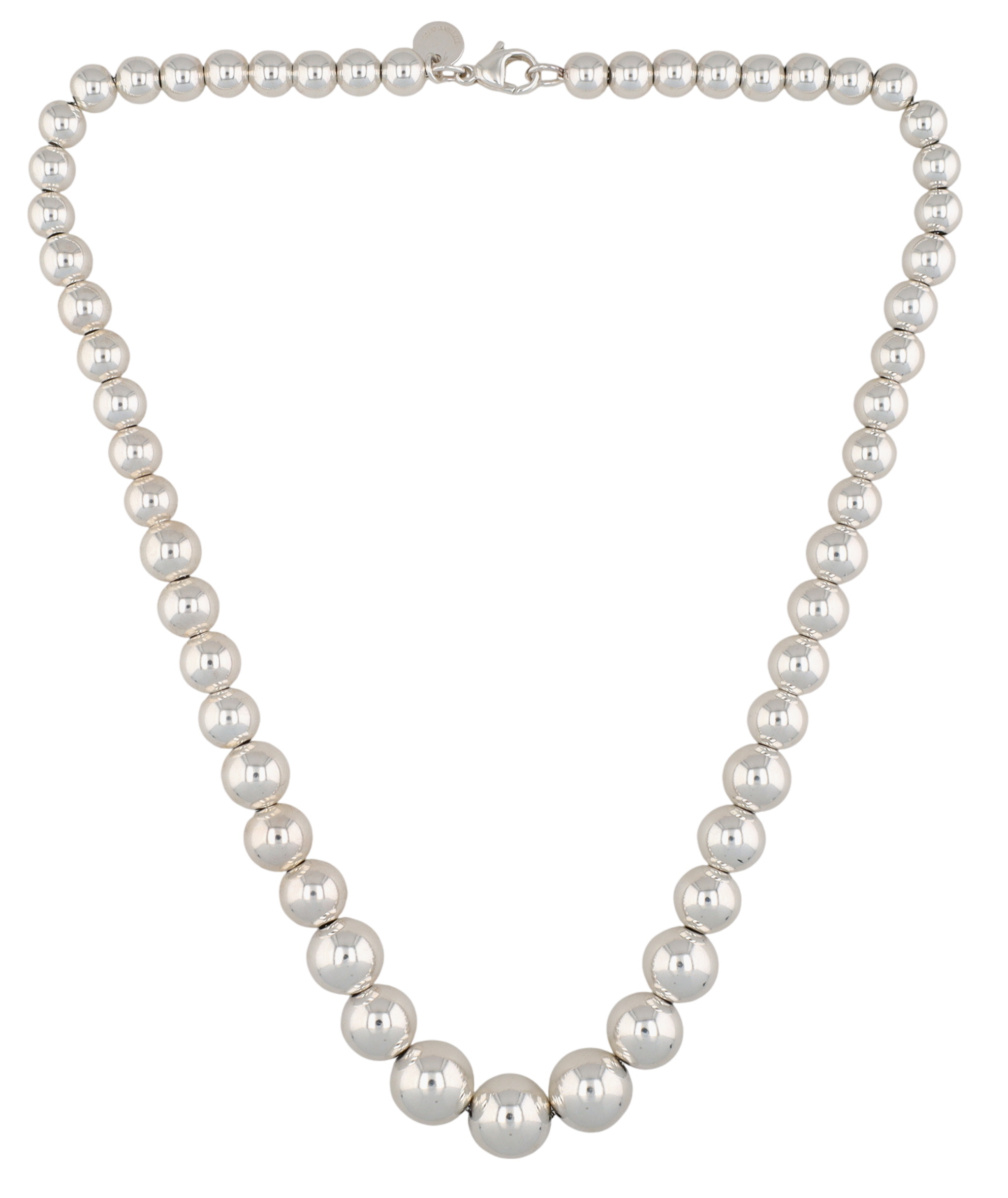 Tiffany & Co. Sterling HardWear Graduated Ball Necklace, 6-11mm diameter | Approx 16″| 29.4g | Retail $1000 | Comes with Tiffany Box as shown