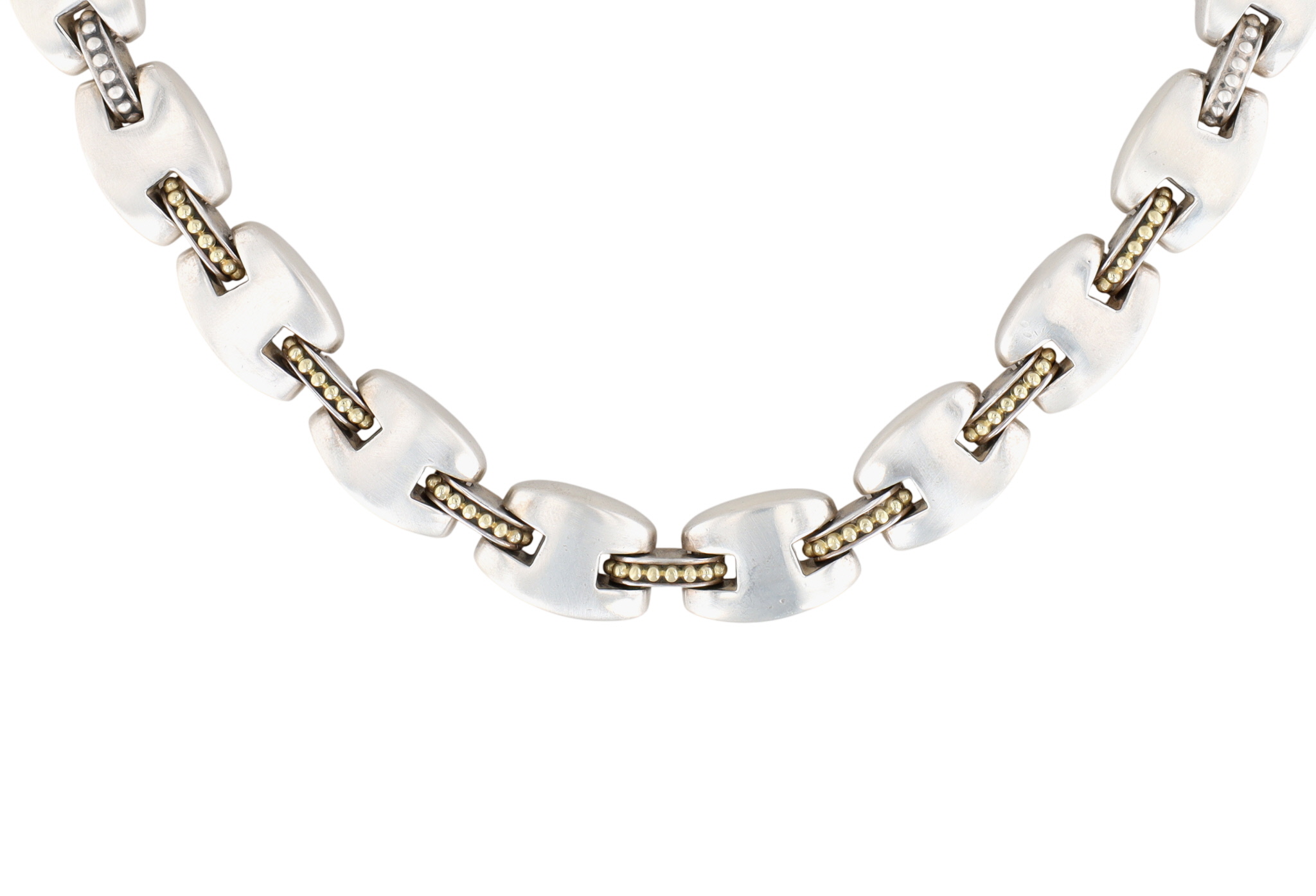 Amazing Lagos Caviar Sterling & 18K Gold Heavy Panel Link Necklace, Retired | 153.8g! | Approx 18.25″ long
