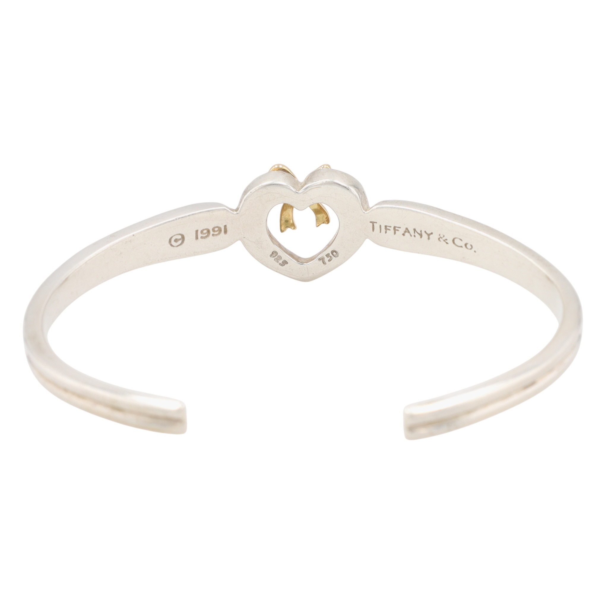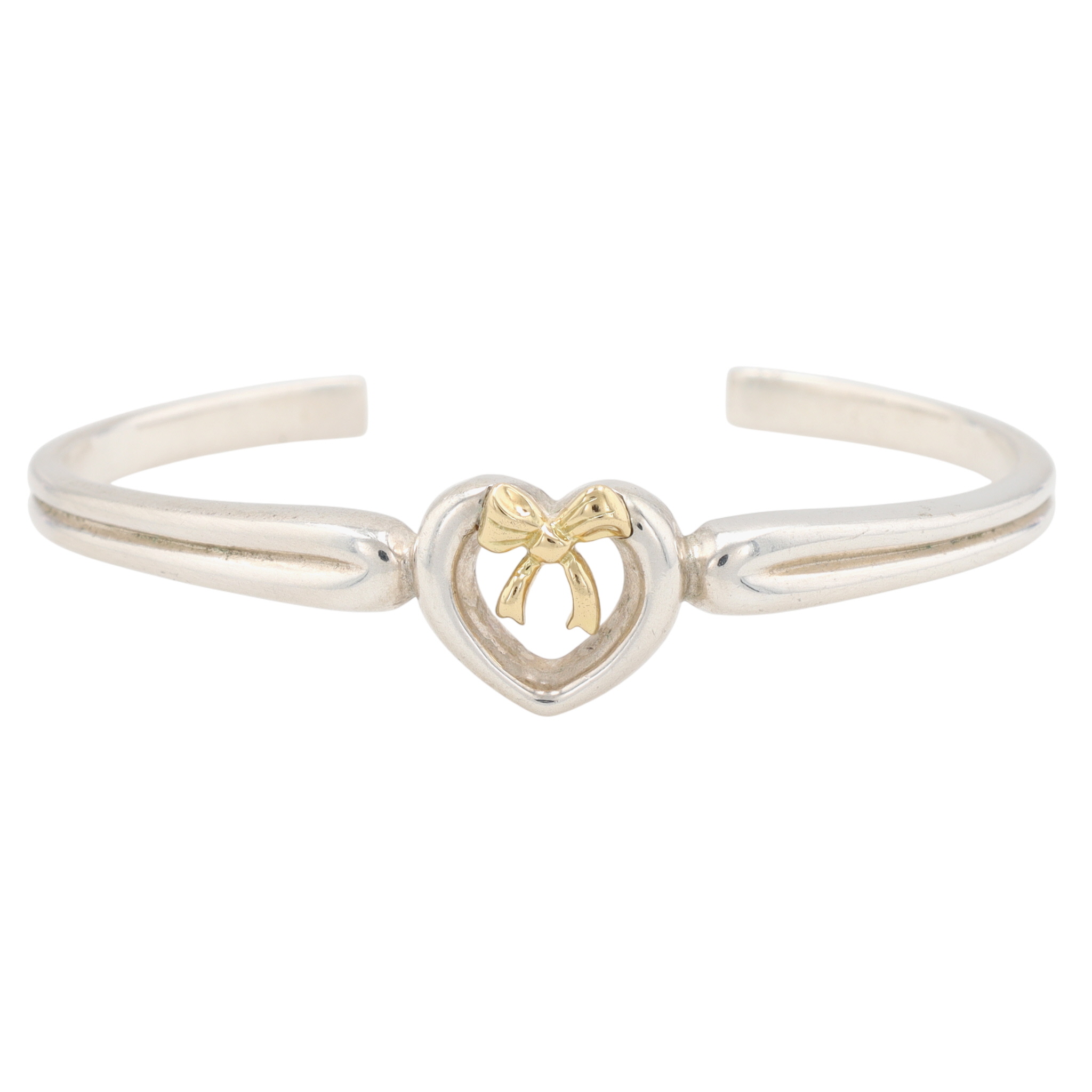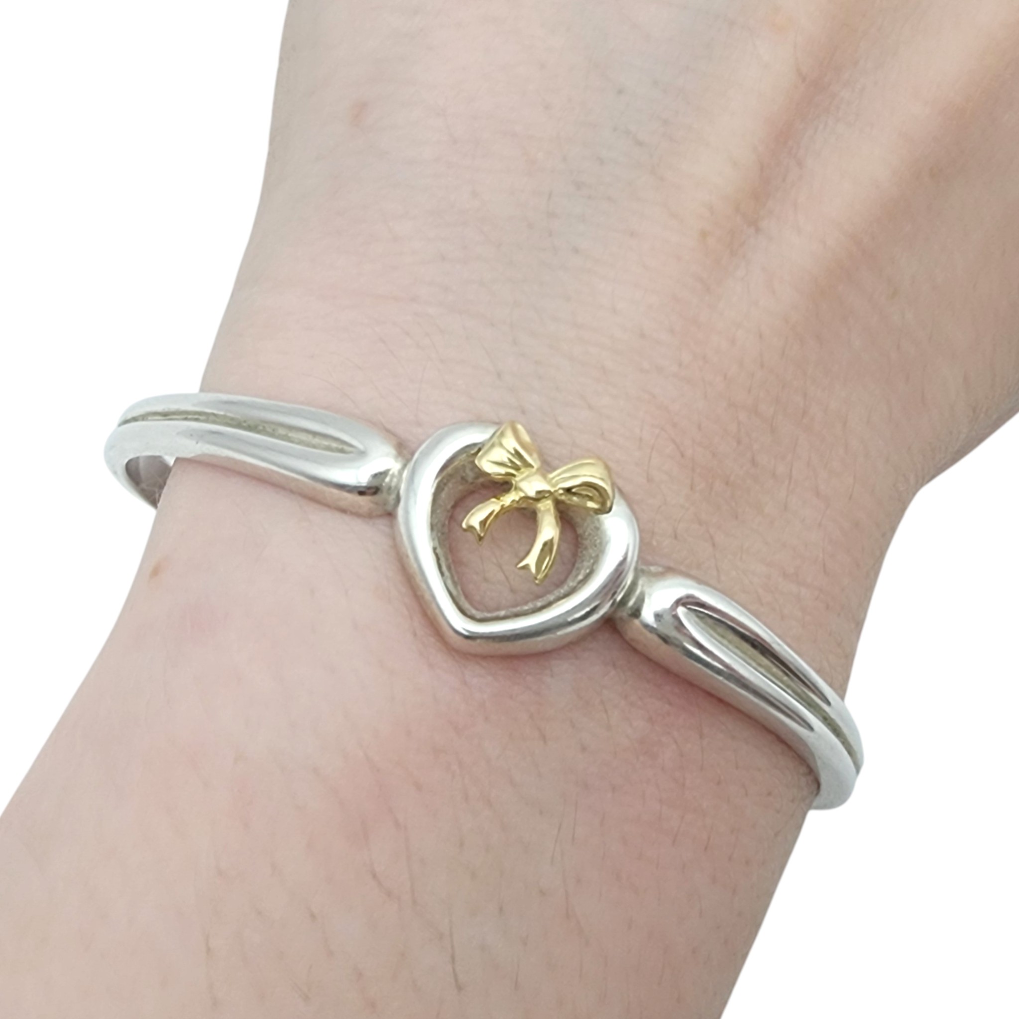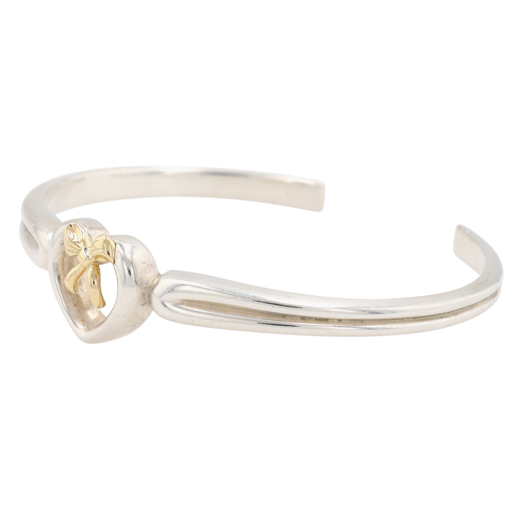 Tiffany & Co. 1991 Sterling & 18K Gold Heart Bow Cuff Bracelet | 15.6g