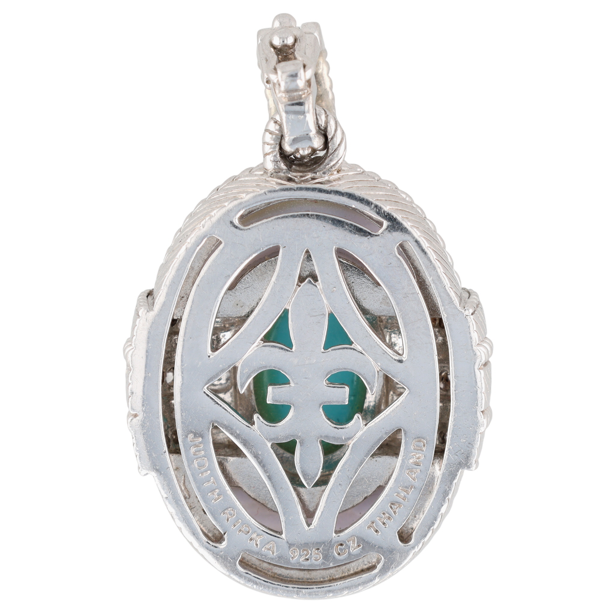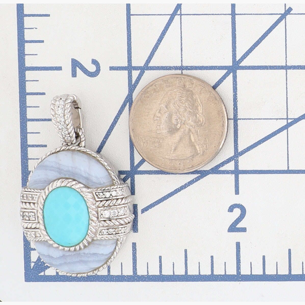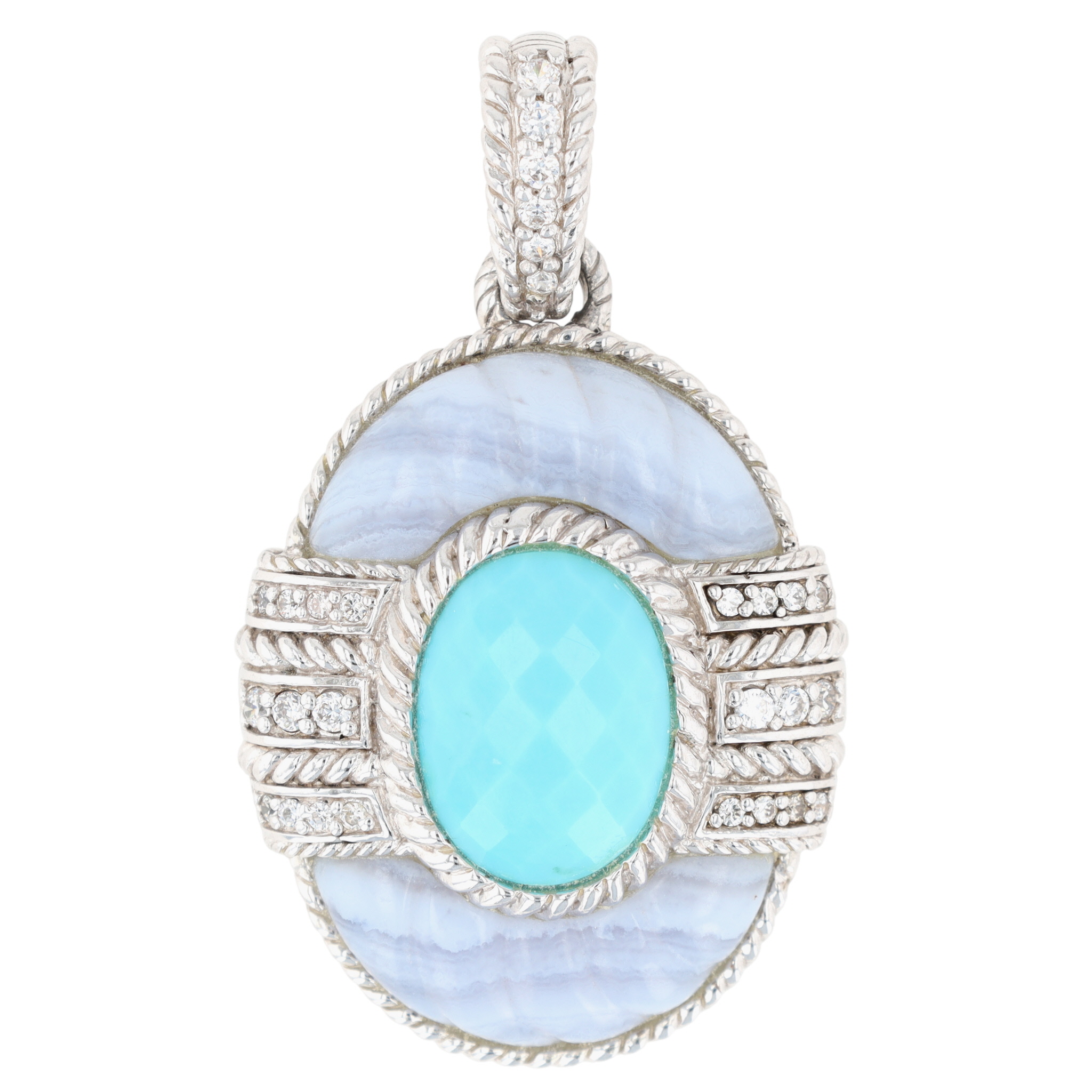 Gorgeous, Big Judith Ripka Sterling Blue Lace Agate, Turquoise & CZ Enhancer Pendant | 21.2g