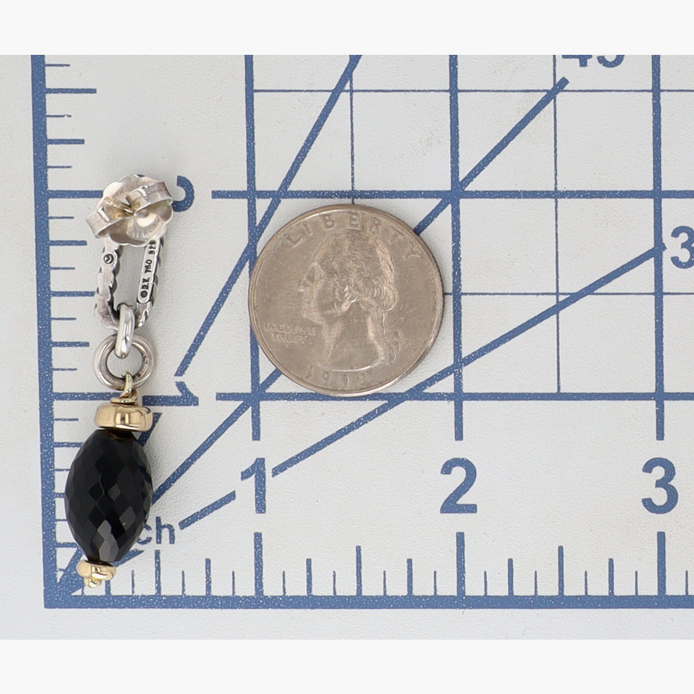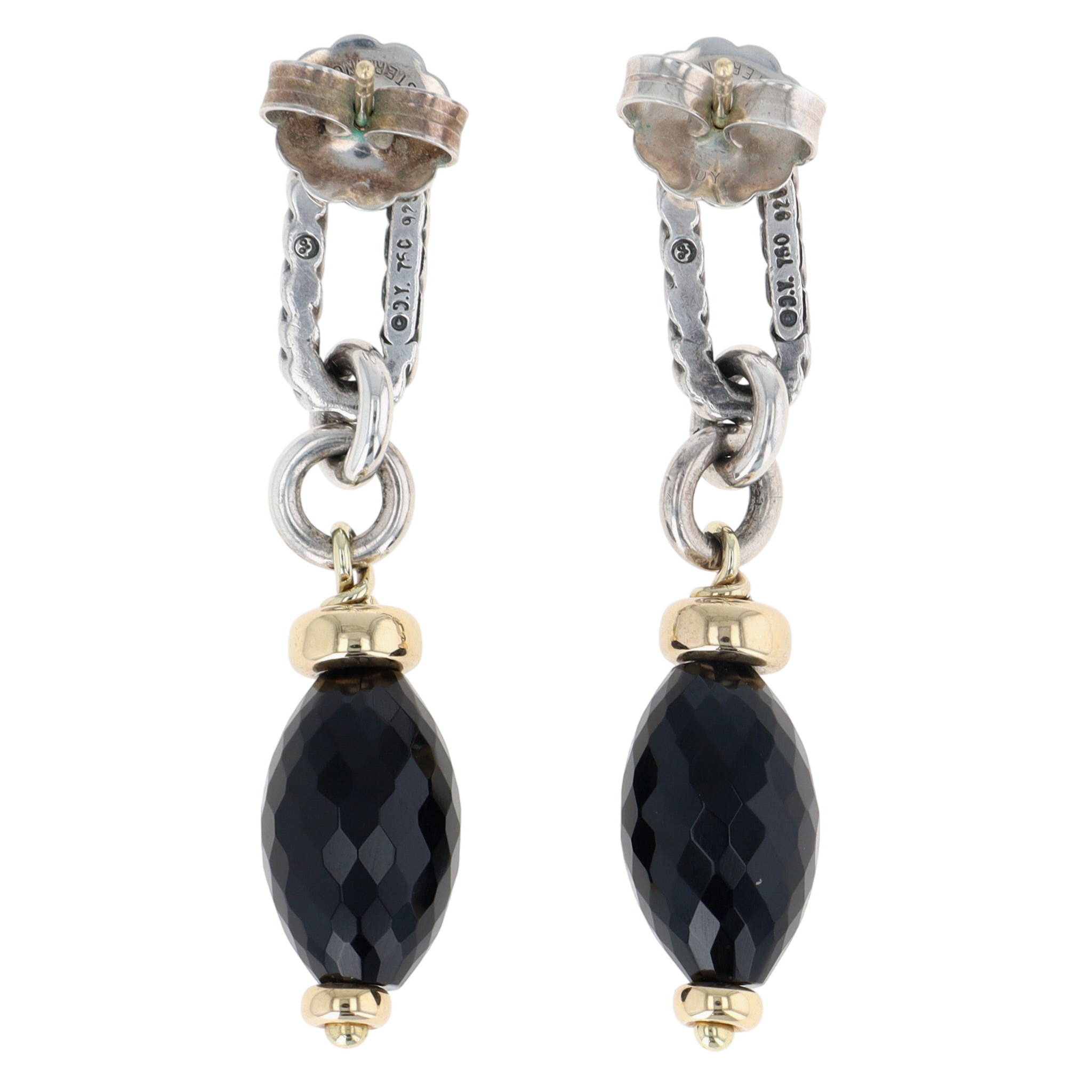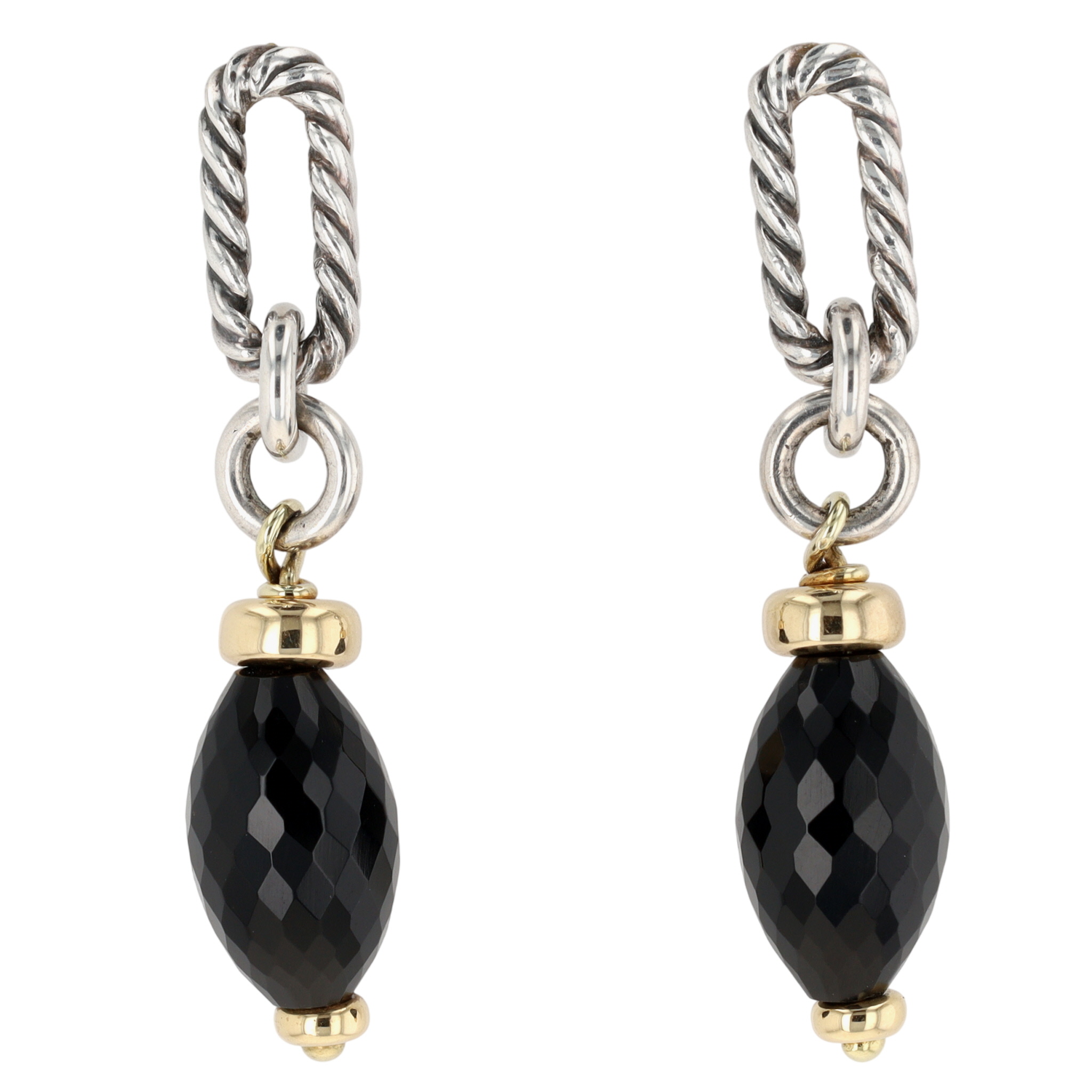 David Yurman Sterling & 18K Gold Faceted Onyx Figaro Chain Dangle Earrings | approx 1.85″ long