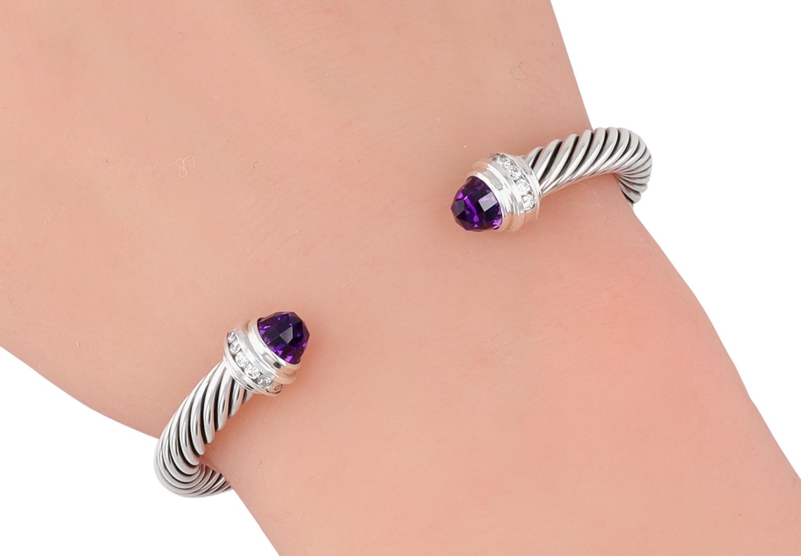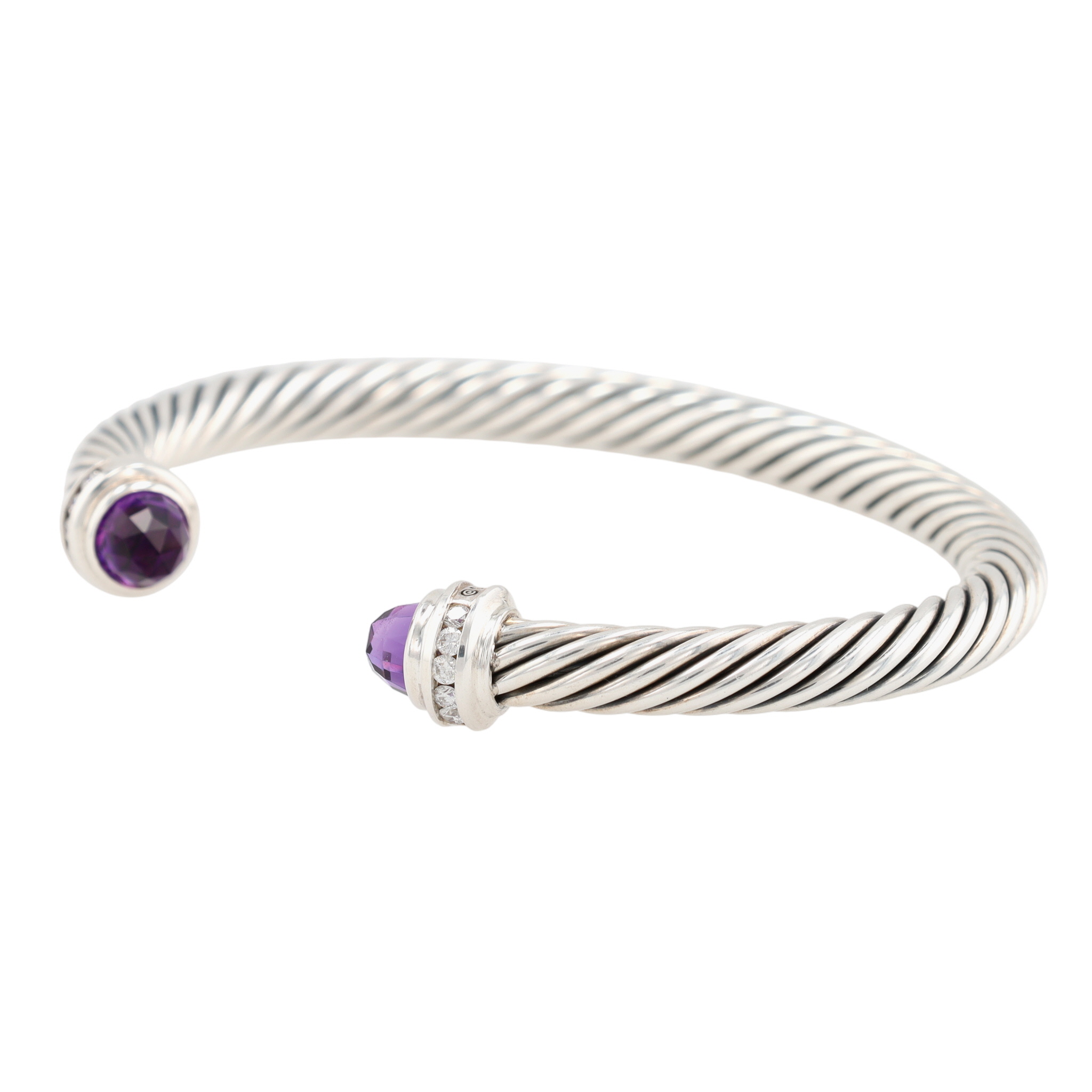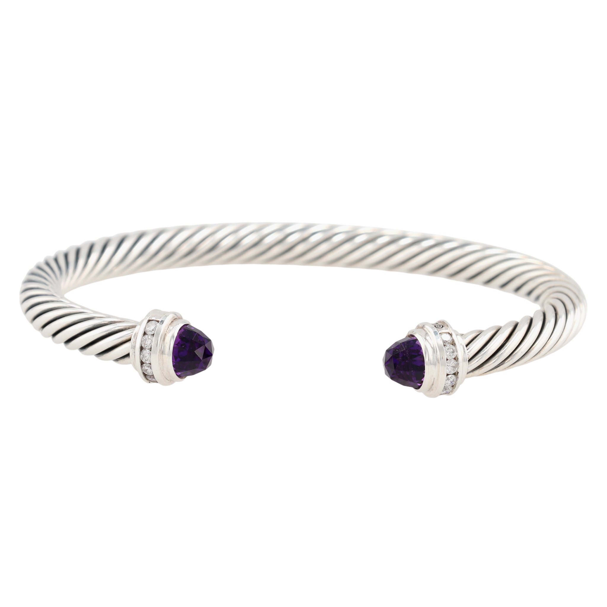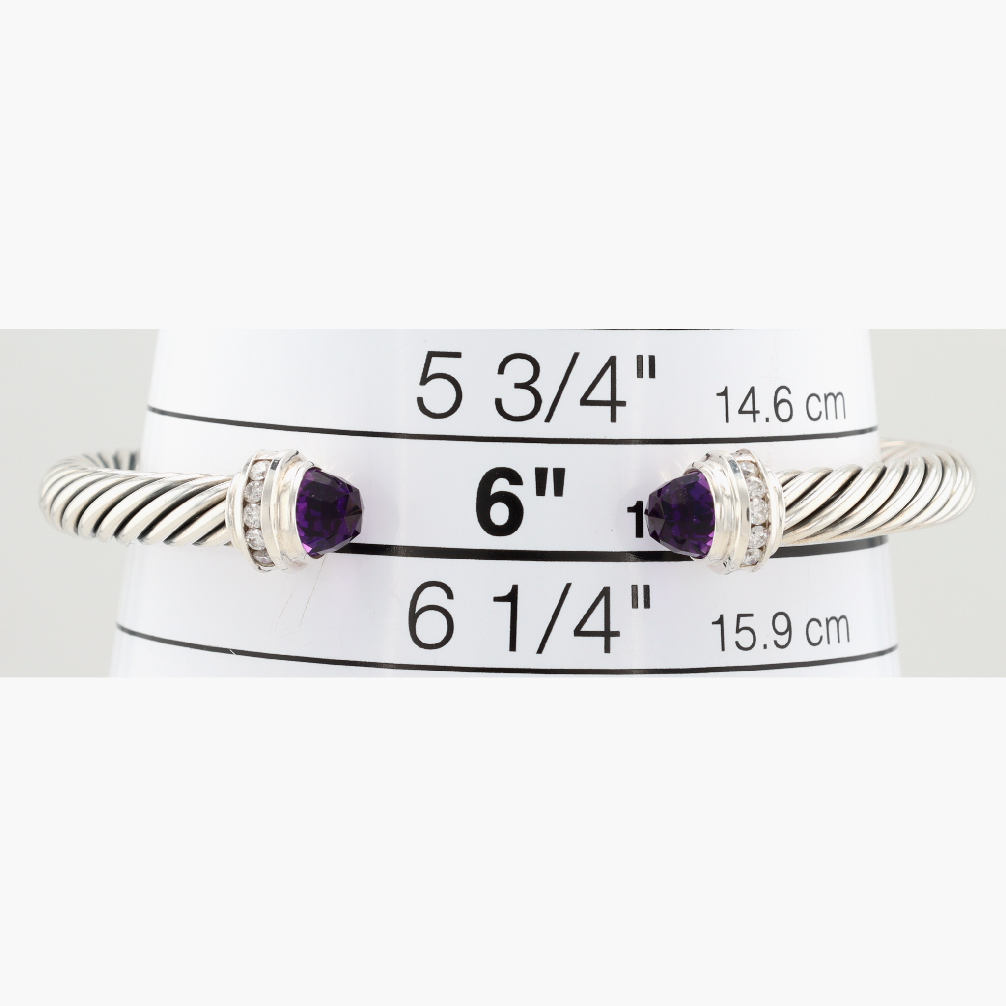 David Yurman Sterling Diamond & Amethyst Classic Cable Bracelet, 5mm | | Retail $975