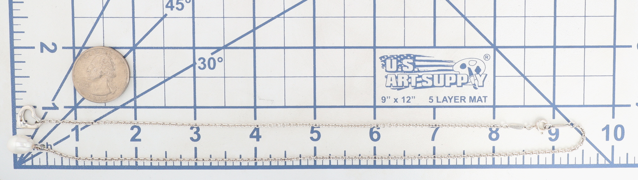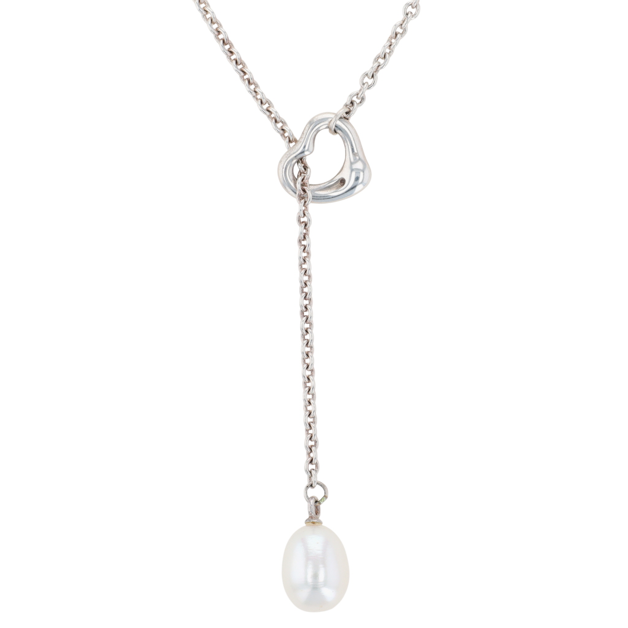 Tiffany & Co. Elsa Peretti Sterling Pearl Open Heart Lariat Necklace | 8mm pearl | approx 19″ long | 5.9g | Retail $725