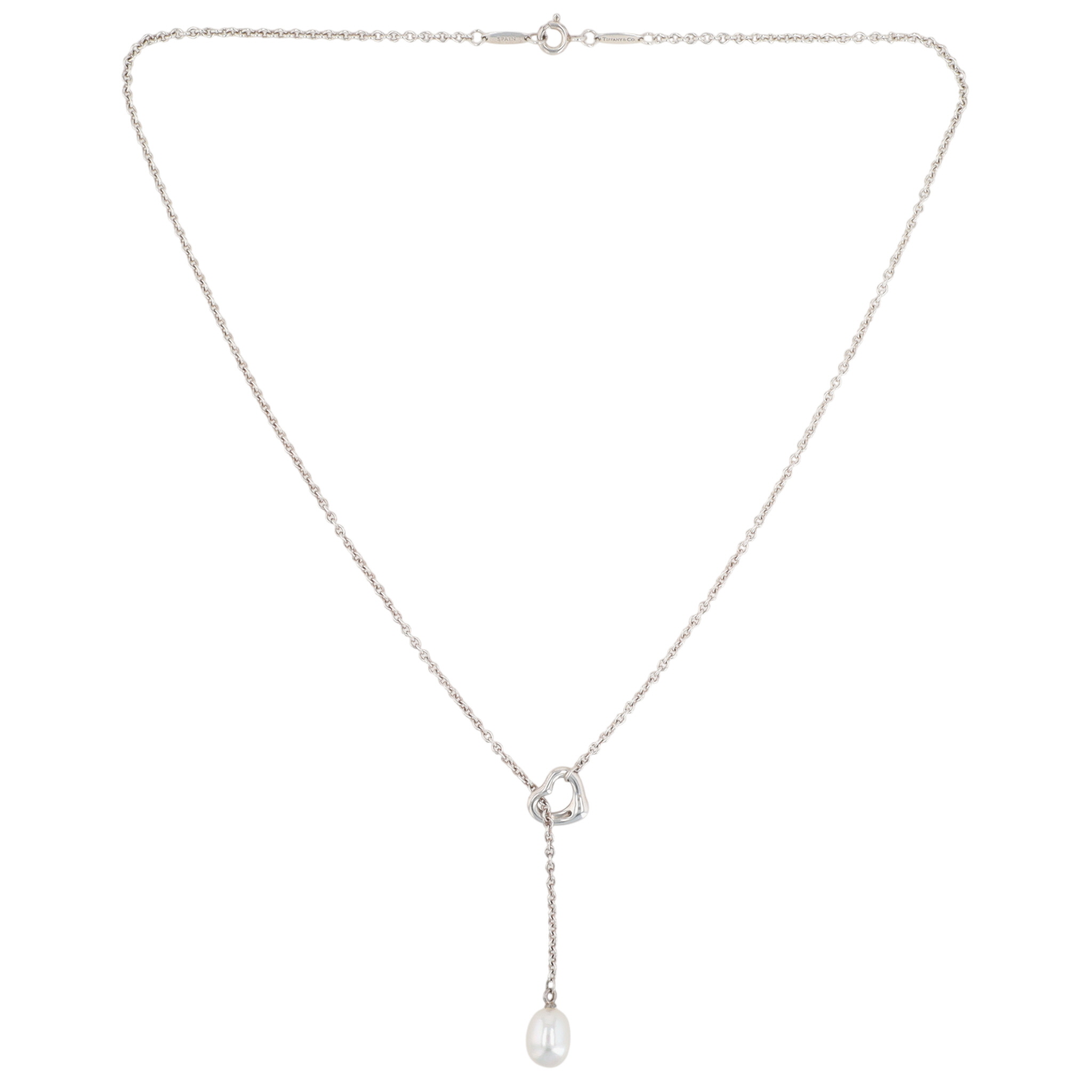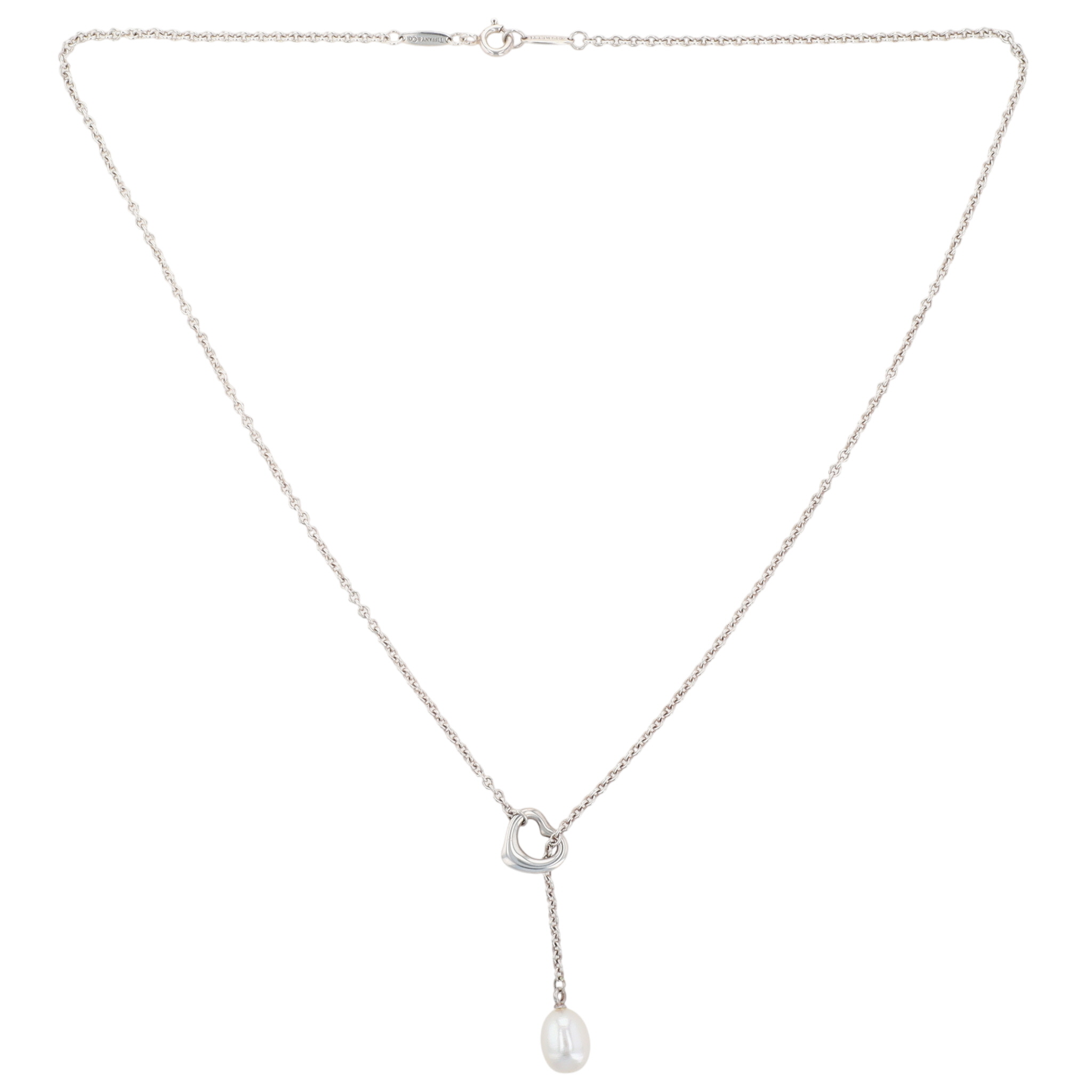 Tiffany & Co. Elsa Peretti Sterling Pearl Open Heart Lariat Necklace