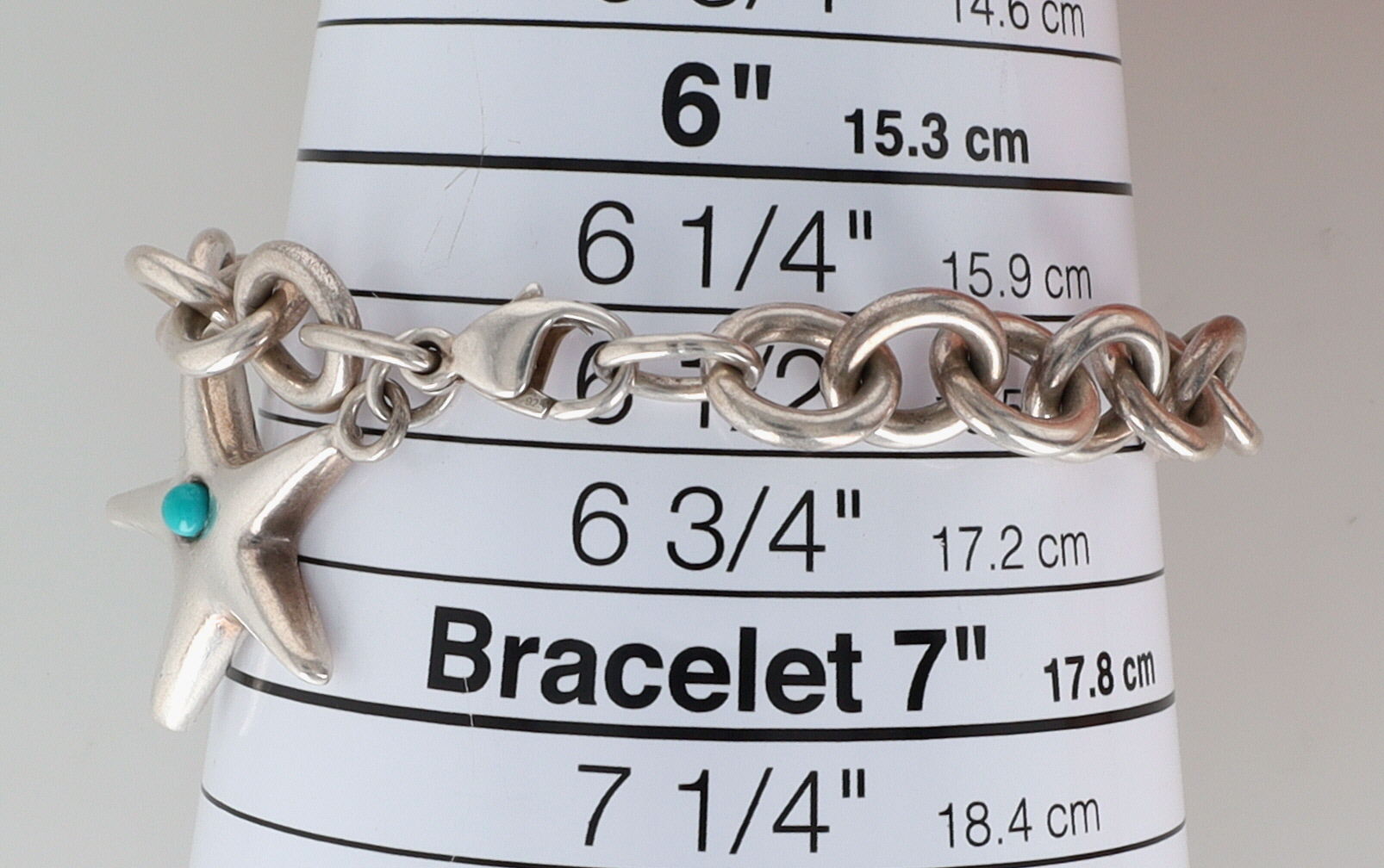 Rare Tiffany & Co. Sterling Turquoise Starfish Bracelet | 34.6g | 7.5″ total length | starfish approx 1″ x 1″