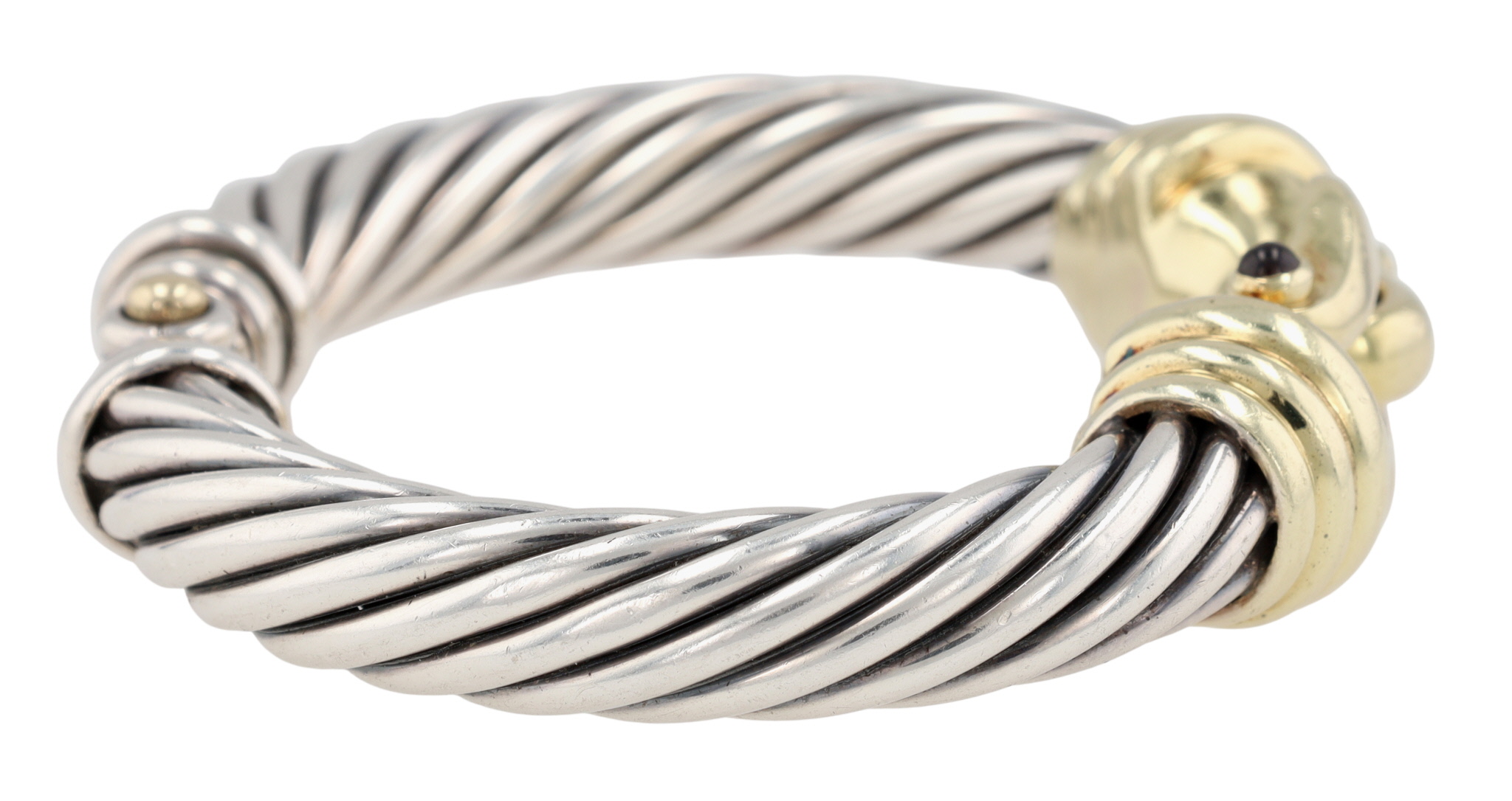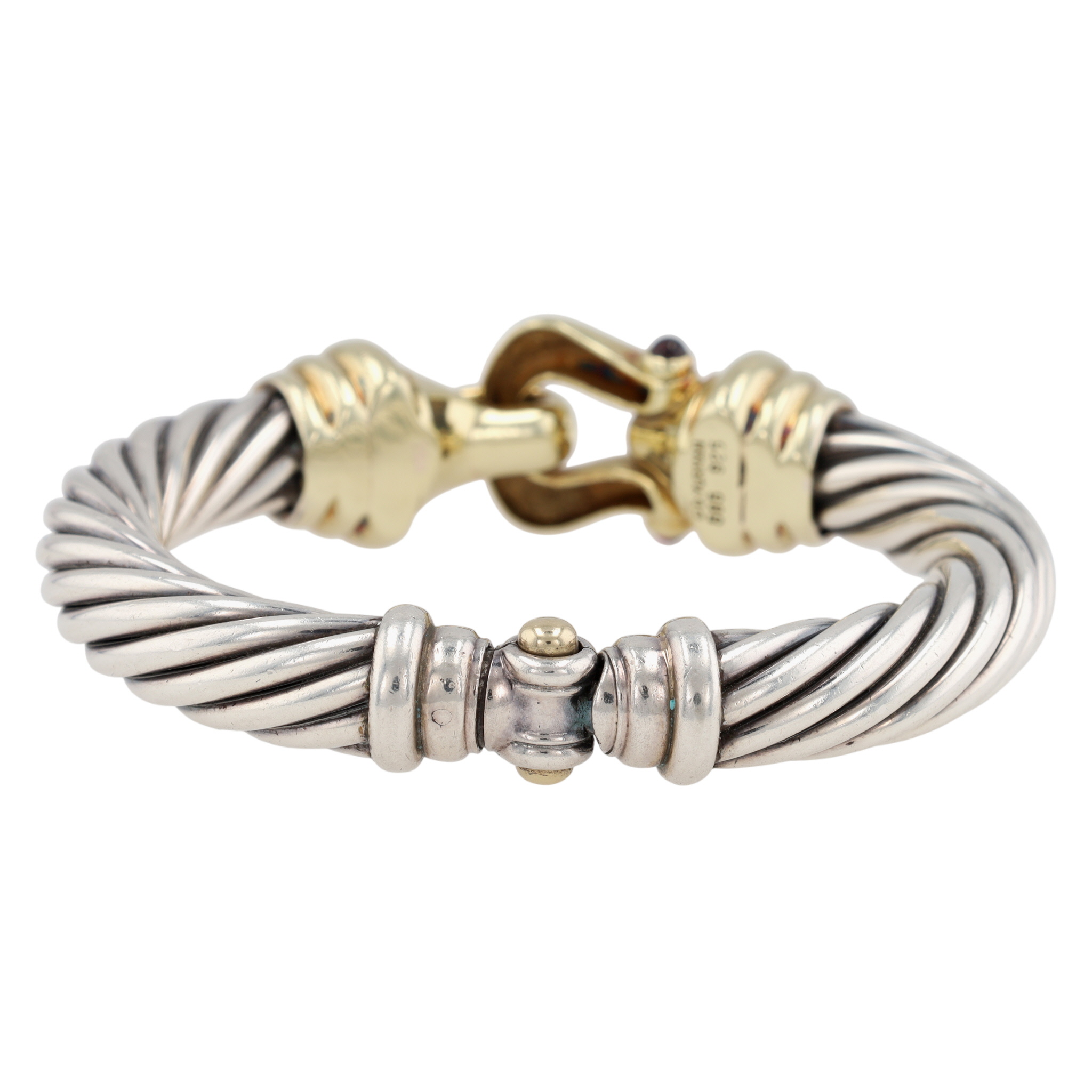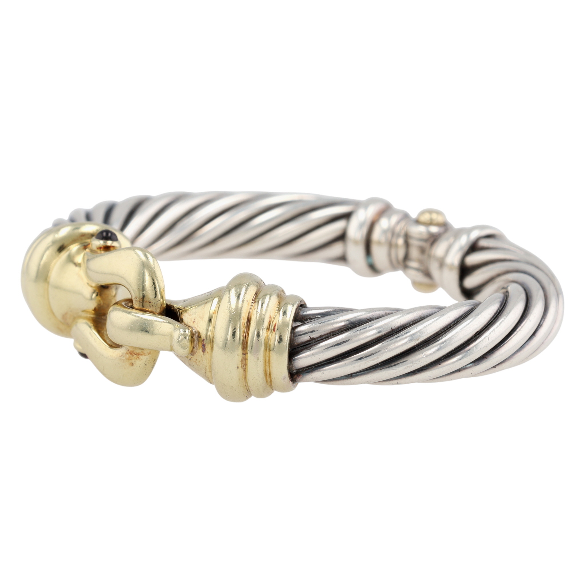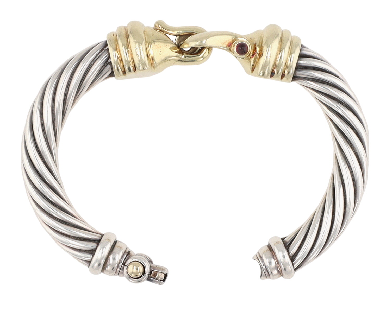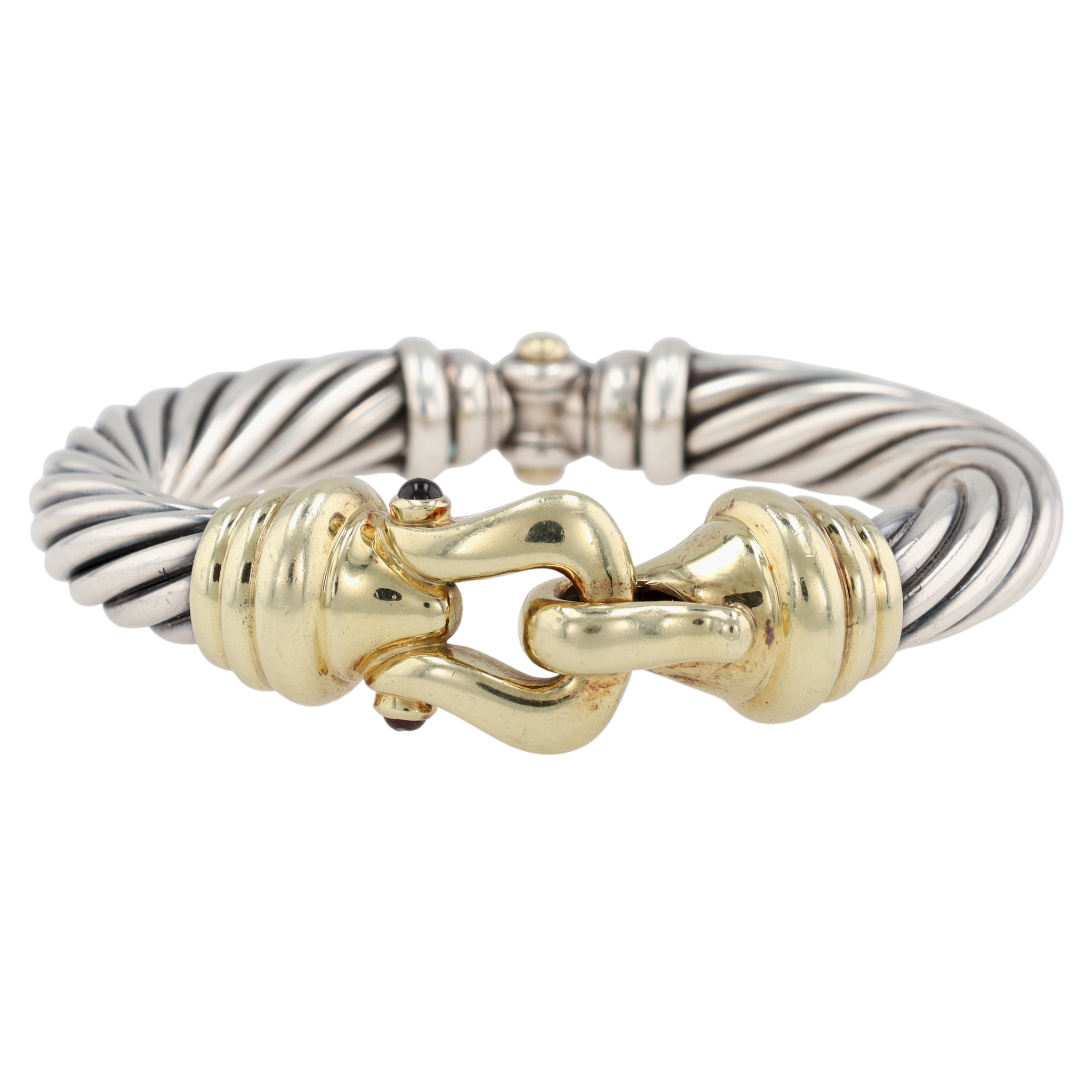 Big! David Yurman Sterling & 14K Gold Rhodolite Garnet Buckle Classic Cable Bracelet, approx 9.5mm | Retail $2800 | 56.2g | Comes with David Yurman Cloth Bag as shown | Note: chip in rhodolites