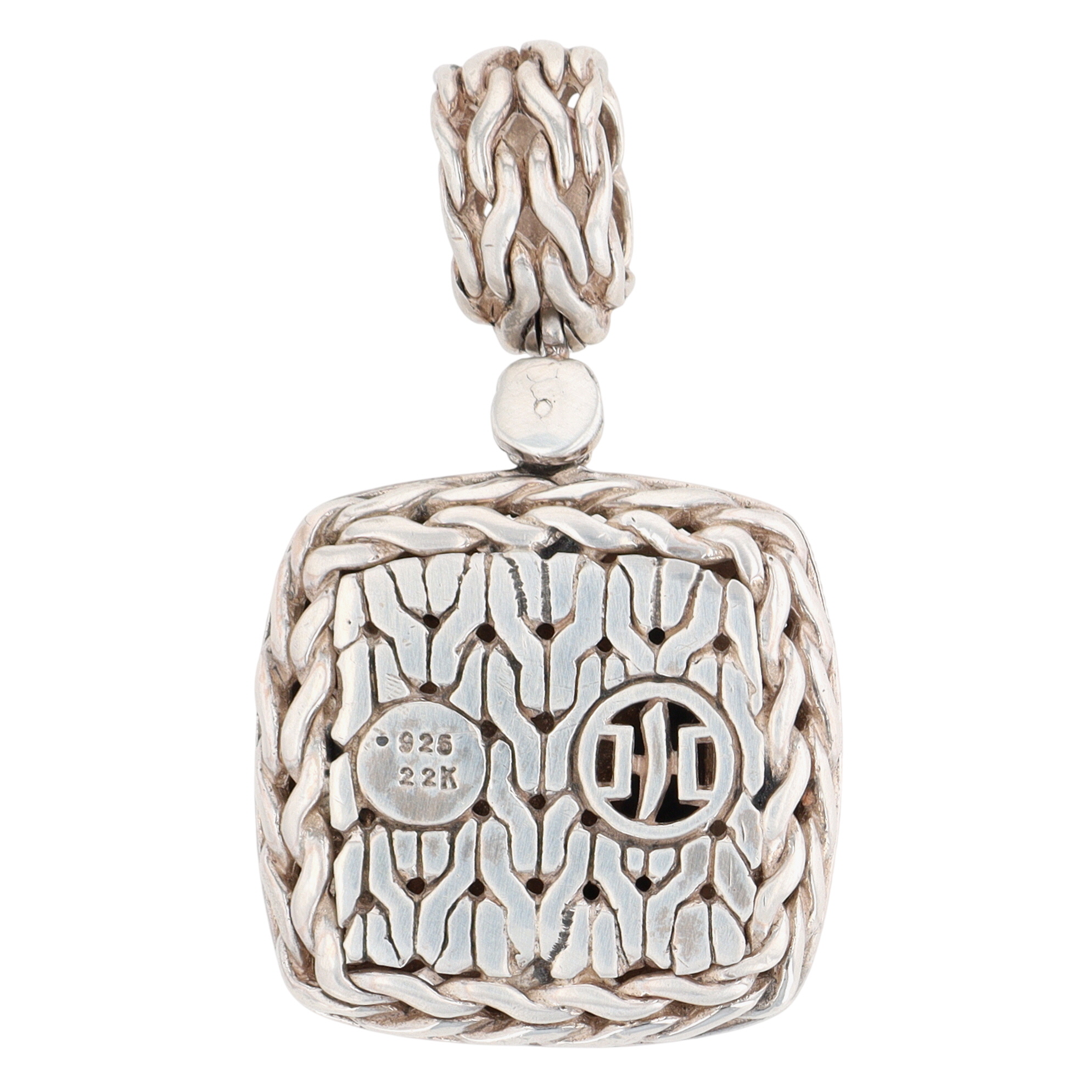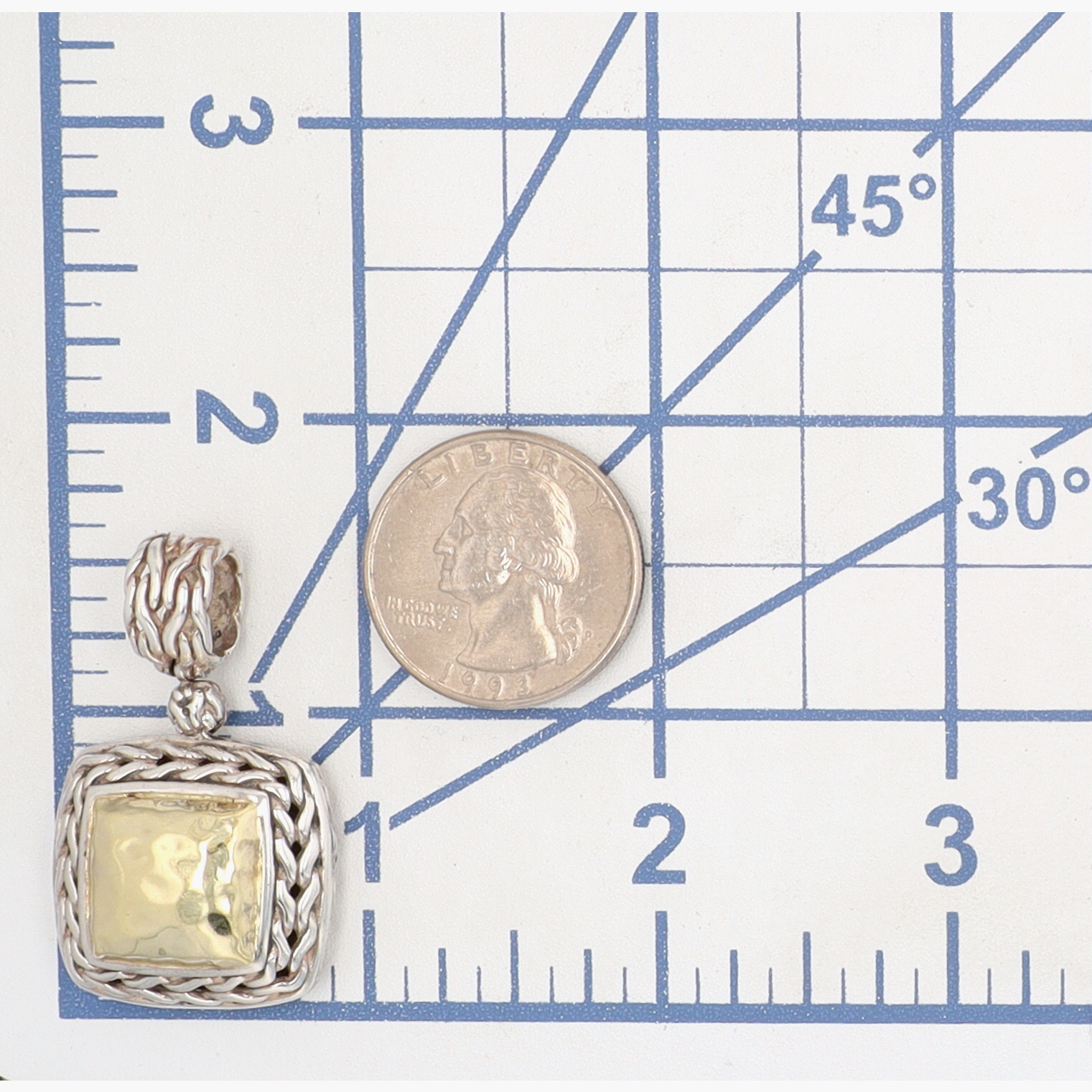 John Hardy Sterling & 22K Gold Palu Hammered Square Cable Pendant | 14.2g