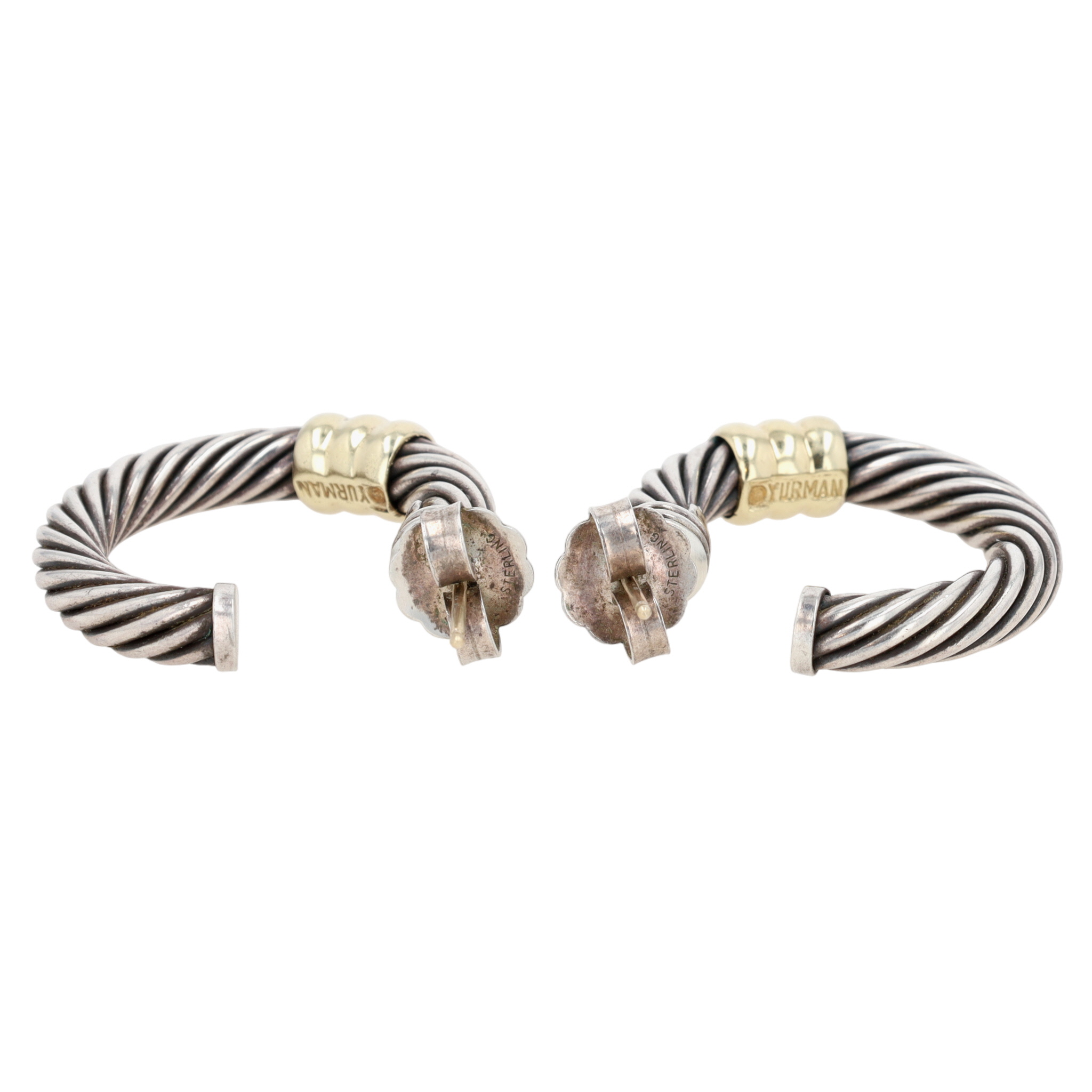 David Yurman Sterling & 14K Gold Cable Classics Station Hoop Earrings | 10.7g