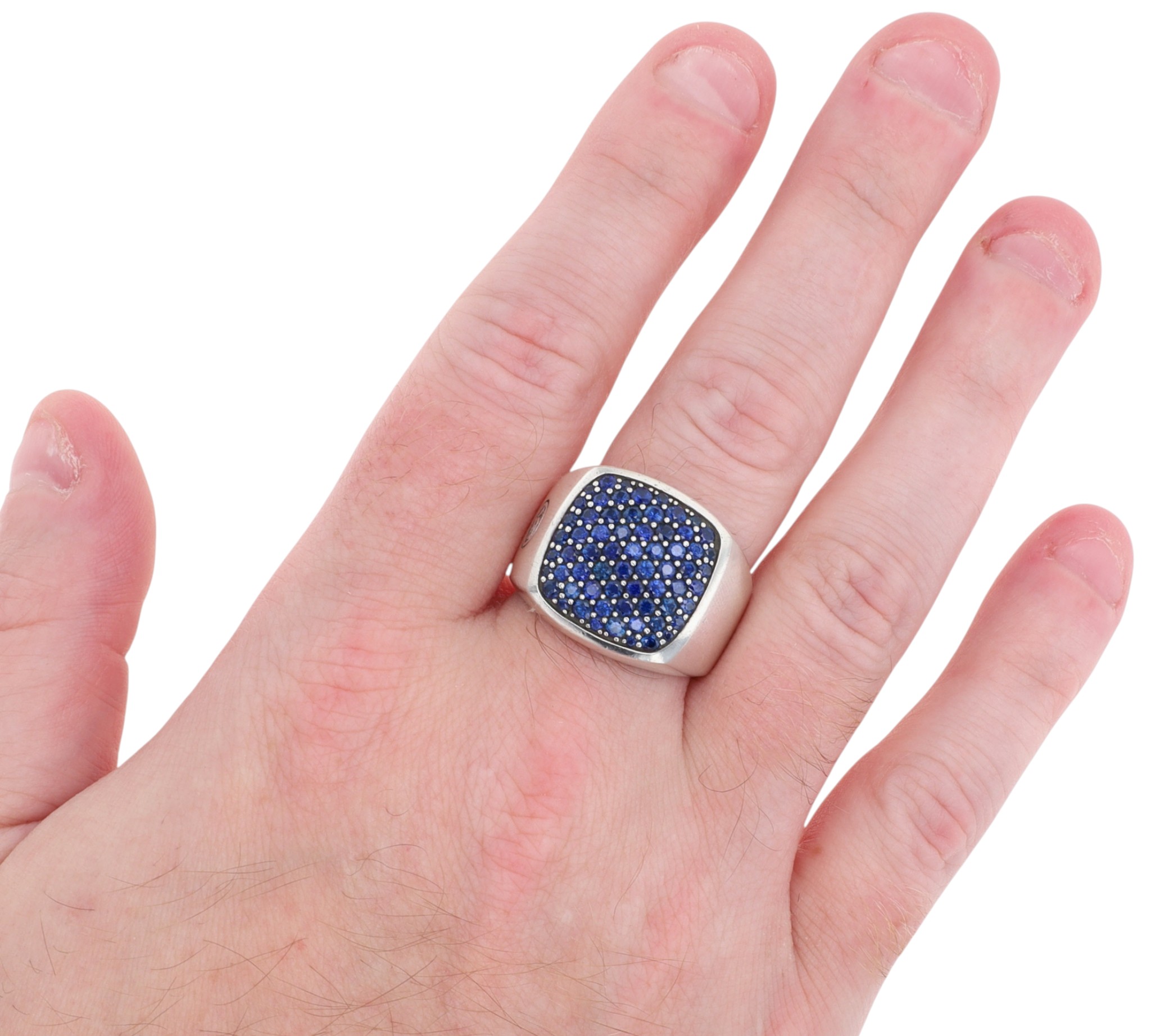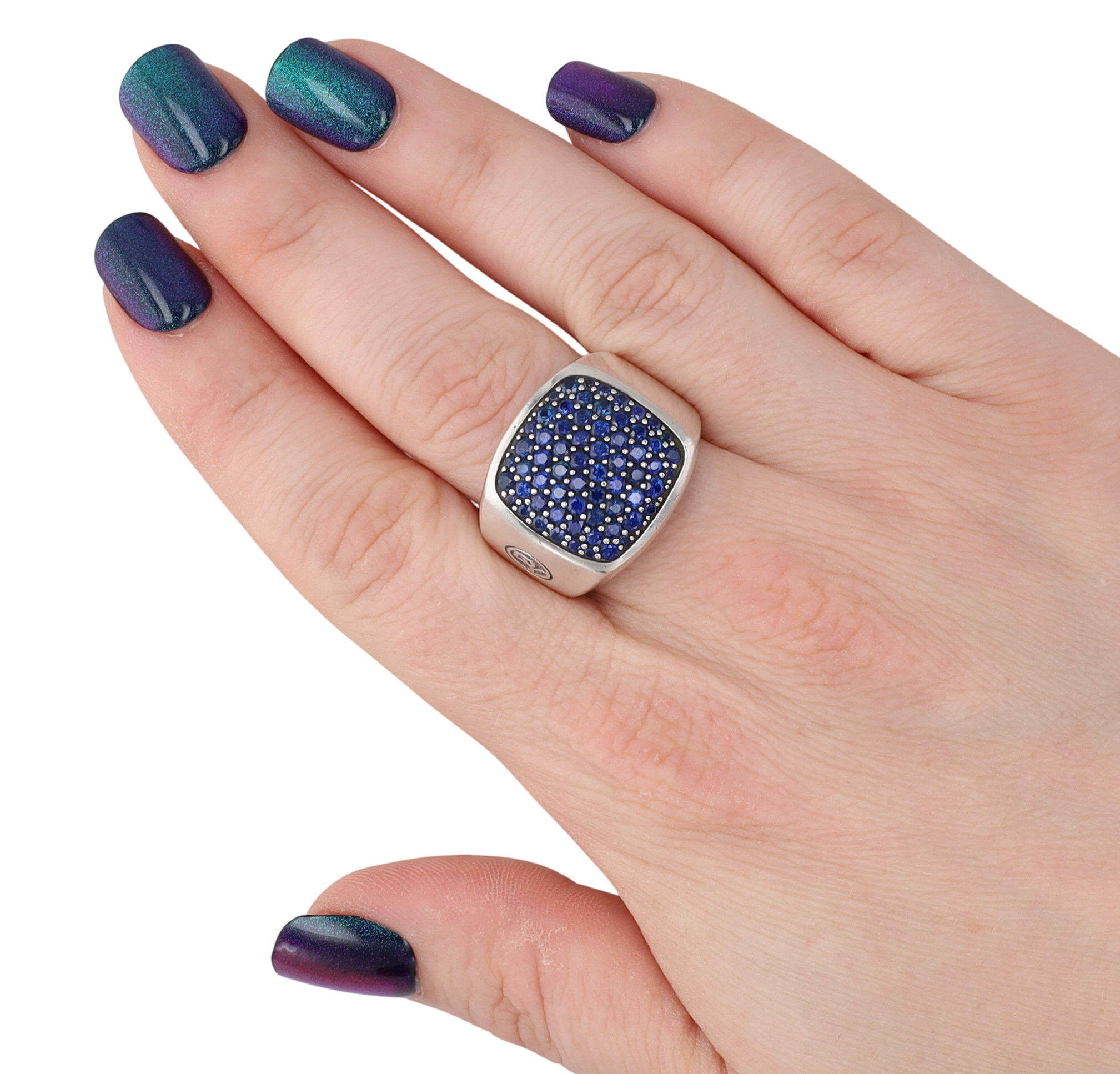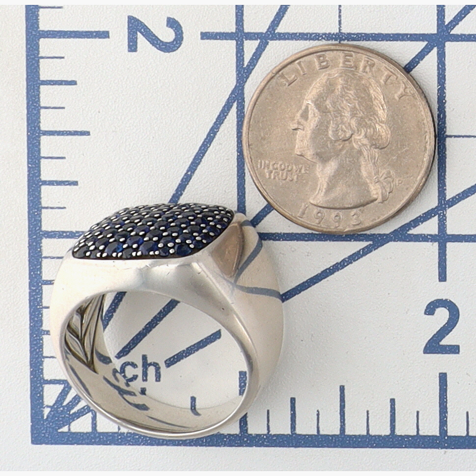 Phenomenal David Yurman Sterling Blue Sapphire ‘Streamline Collection’ Signet Ring Sz 12 | 19mm | 19.5g | Retail: $1975 | Note: Some surface abrasions and wear present on ring consistent with wear/use.
