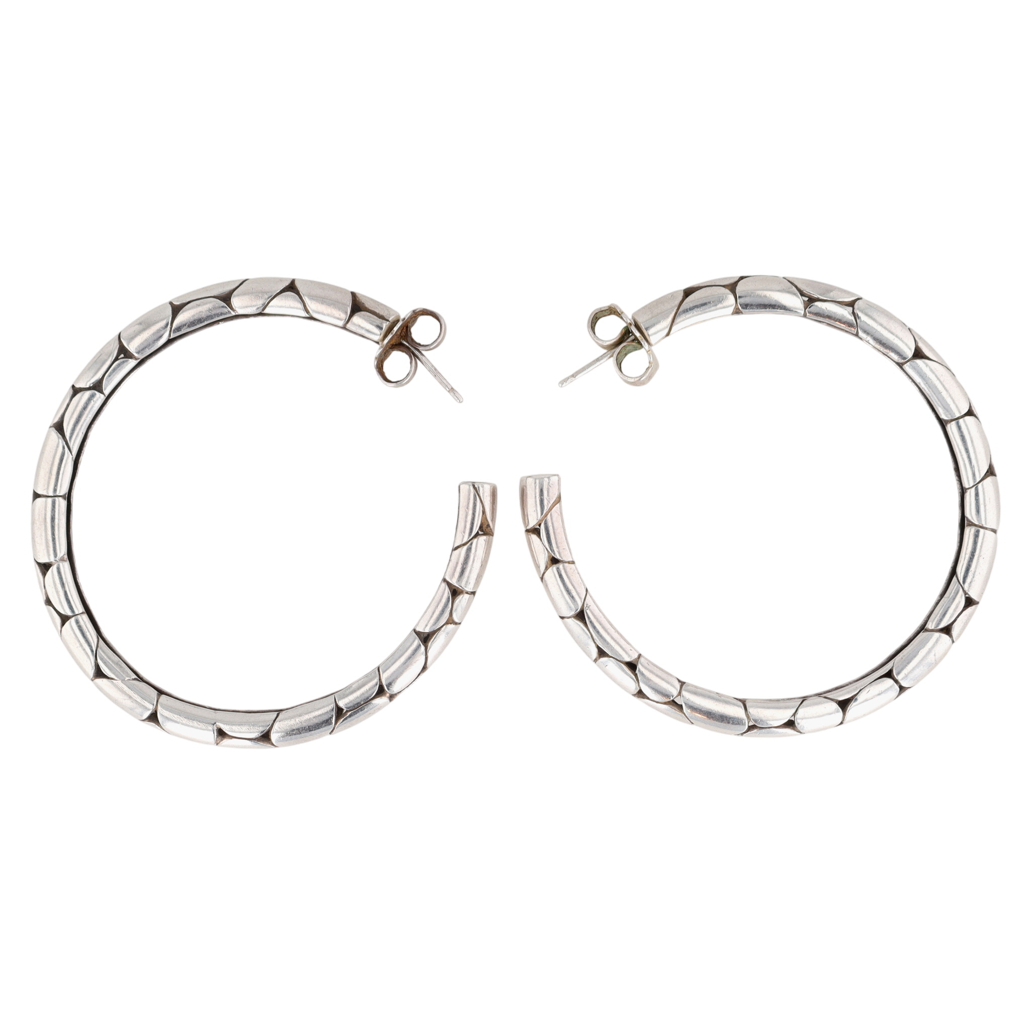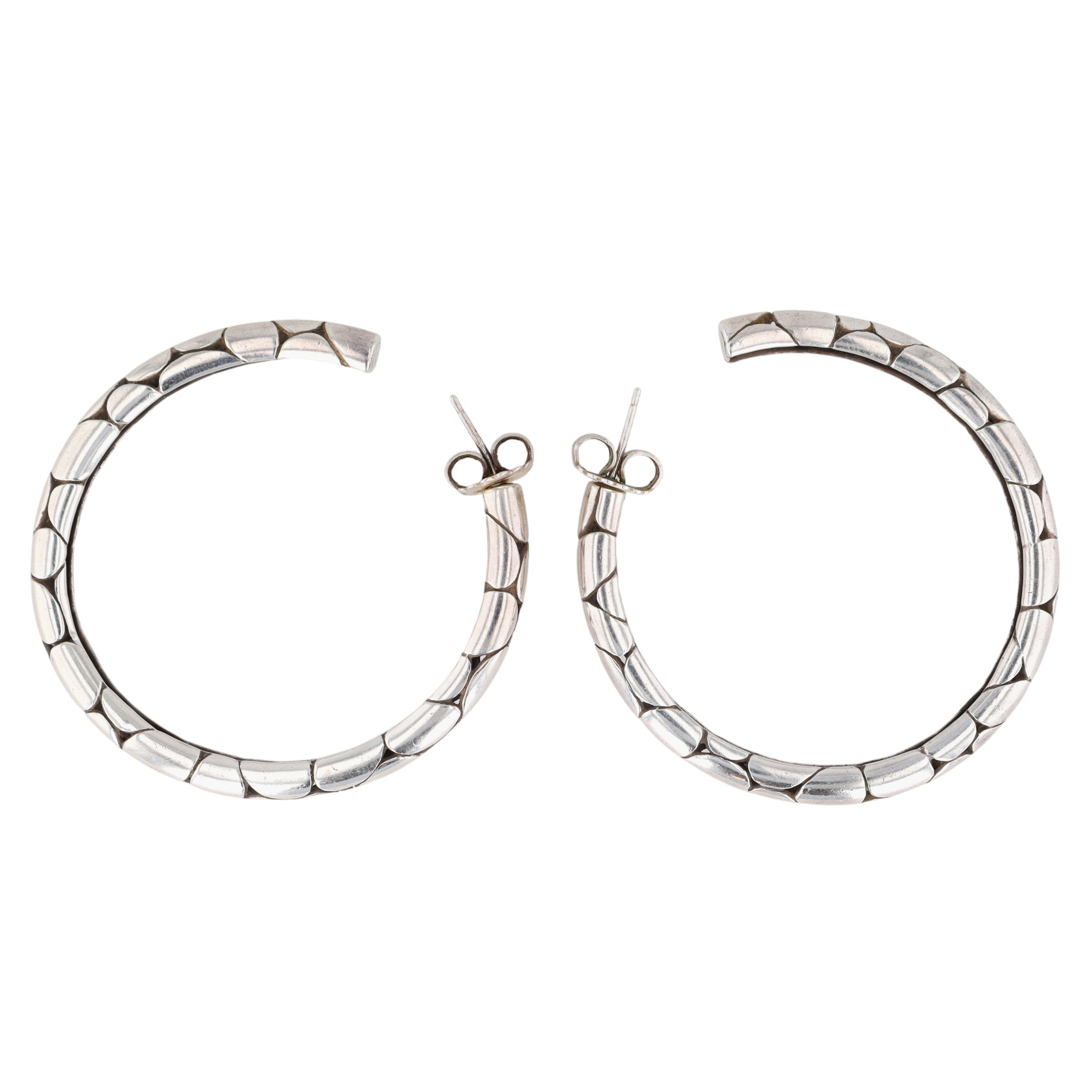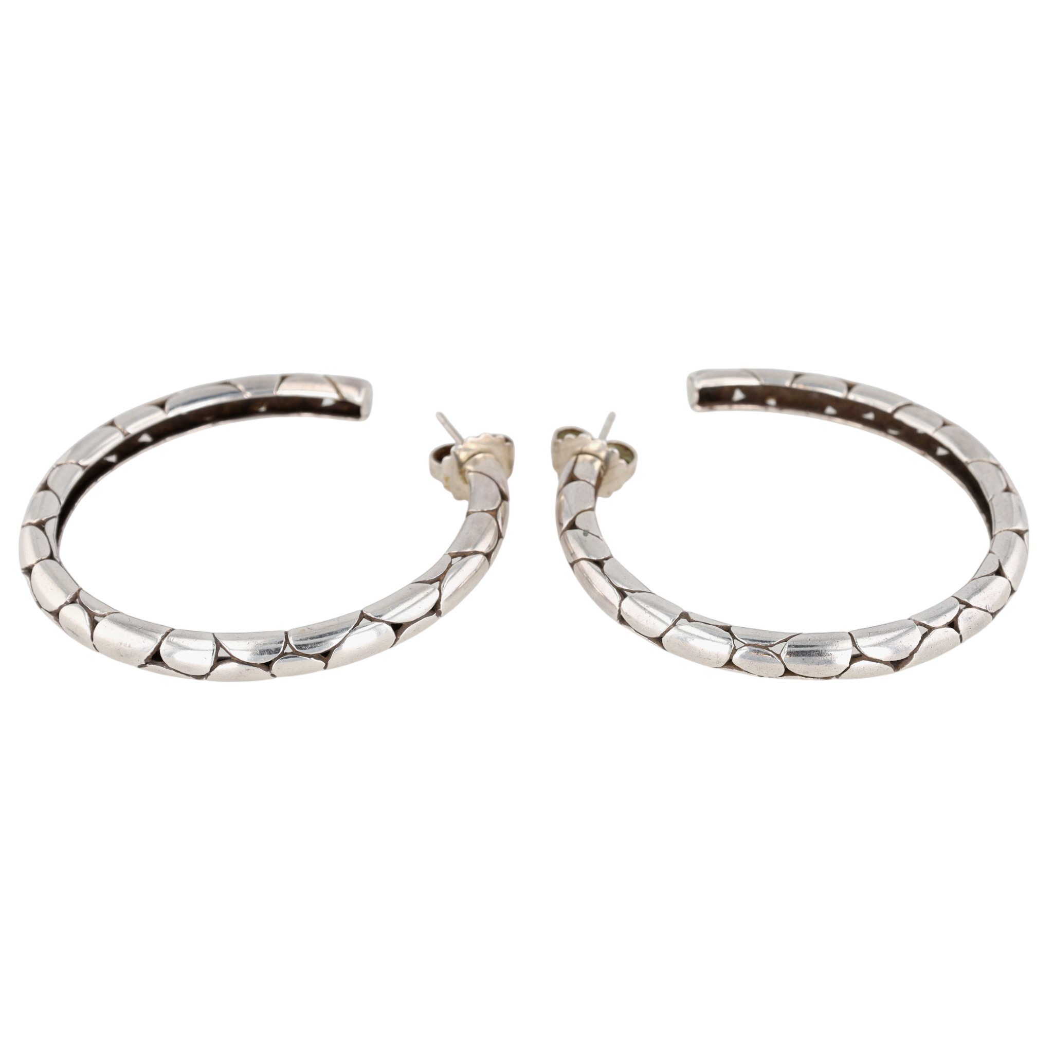 Stunning! John Hardy Sterling Kali Pebble Large Hoop Earrings, 5mm | 23g